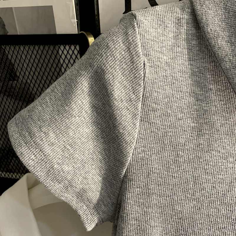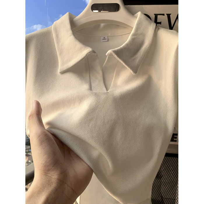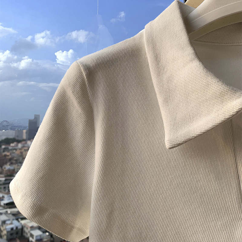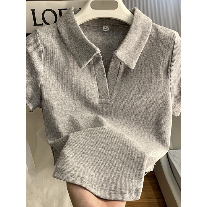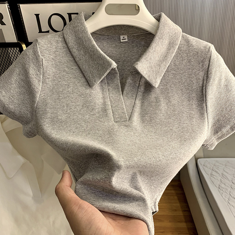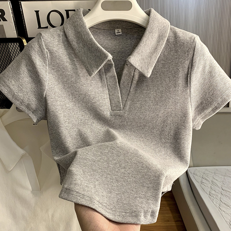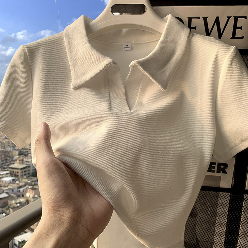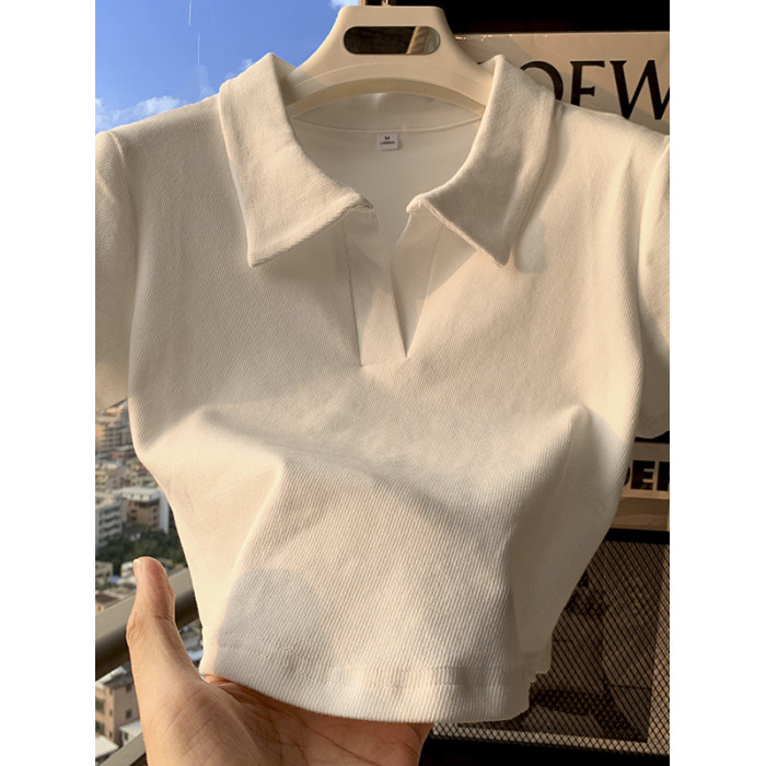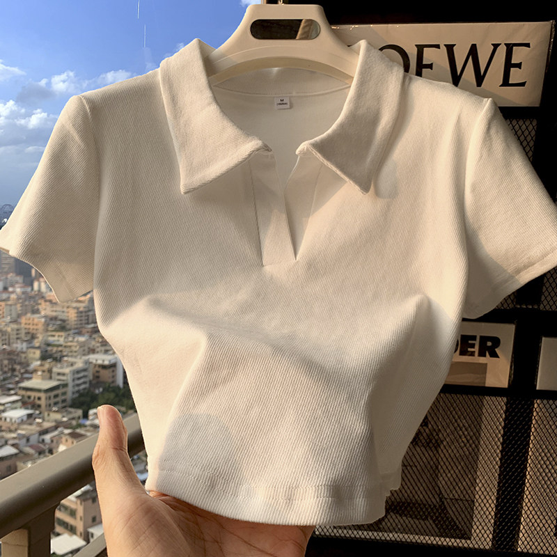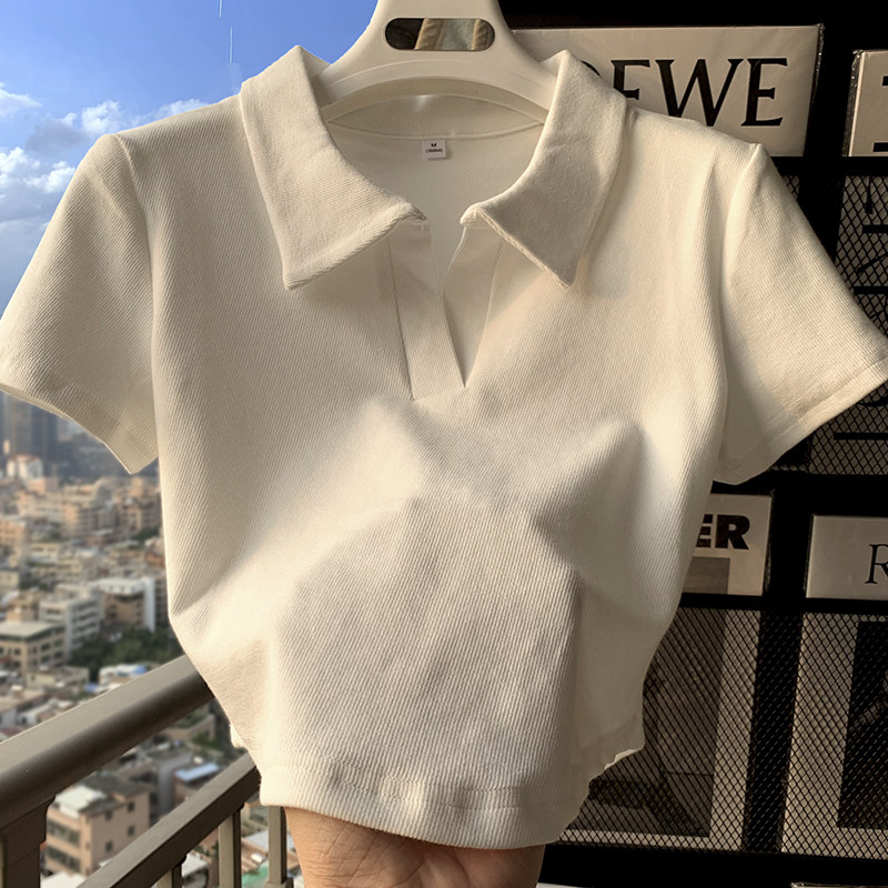 polo領顯瘦短款收腰ins潮設計感下擺弧形白色短袖T恤打底衫上衣