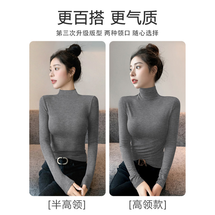 半高領打底衫女2025新款秋冬內搭加絨高級感修身薄款針織黑色上衣