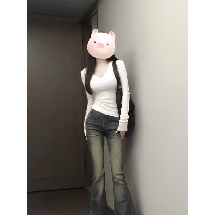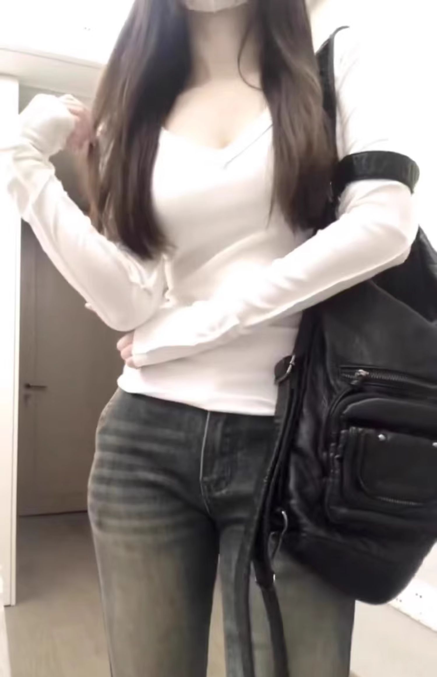 設計感小衆正肩V領長袖T恤女春秋內搭短款打底衫辣妹修身顯瘦上衣
