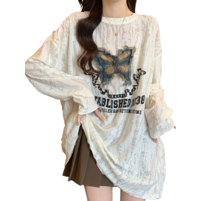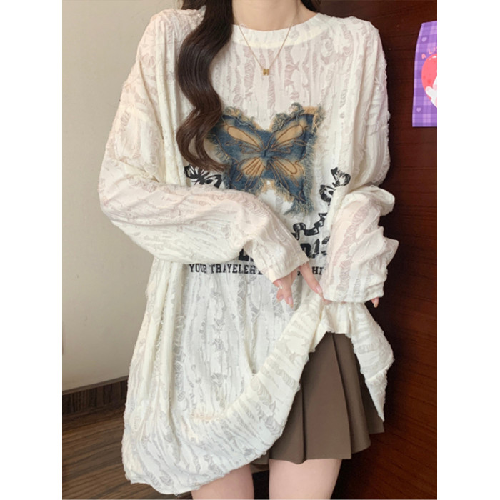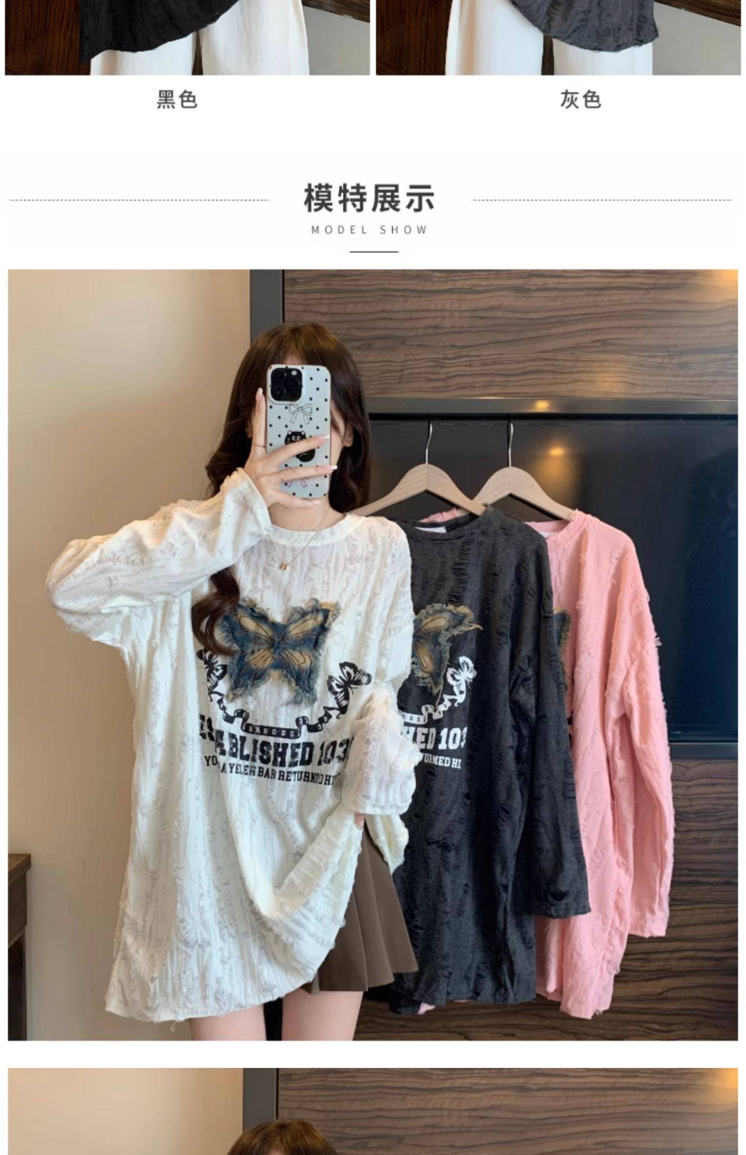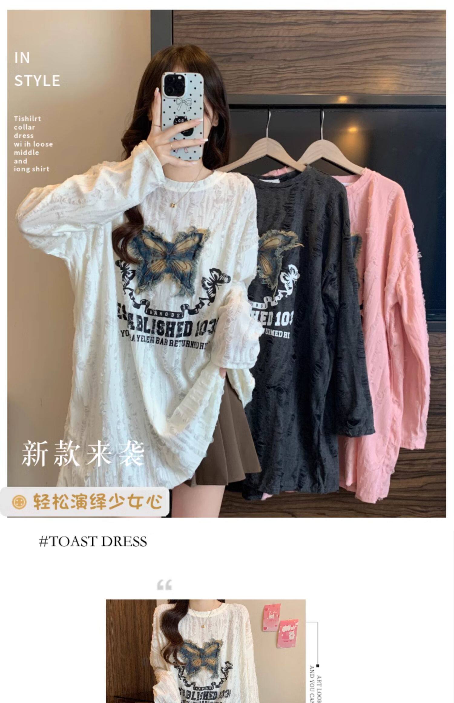 大碼中長款長袖薄款t恤女早秋穿搭胖mm獨特遮屁股搭配鯊魚褲上衣