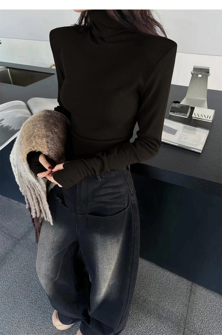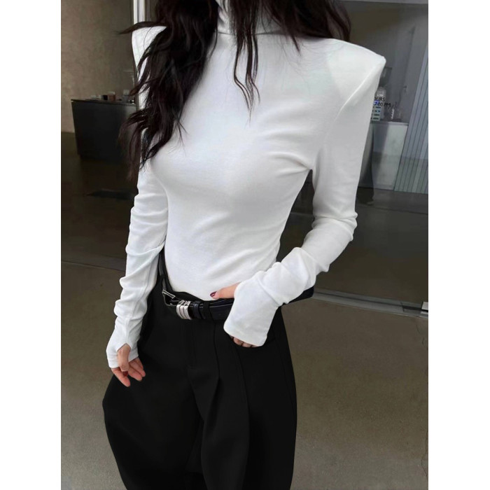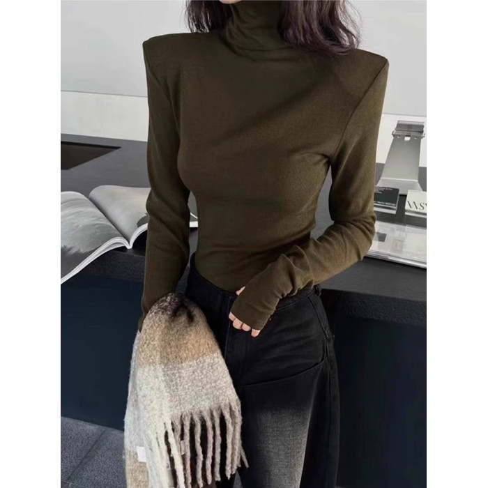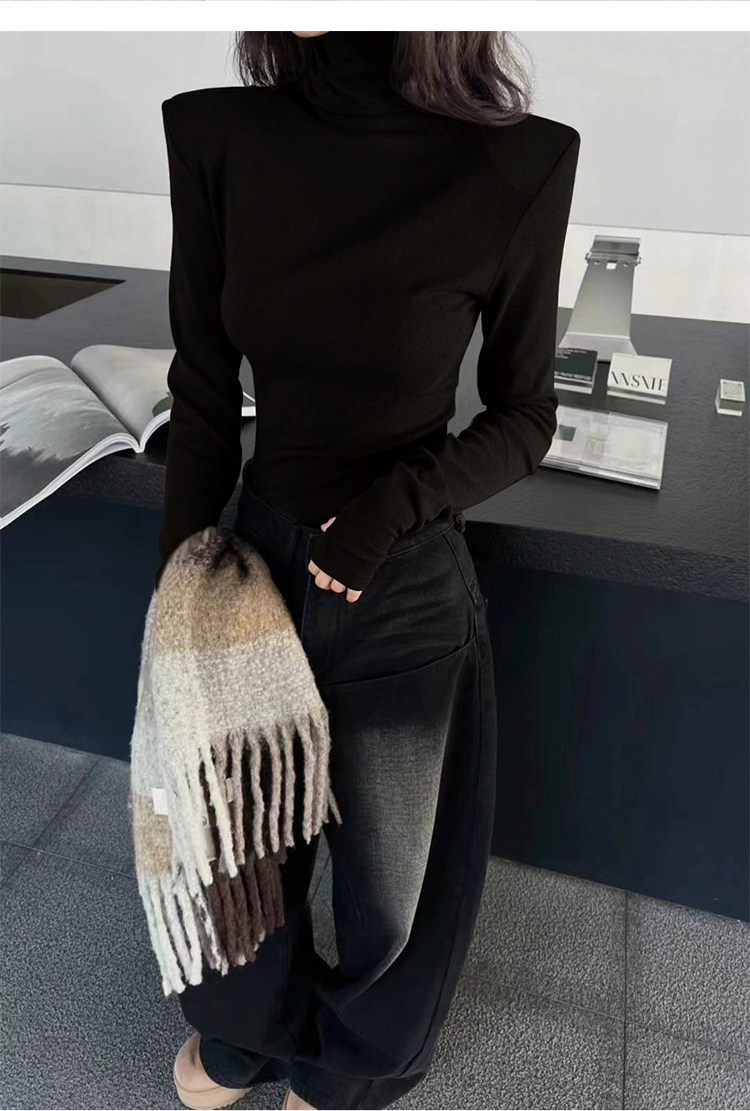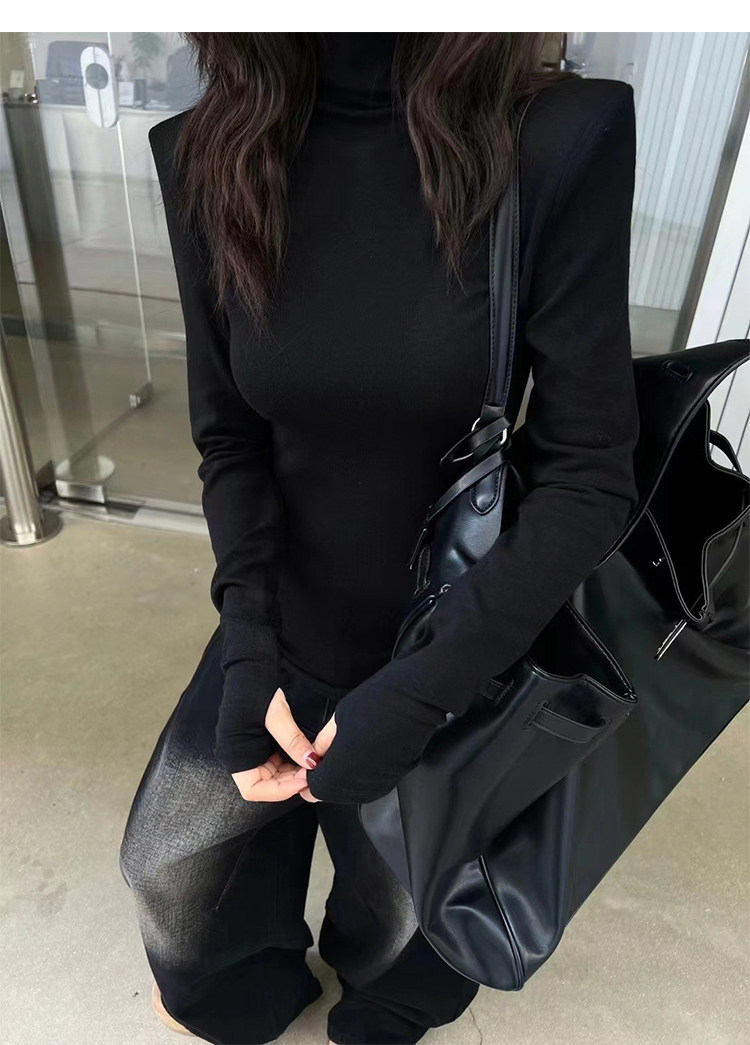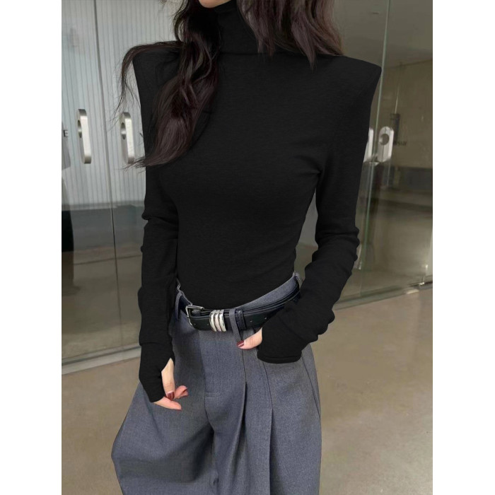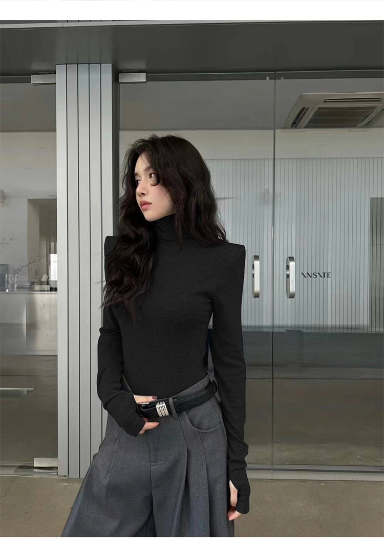 黑色高領打底衫女春秋新款長袖t恤女內搭修身顯瘦高級感墊肩上衣