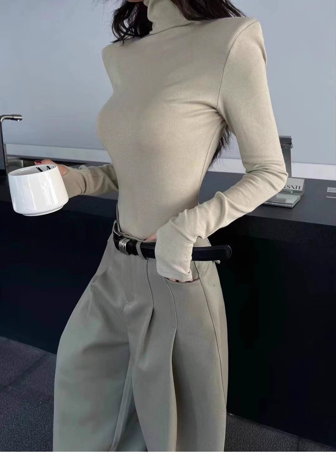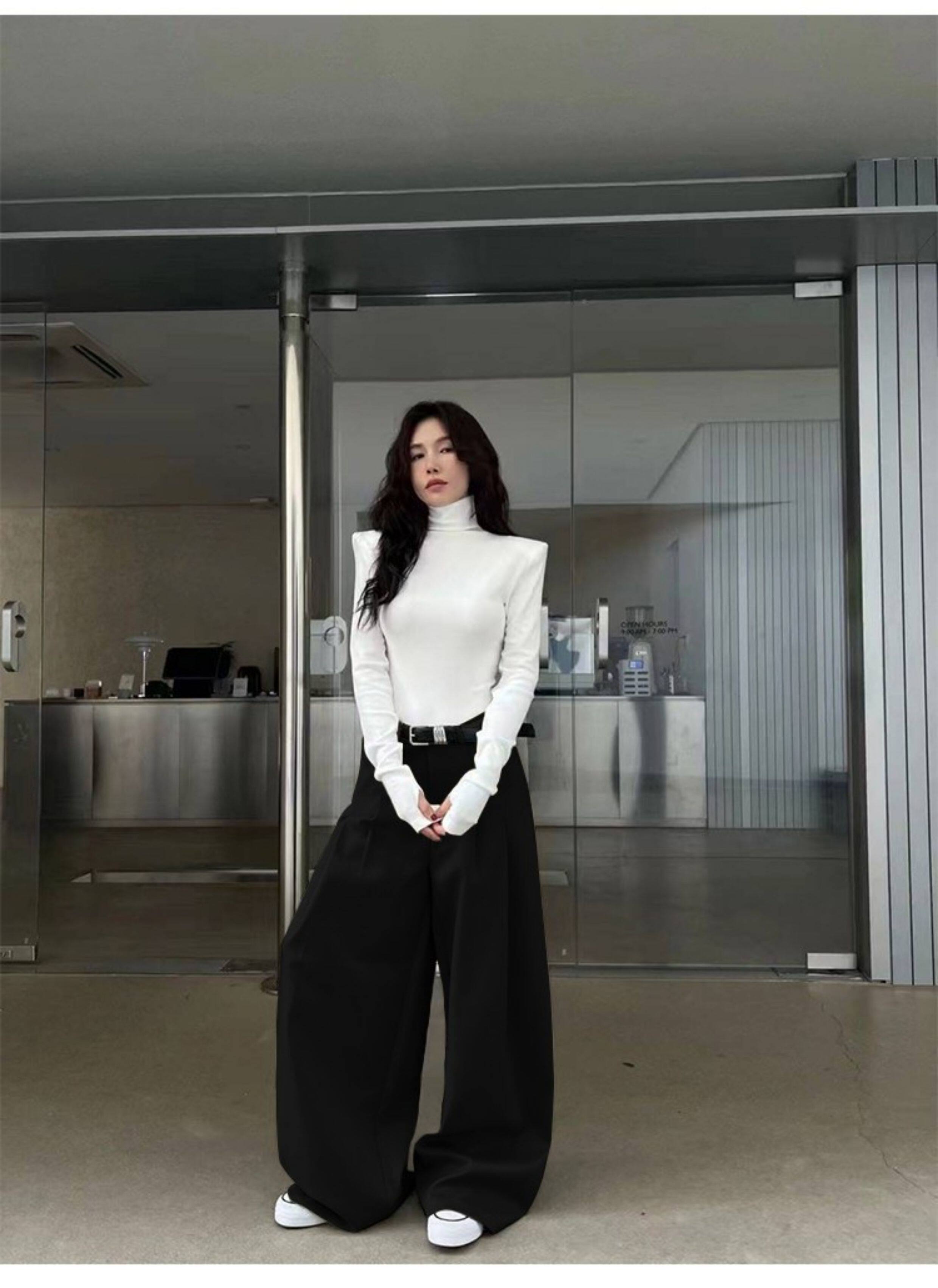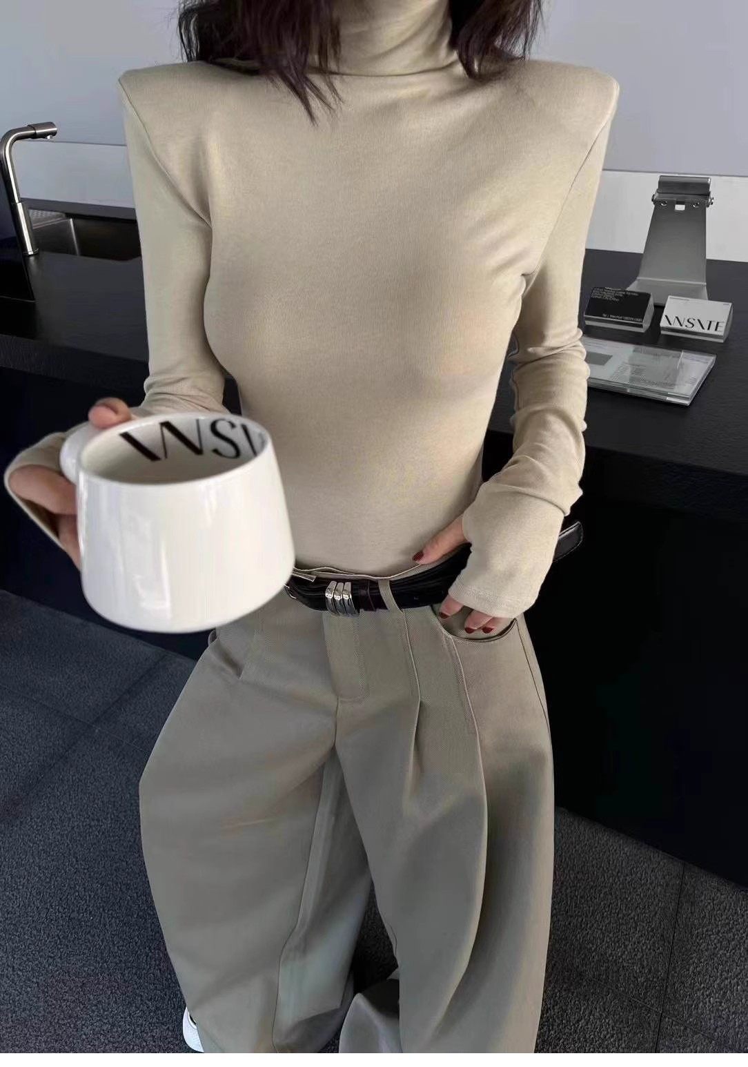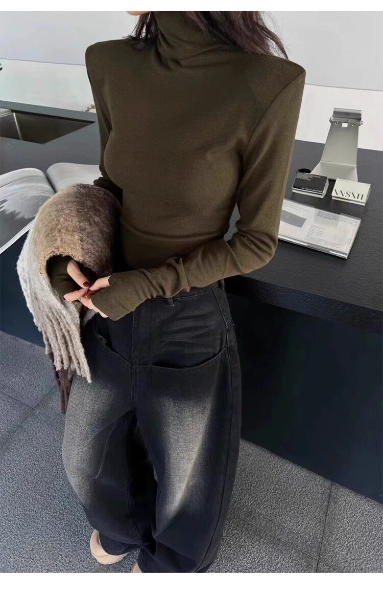 黑色高領打底衫女春秋新款長袖t恤女內搭修身顯瘦高級感墊肩上衣