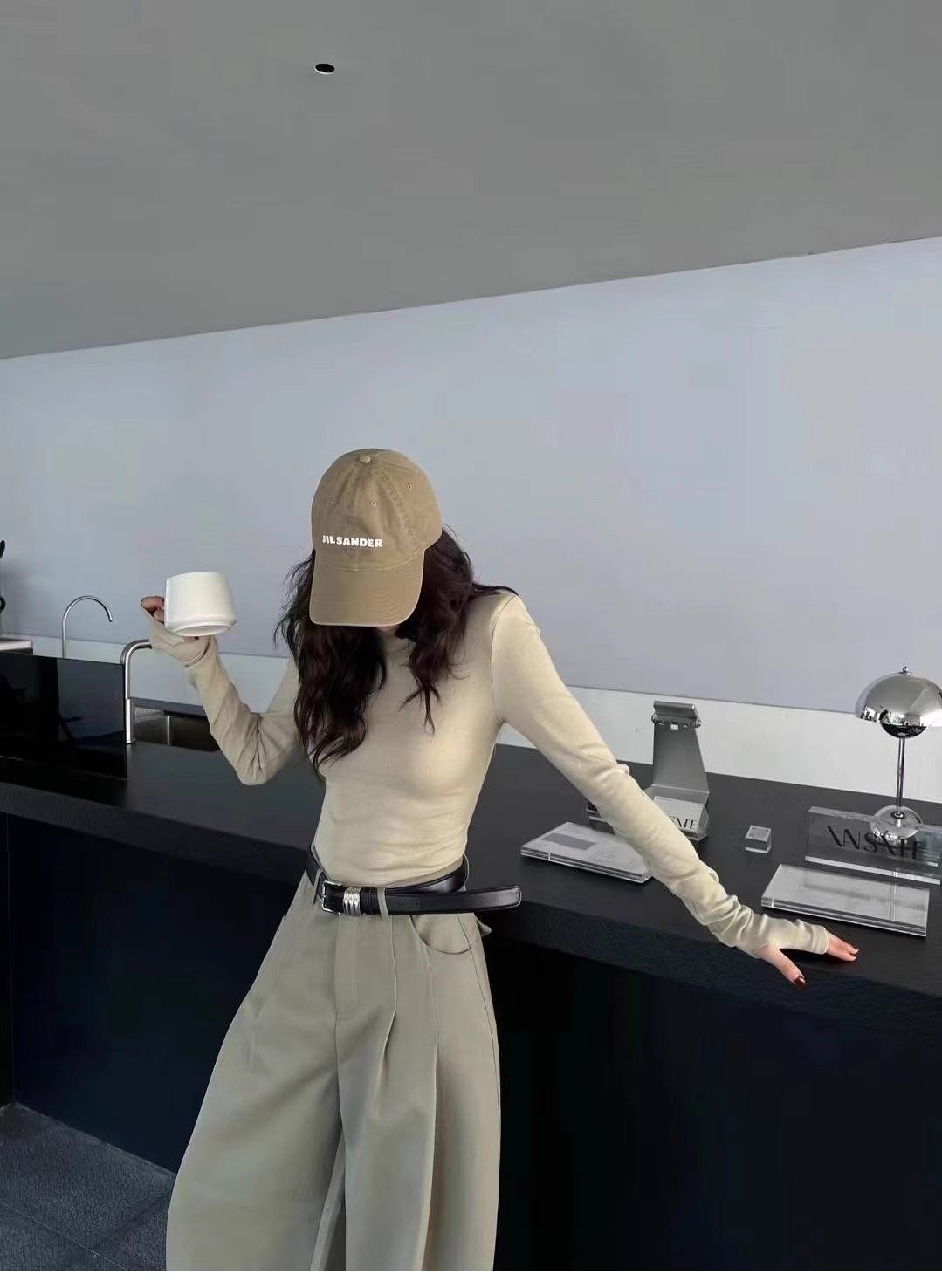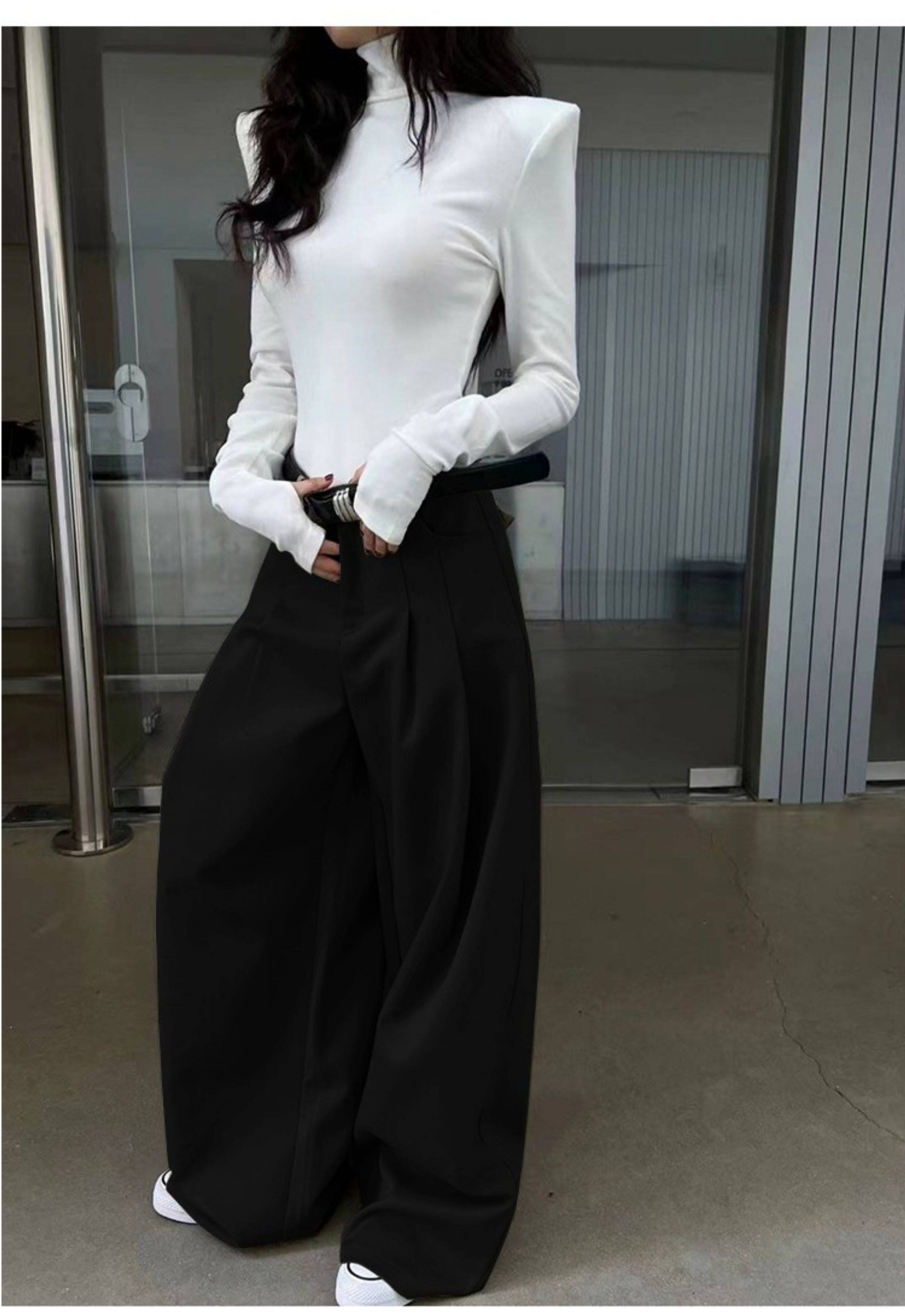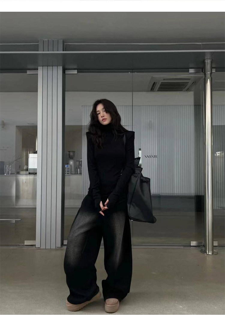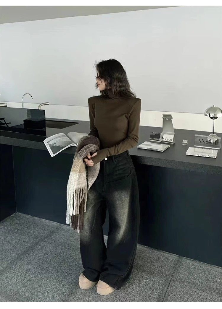 黑色高領打底衫女春秋新款長袖t恤女內搭修身顯瘦高級感墊肩上衣