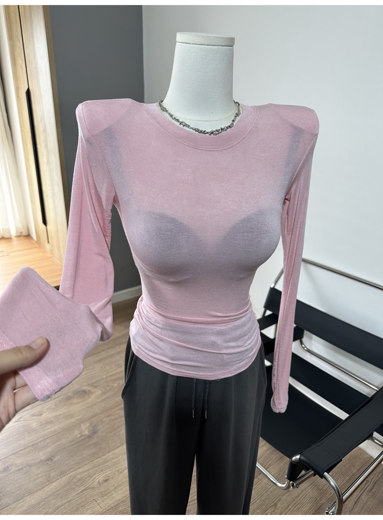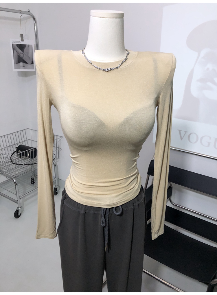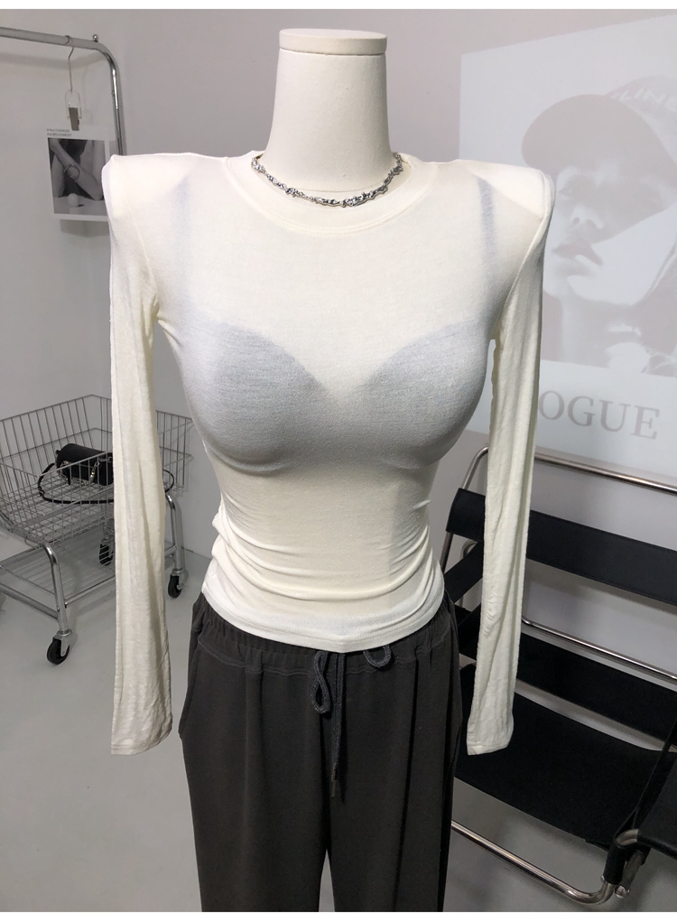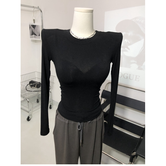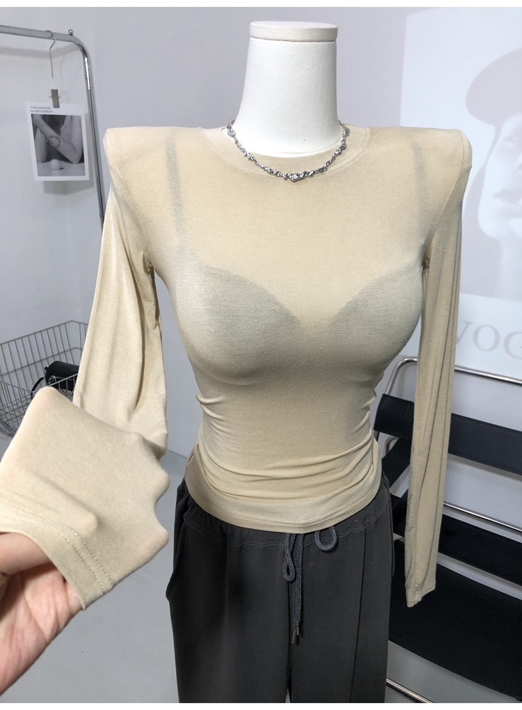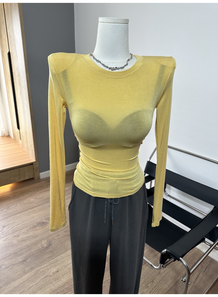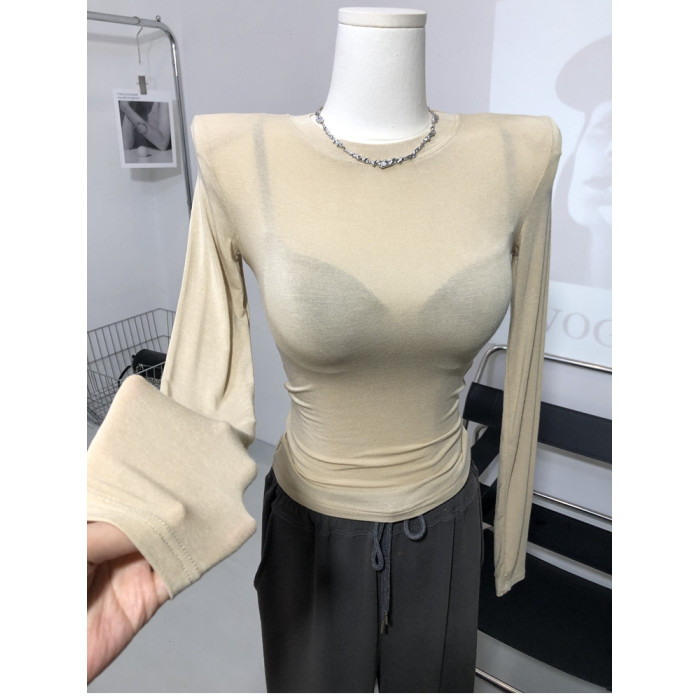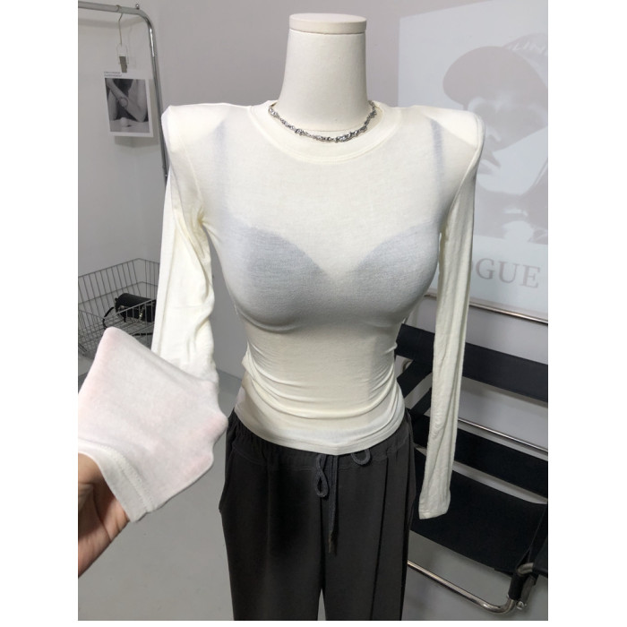 滿滿的氛圍感~ 墊肩輕薄微透長袖內搭T恤修身打底衫上衣春夏新