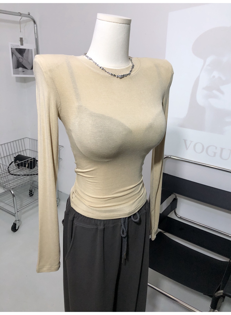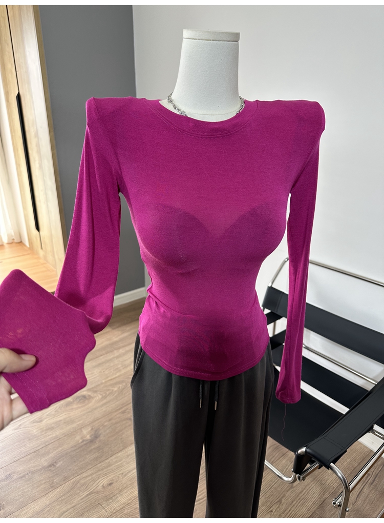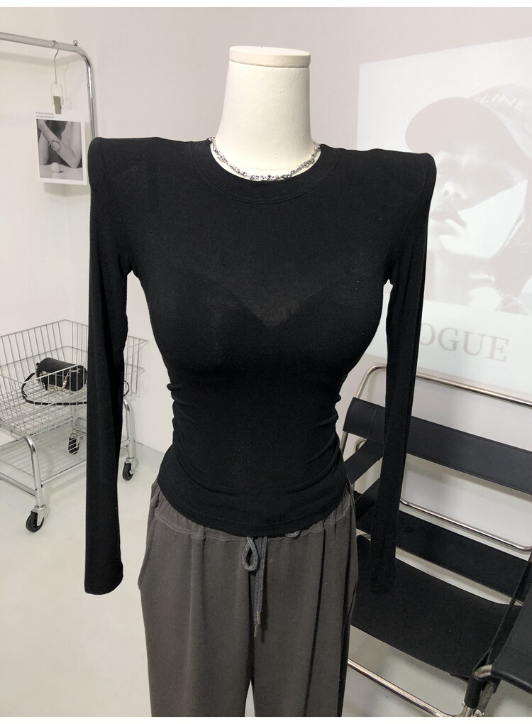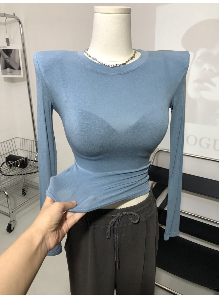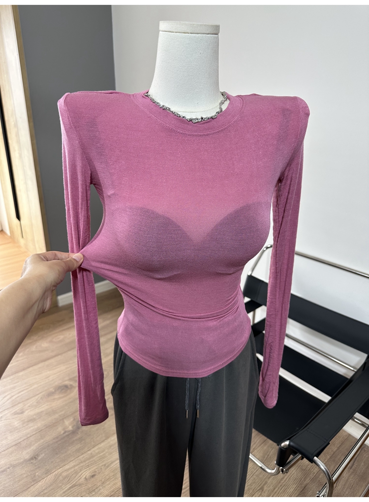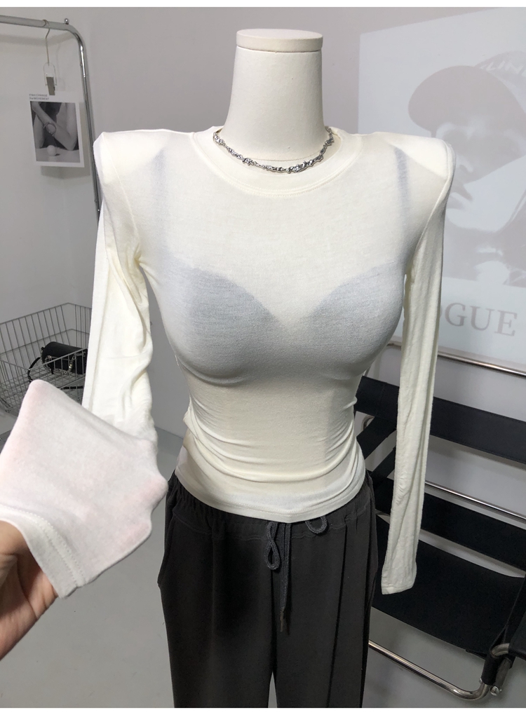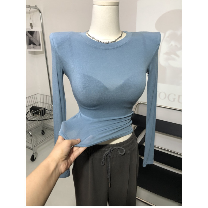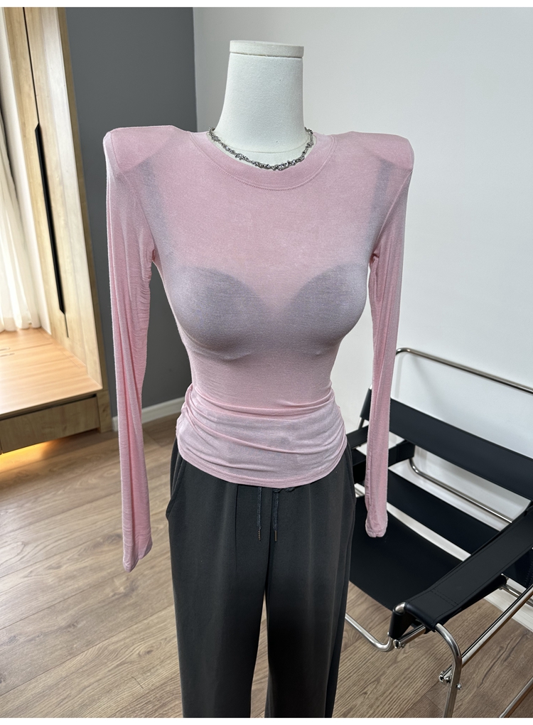 滿滿的氛圍感~ 墊肩輕薄微透長袖內搭T恤修身打底衫上衣春夏新