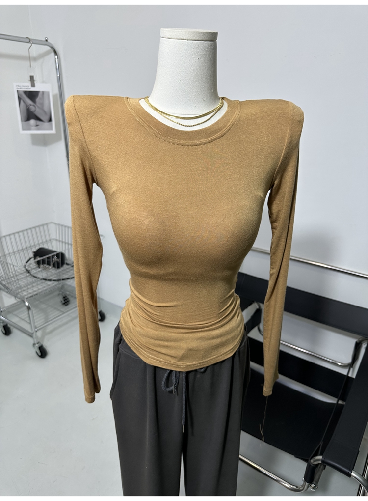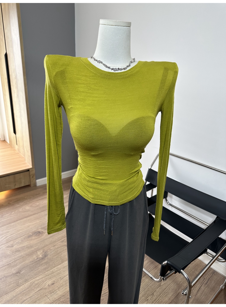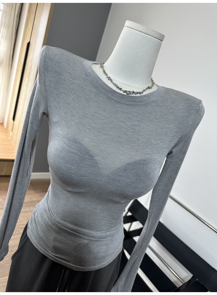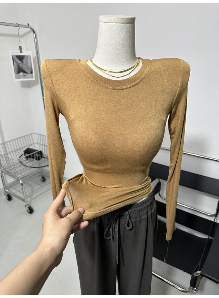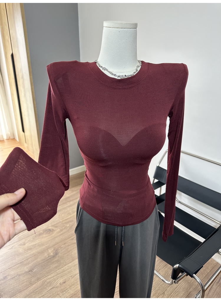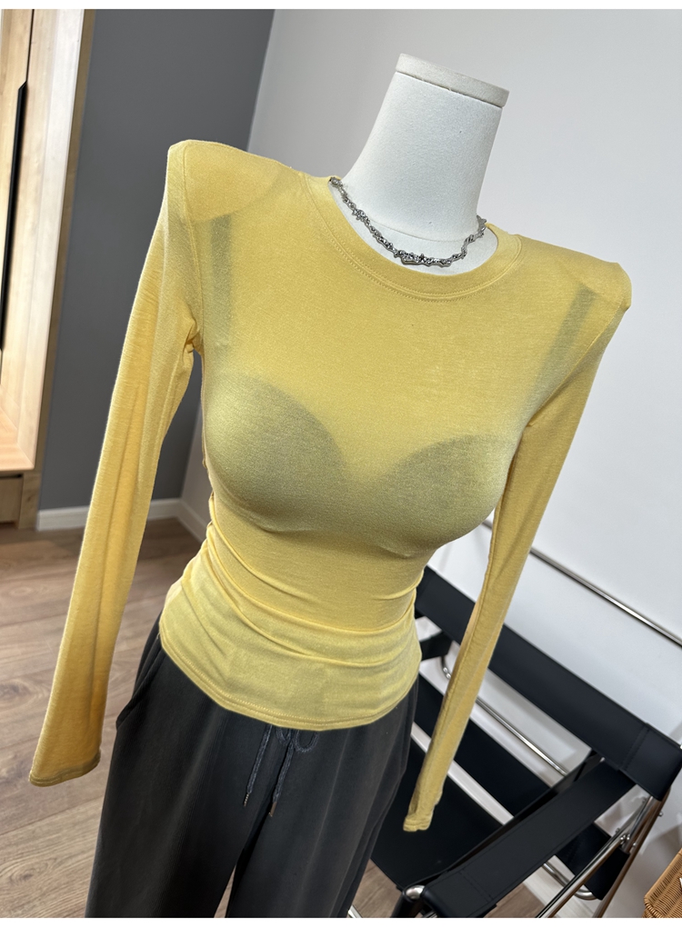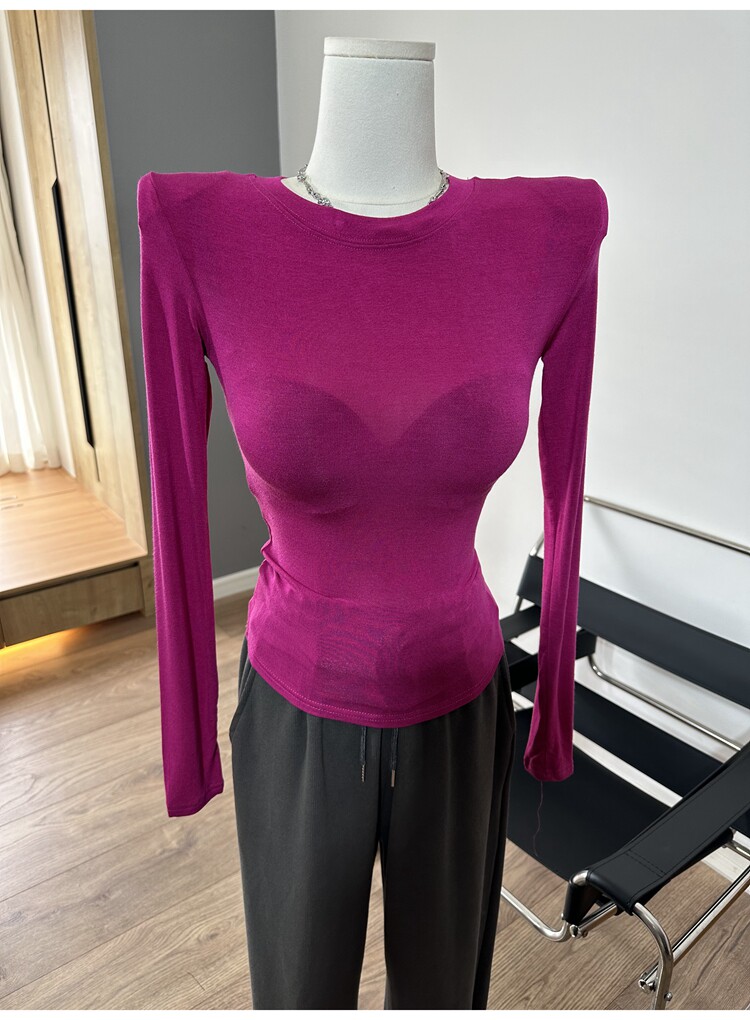 滿滿的氛圍感~ 墊肩輕薄微透長袖內搭T恤修身打底衫上衣春夏新