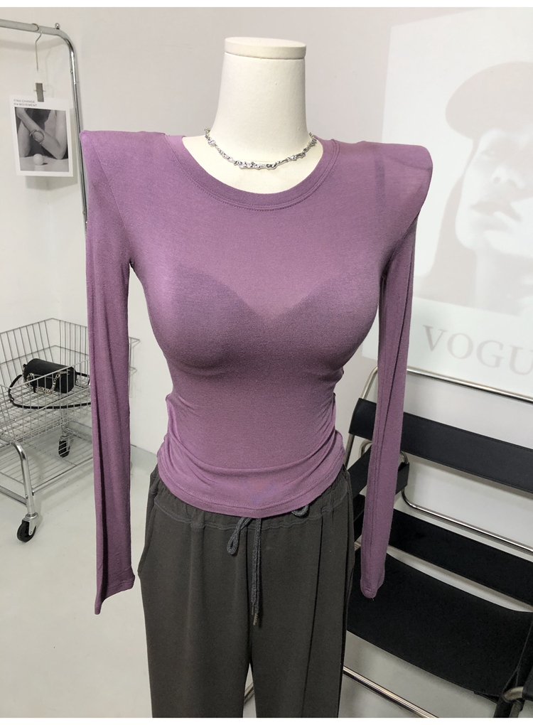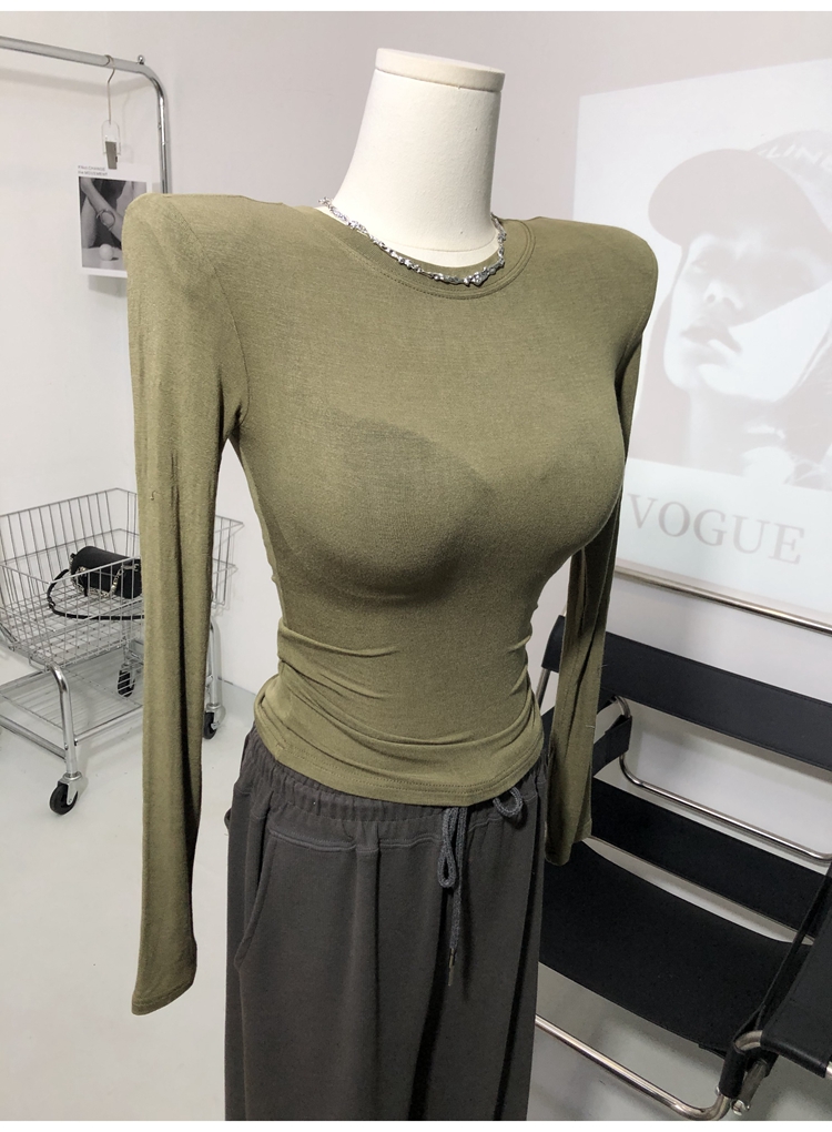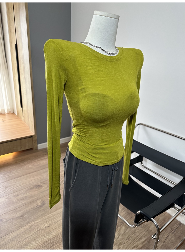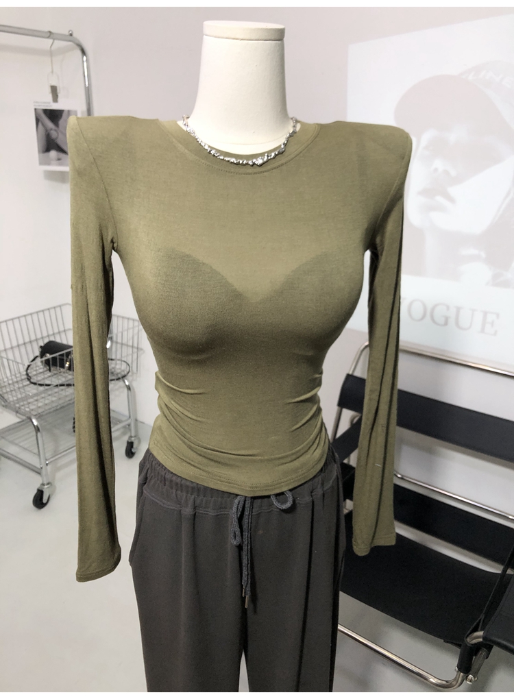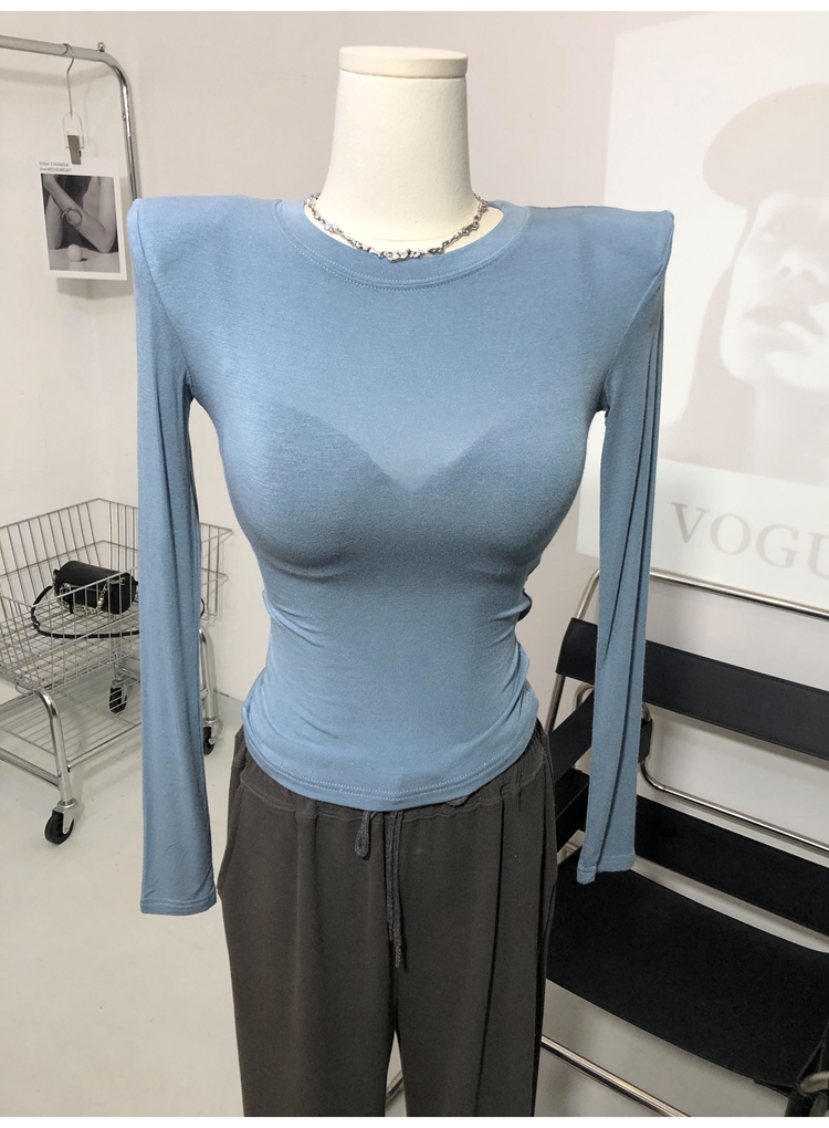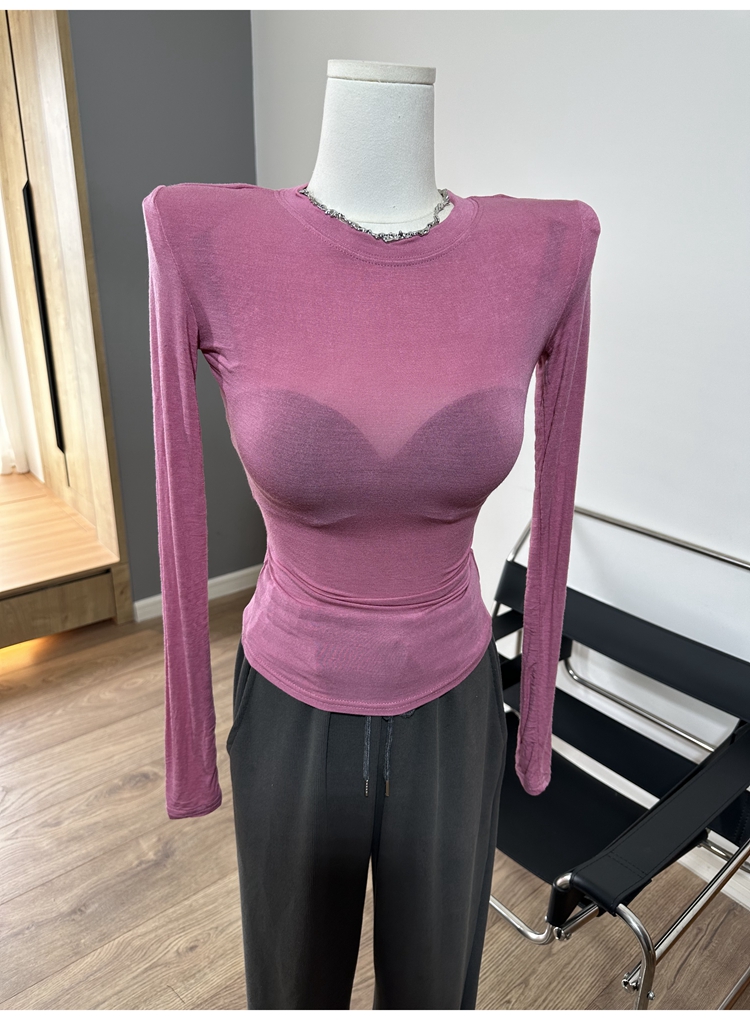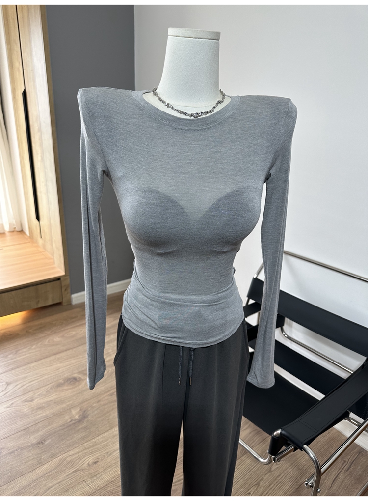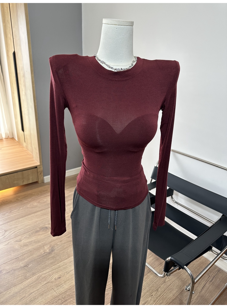 滿滿的氛圍感~ 墊肩輕薄微透長袖內搭T恤修身打底衫上衣春夏新
