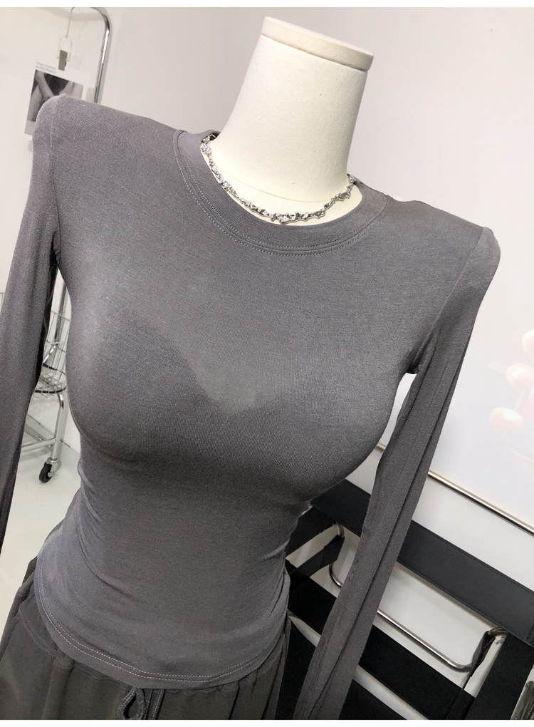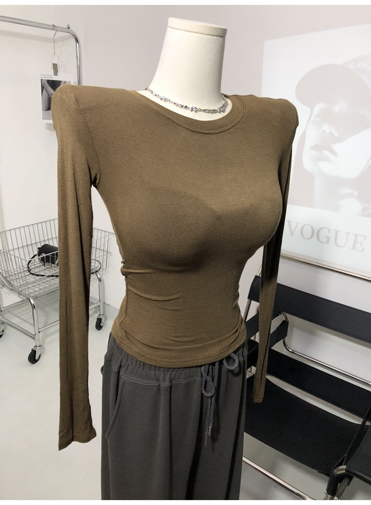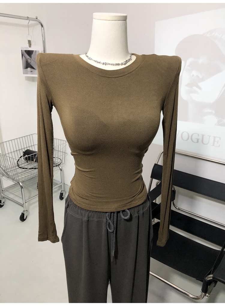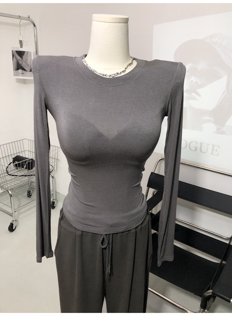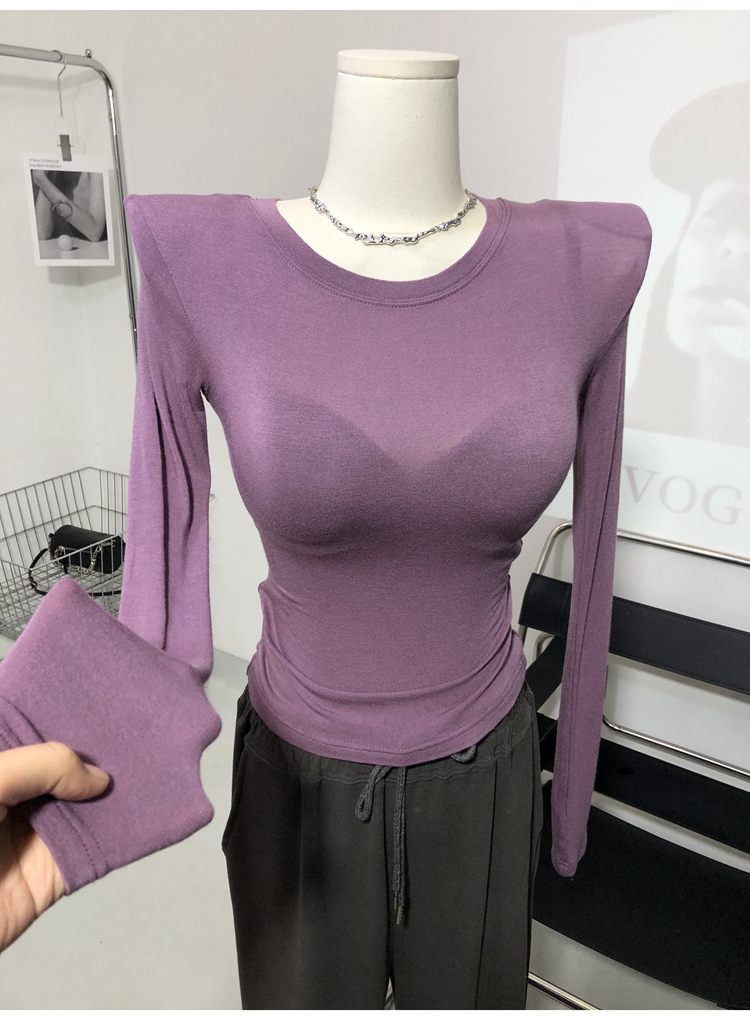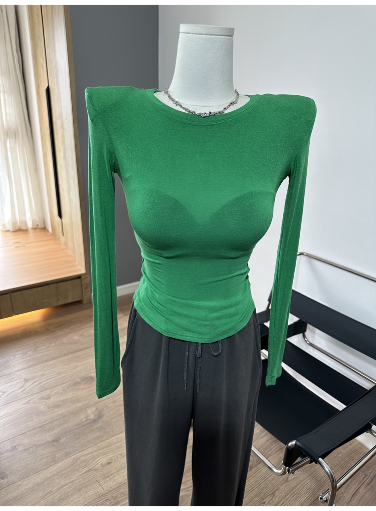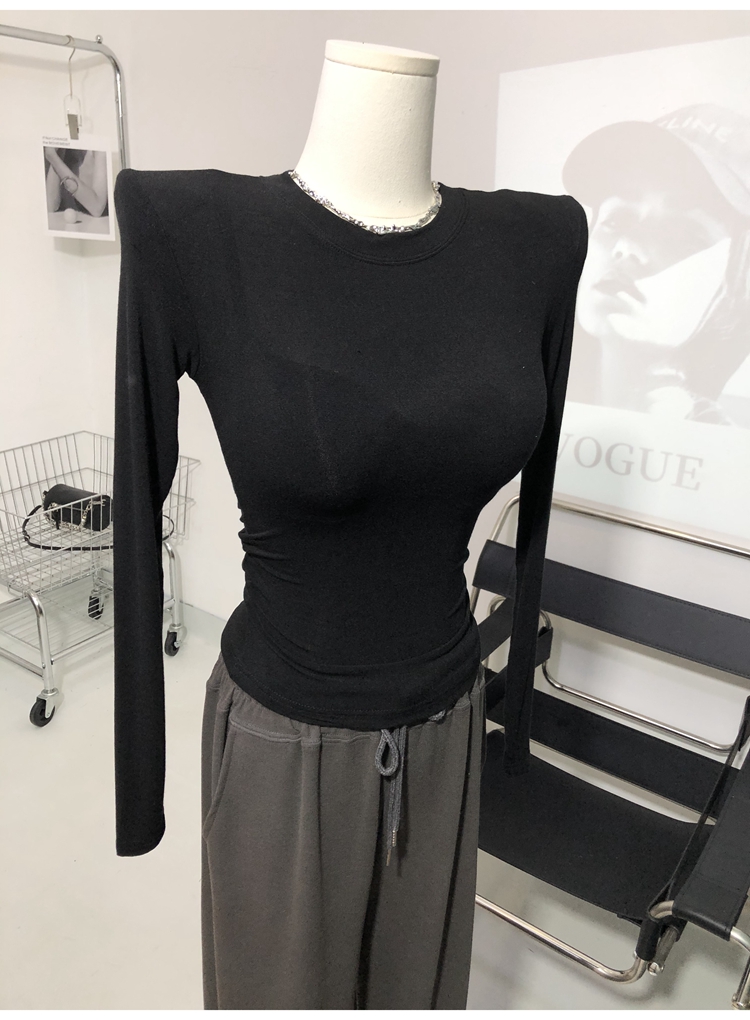 滿滿的氛圍感~ 墊肩輕薄微透長袖內搭T恤修身打底衫上衣春夏新