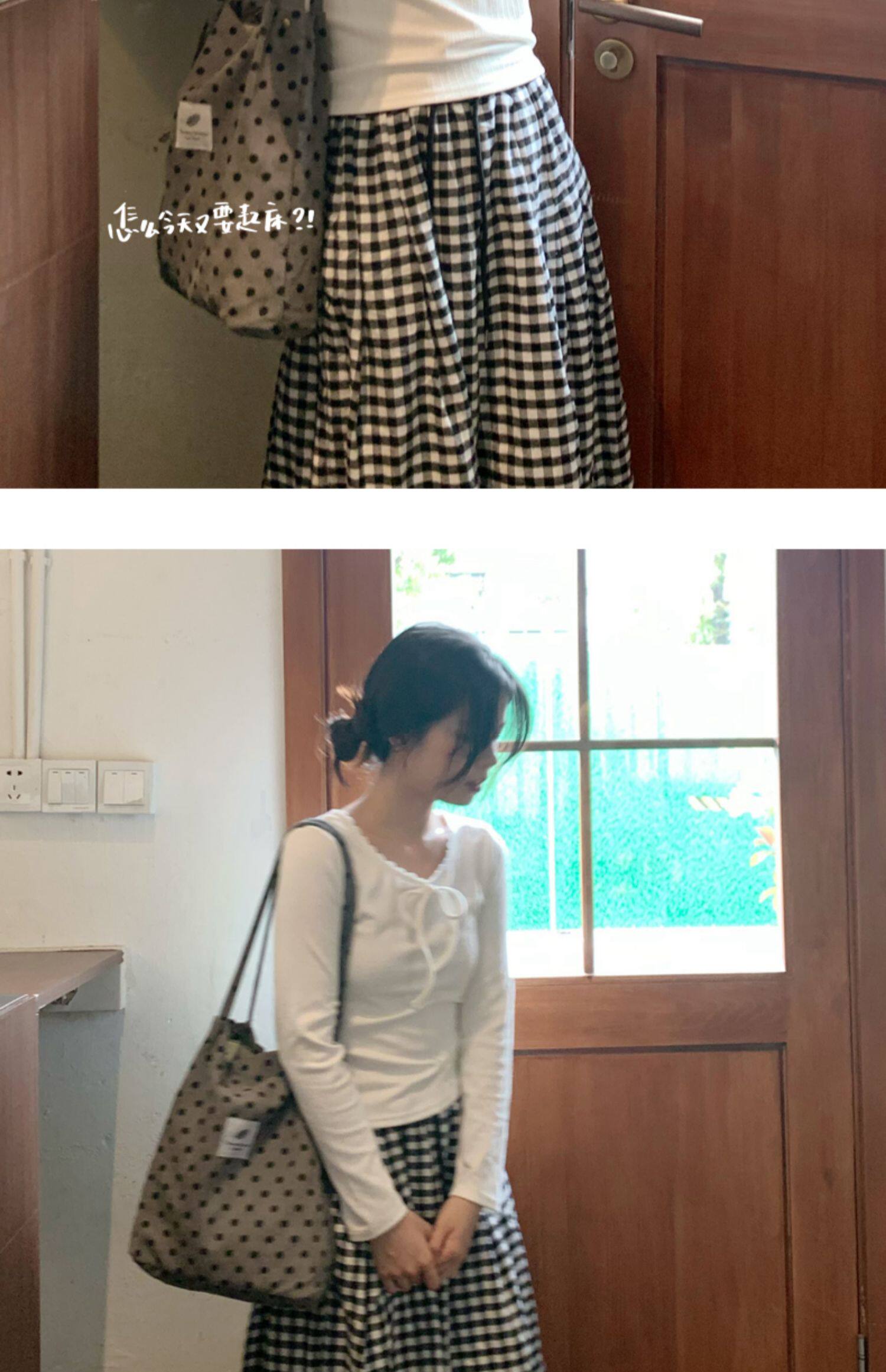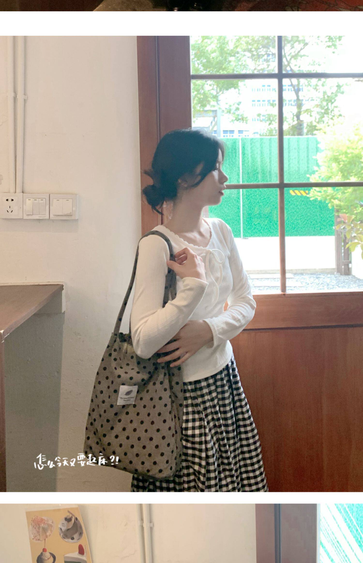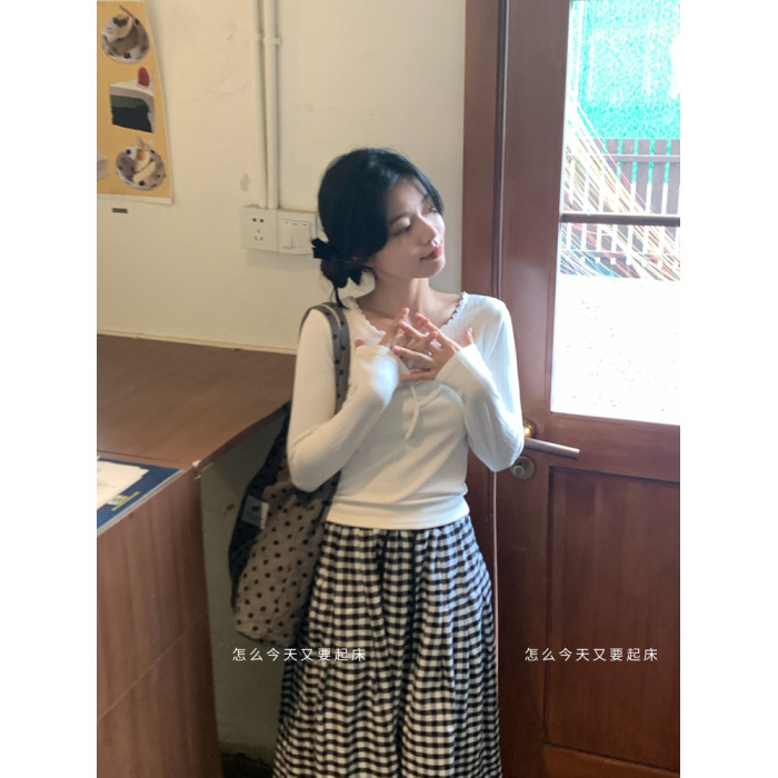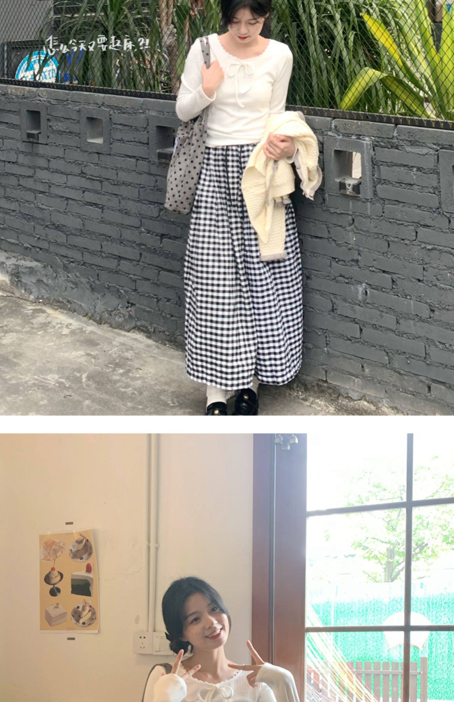 ringring奶油芙白 蝴蝶結修身打底軟糯內搭貝殼邊長袖T恤百搭上衣