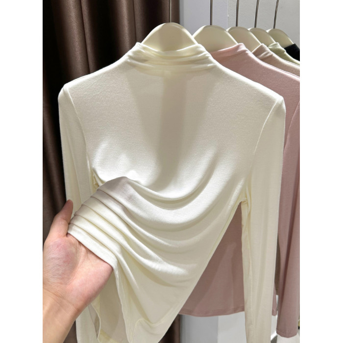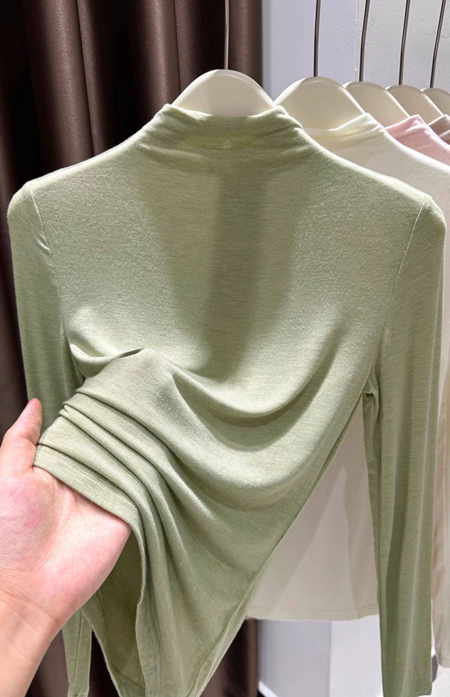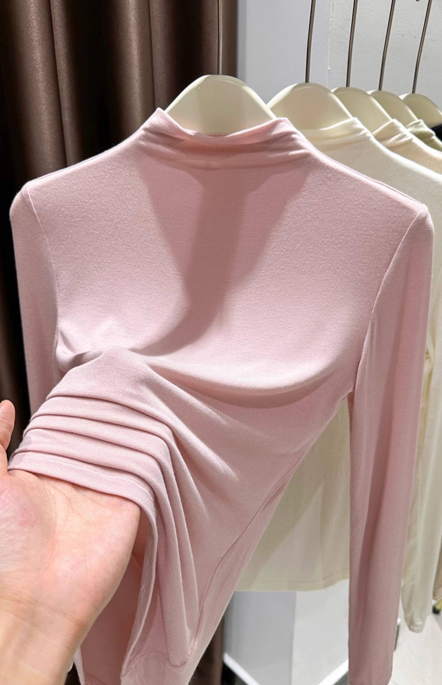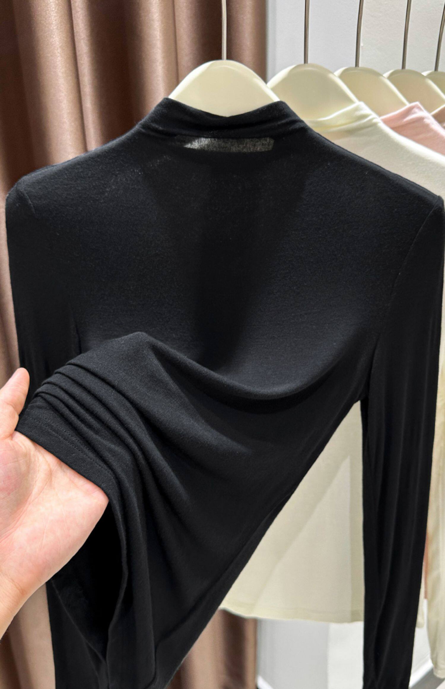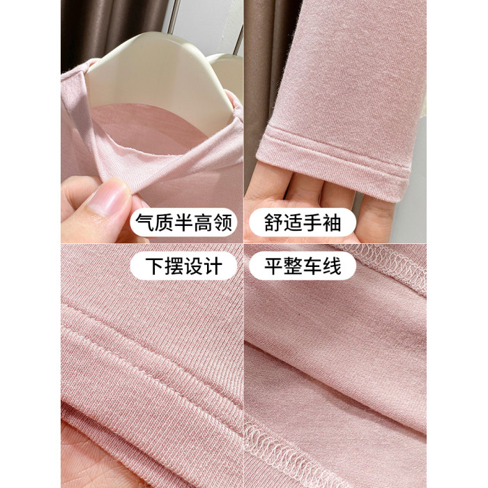 杏色莫代爾半高領打底衫女秋冬季內搭基礎款超彈軟糯長袖t恤薄款