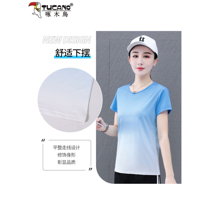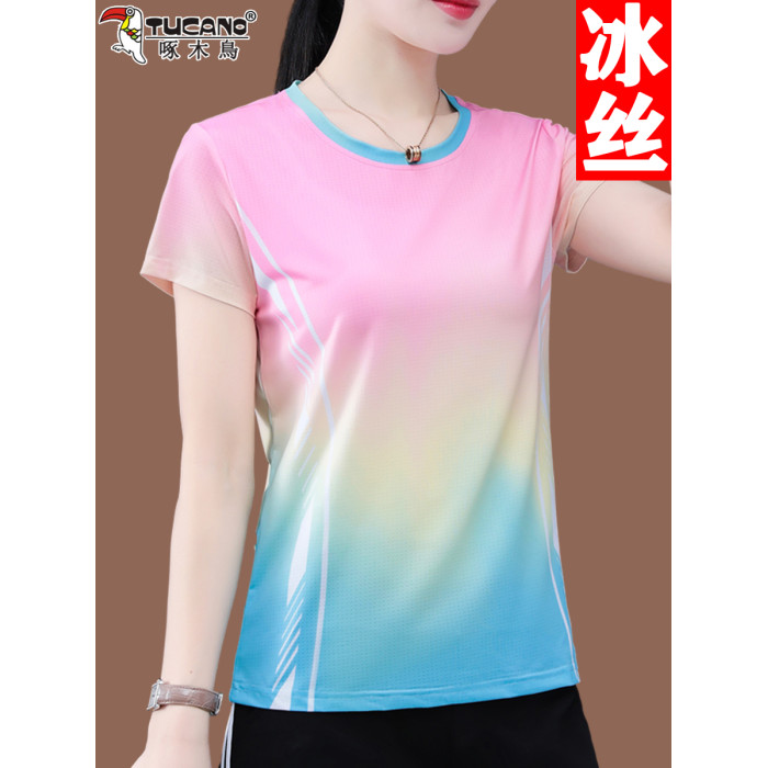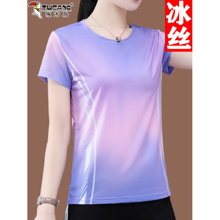 啄木鳥冰絲速乾衣短袖t恤女夏季薄款2025新款休閒跑步運動服上衣T