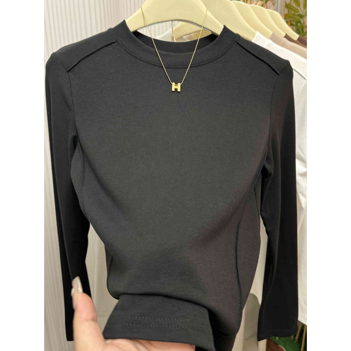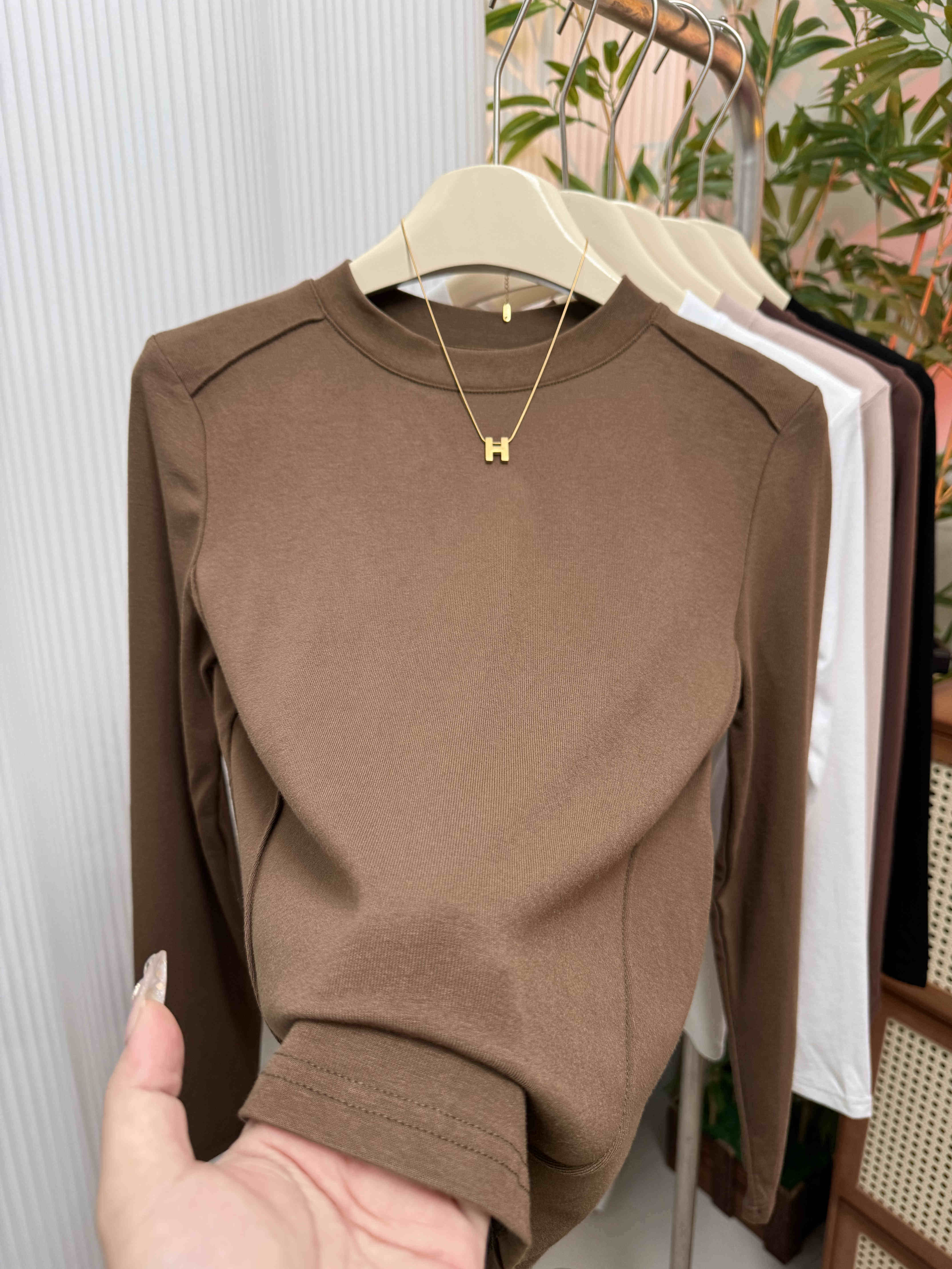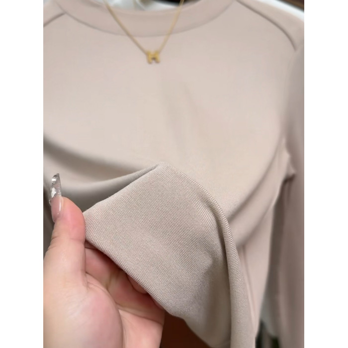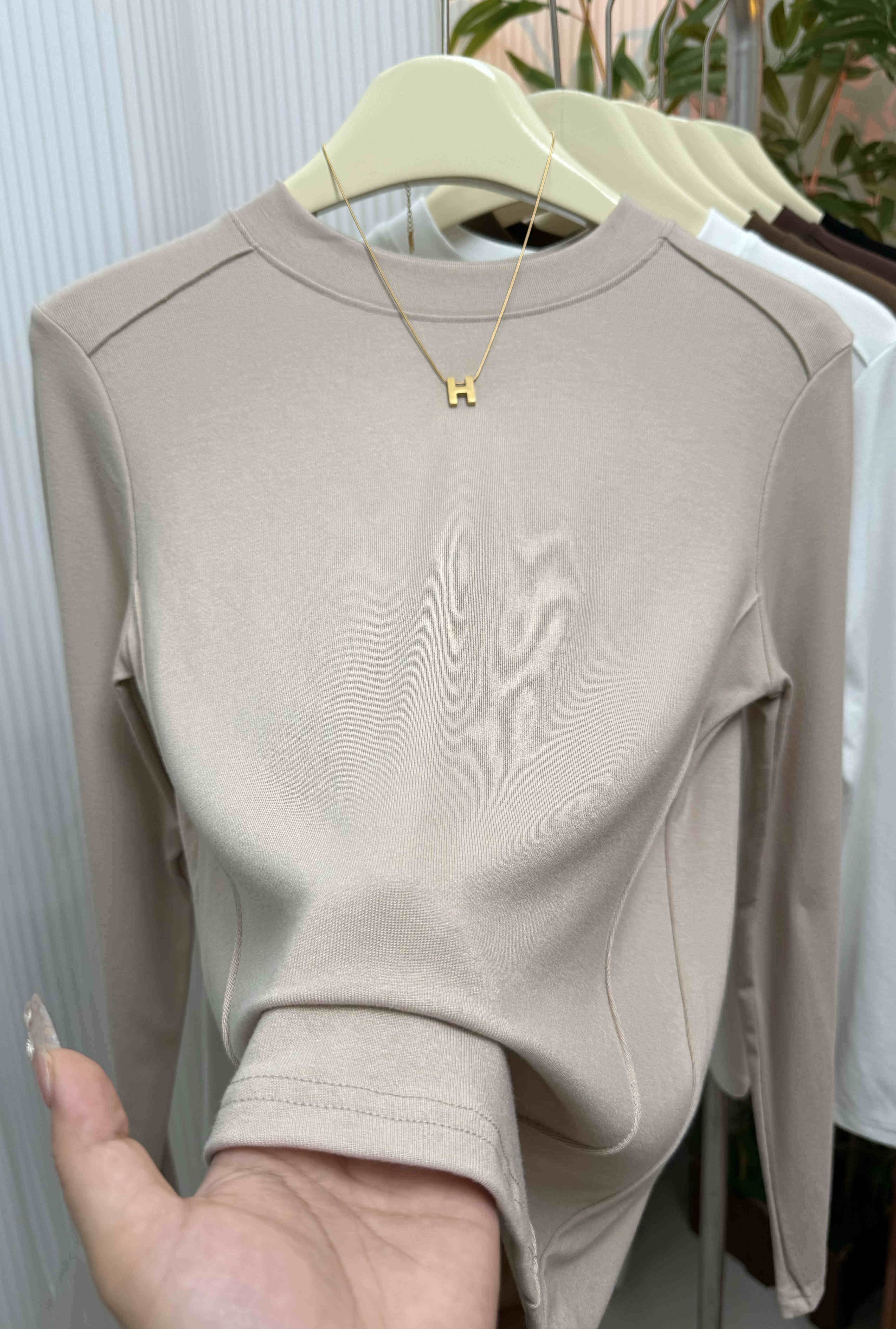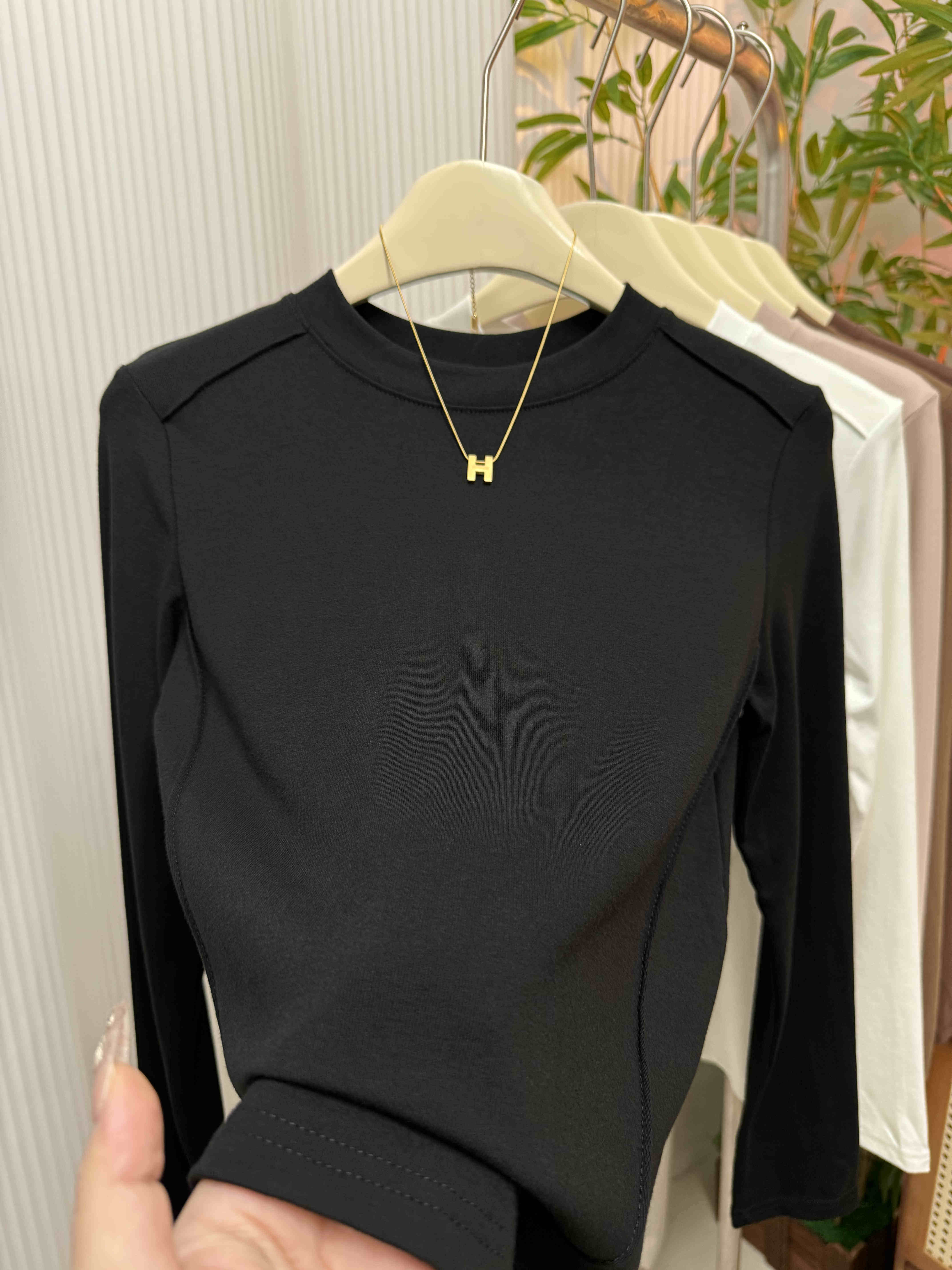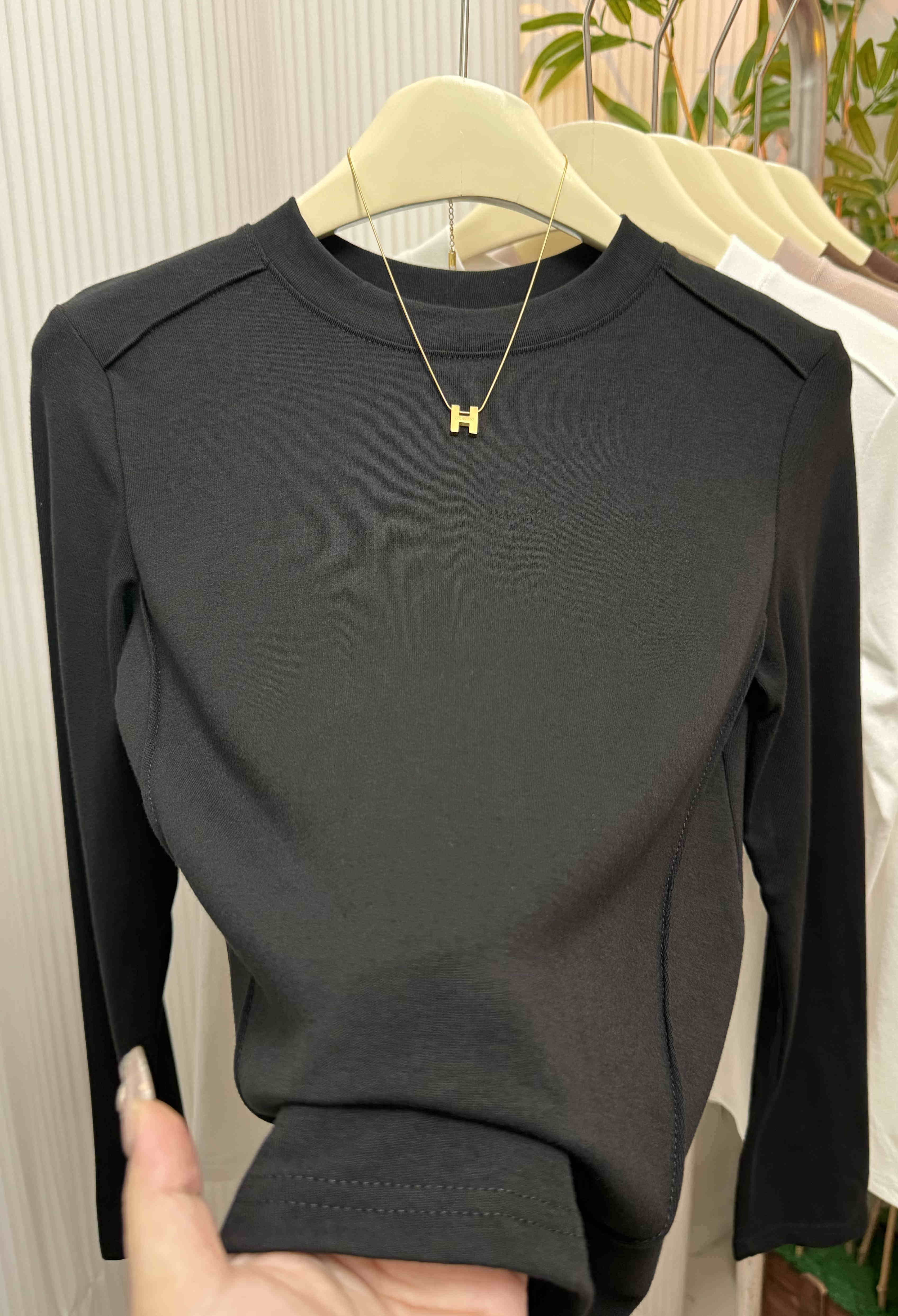 歐貨魚骨紋收腰線顯瘦氣質t恤女春秋新款時尚洋氣圓領上衣打底衫
