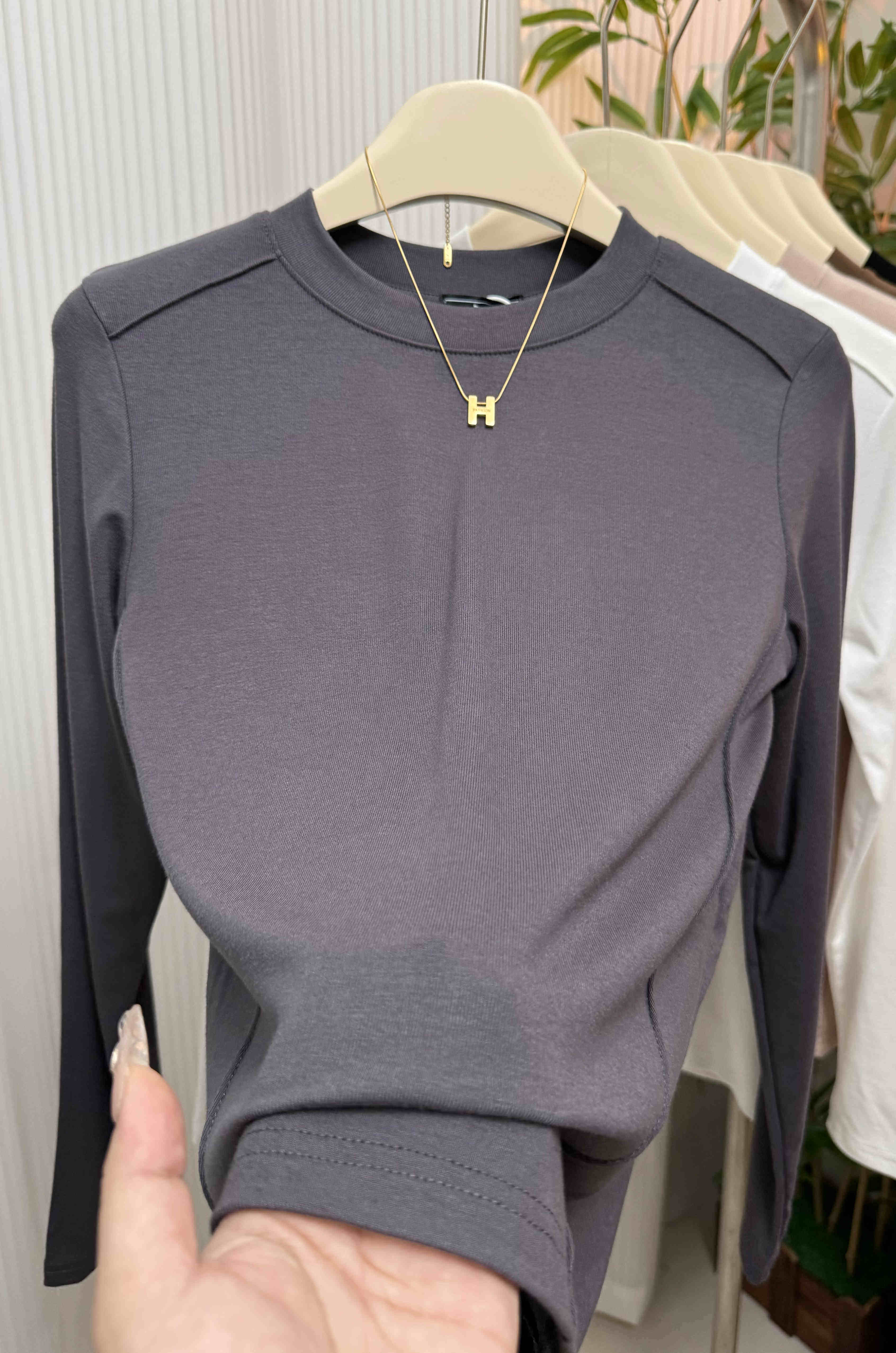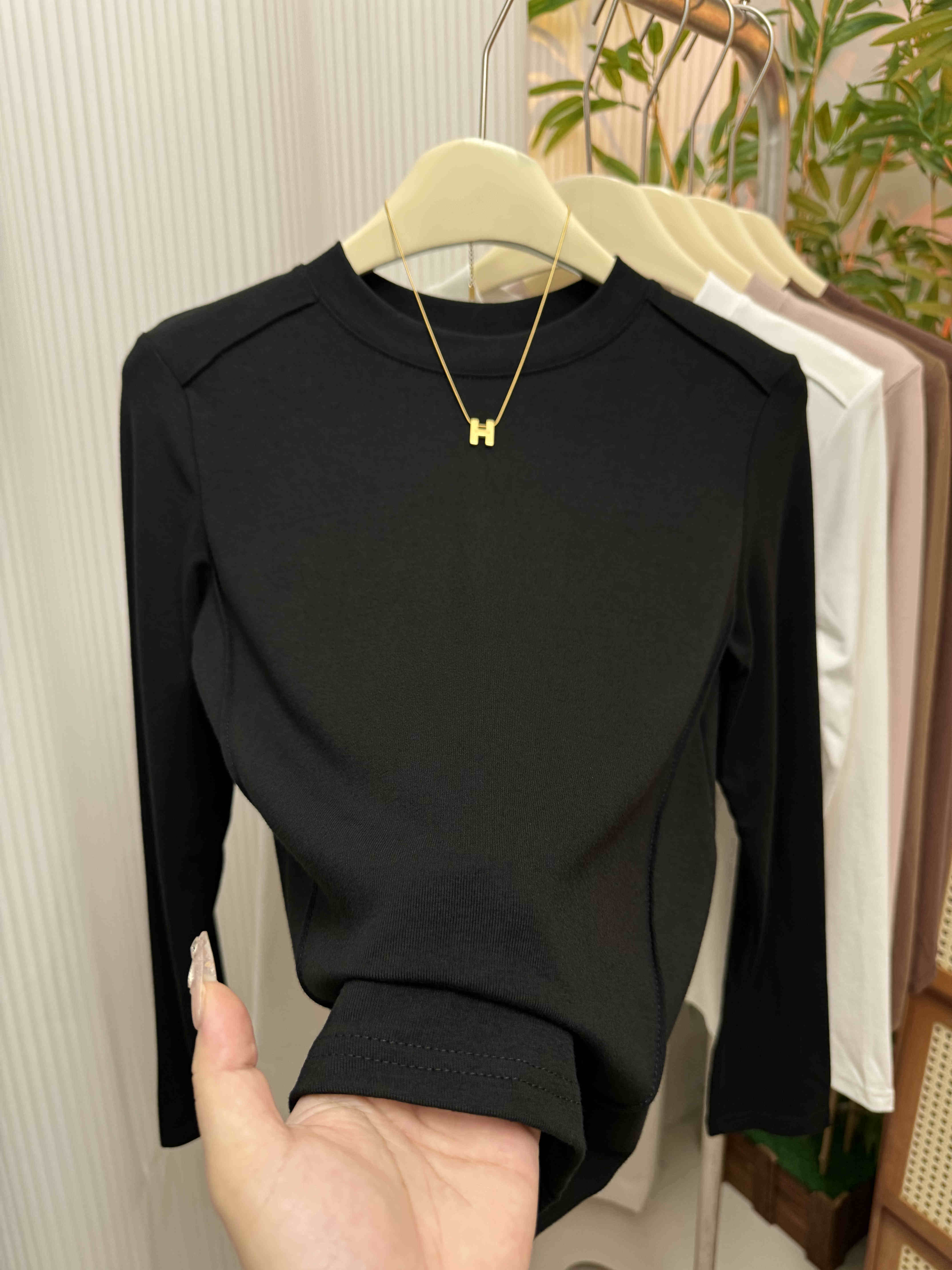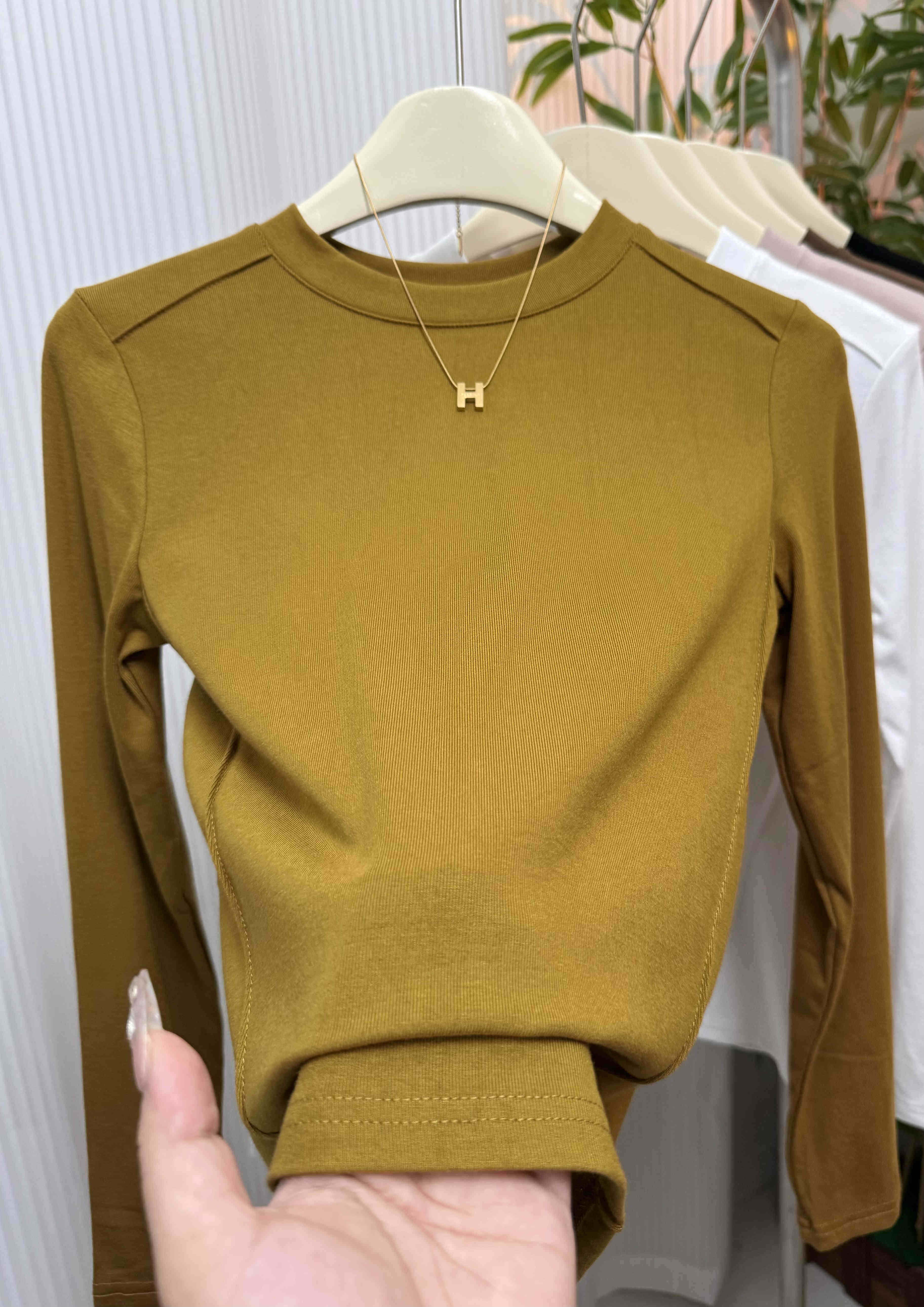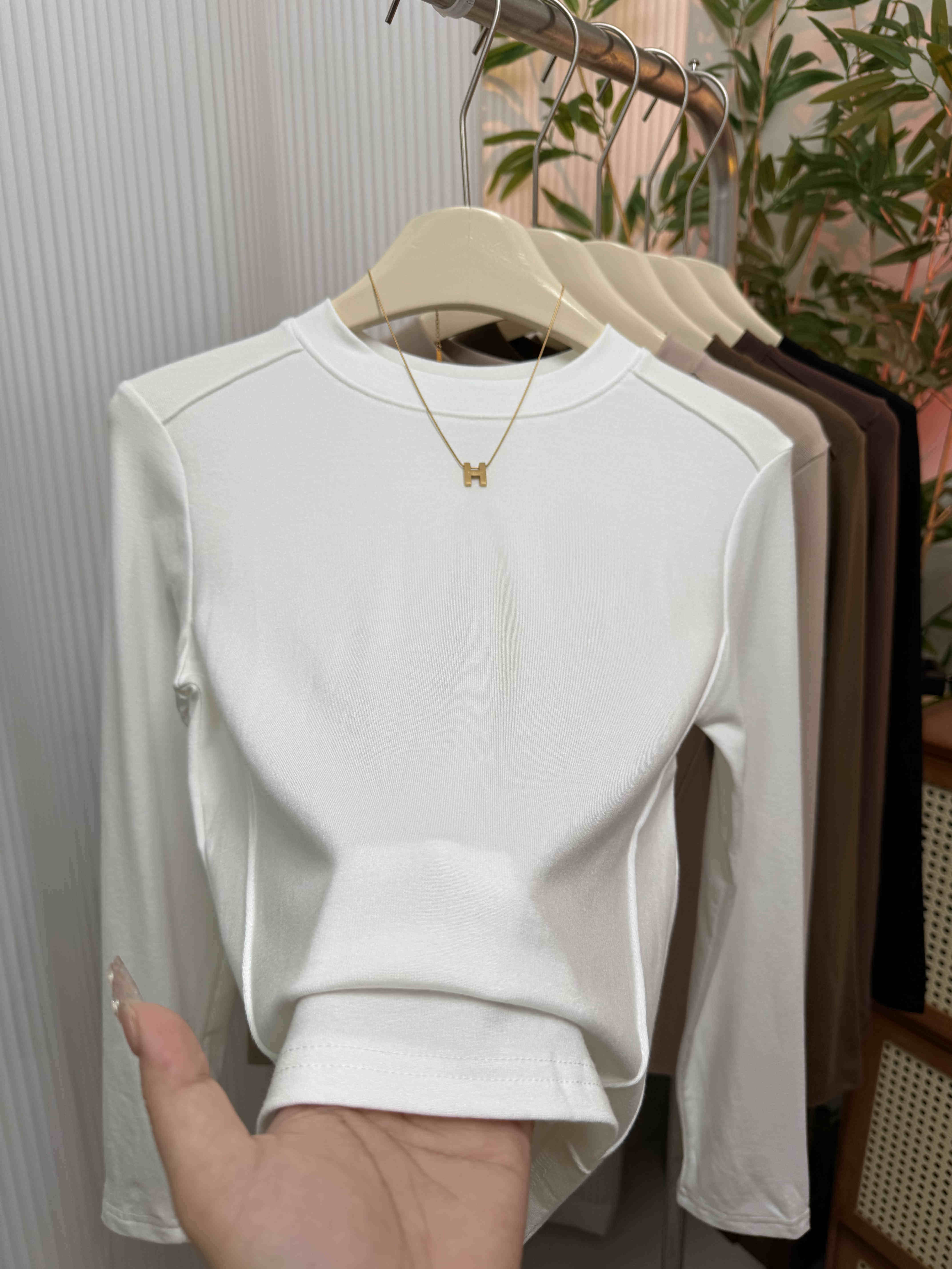 歐貨魚骨紋收腰線顯瘦氣質t恤女春秋新款時尚洋氣圓領上衣打底衫