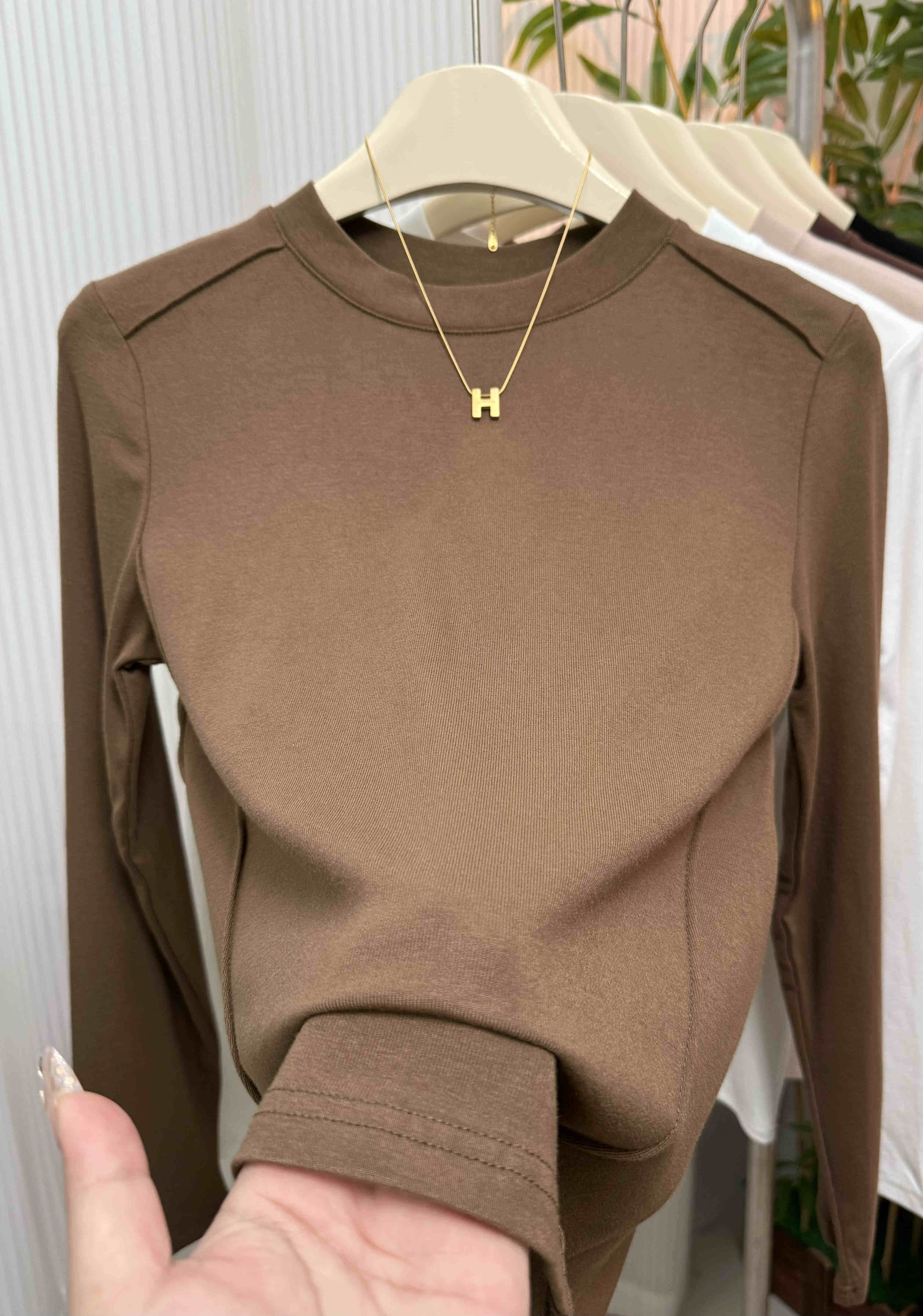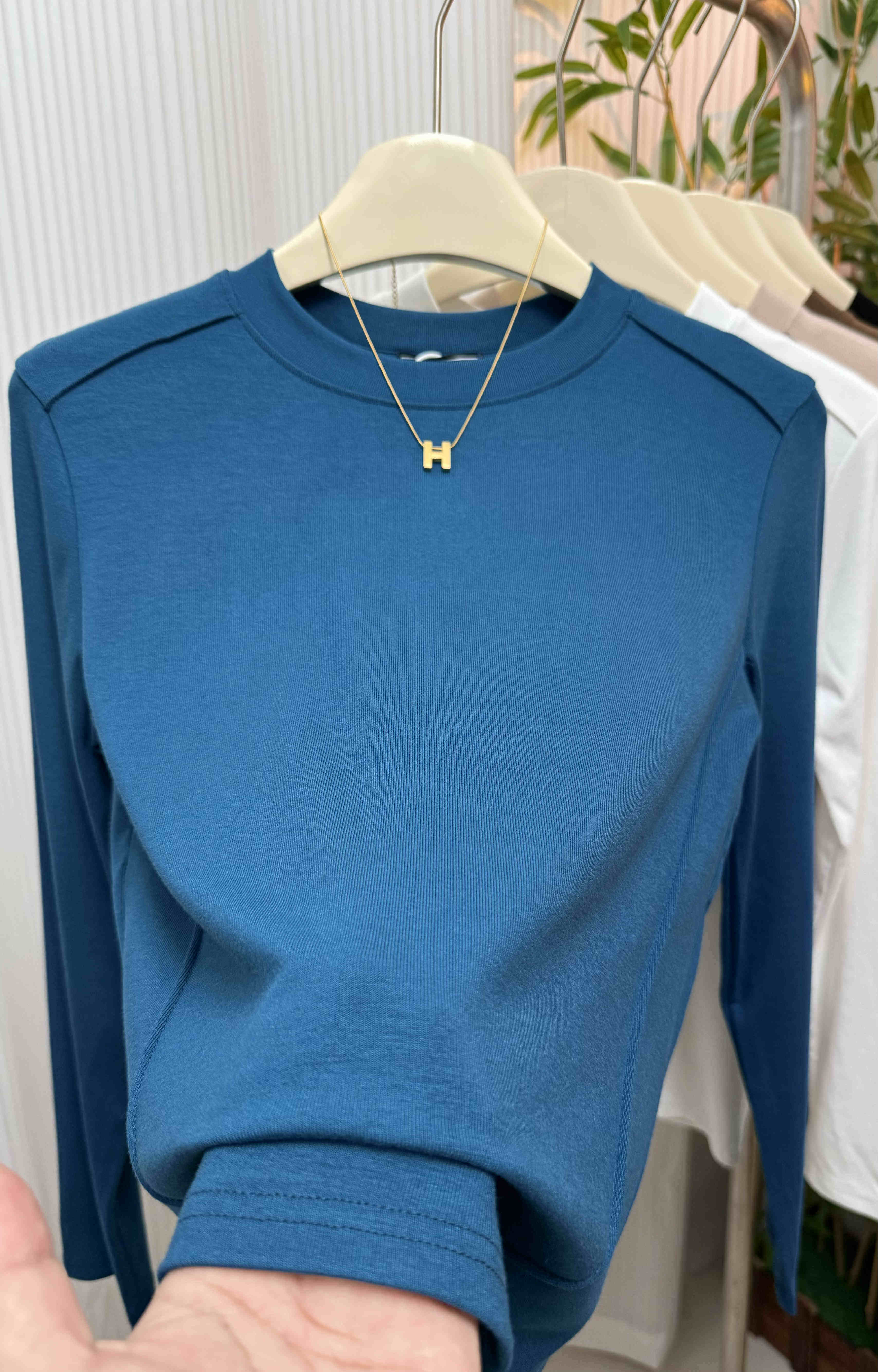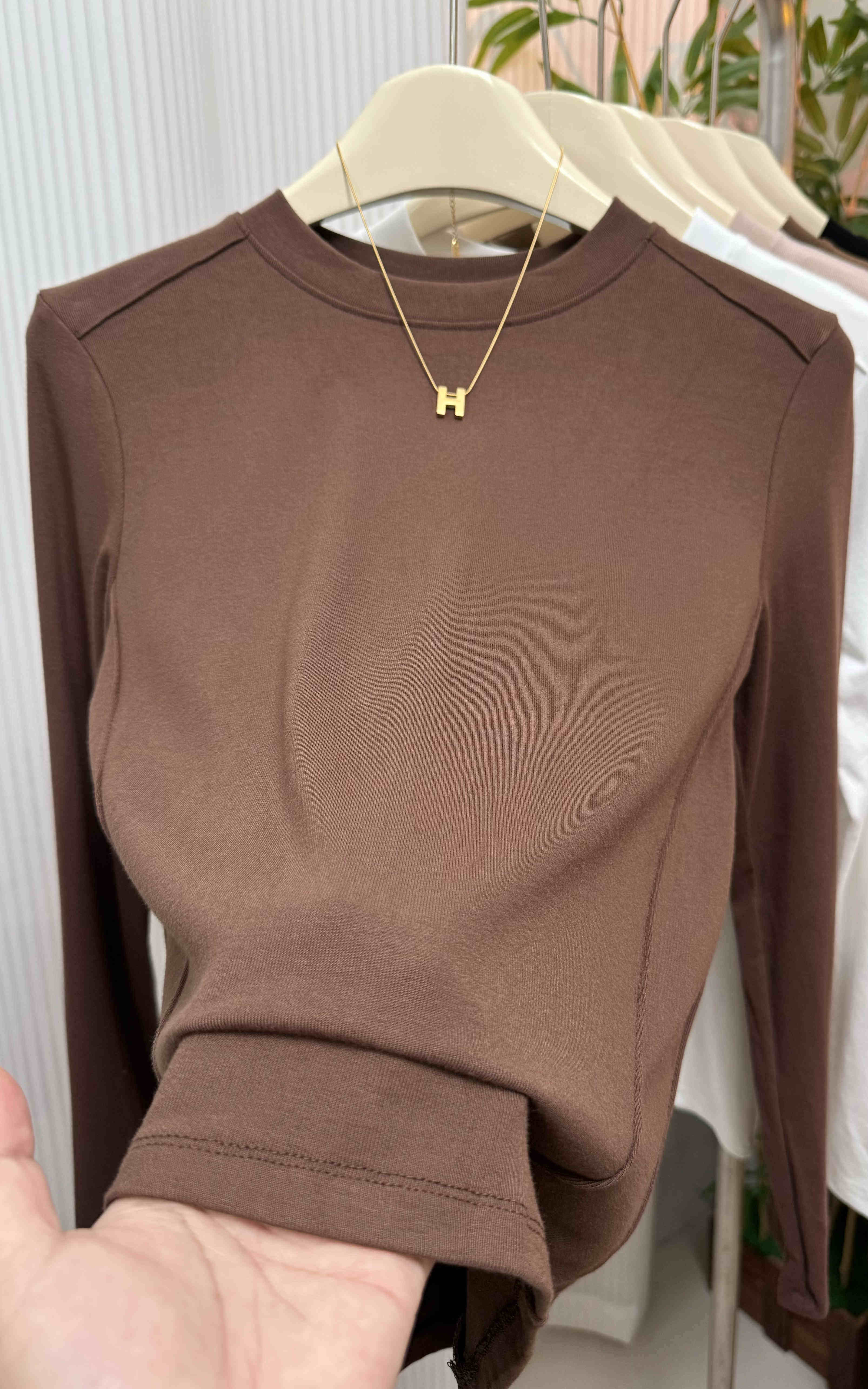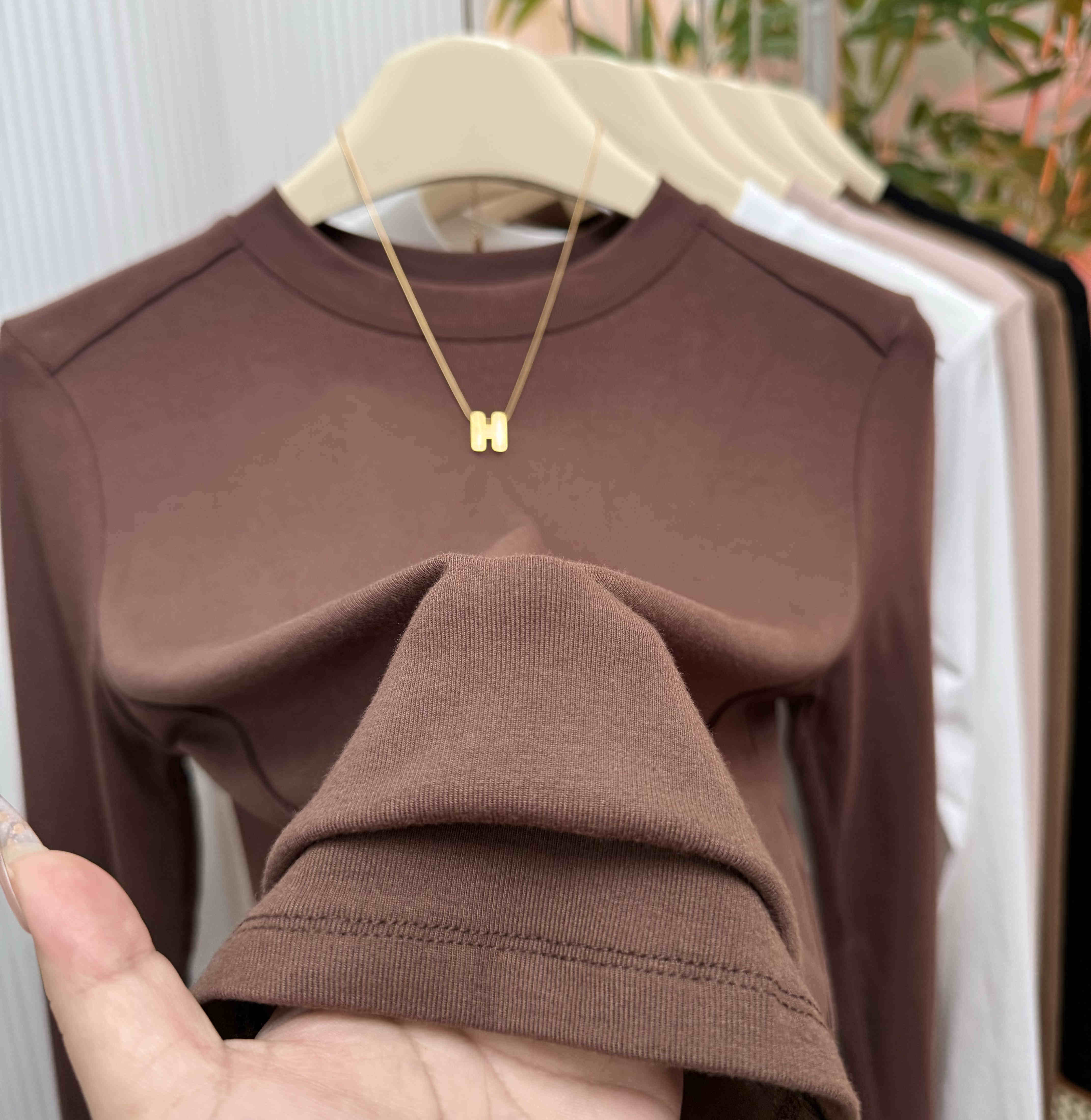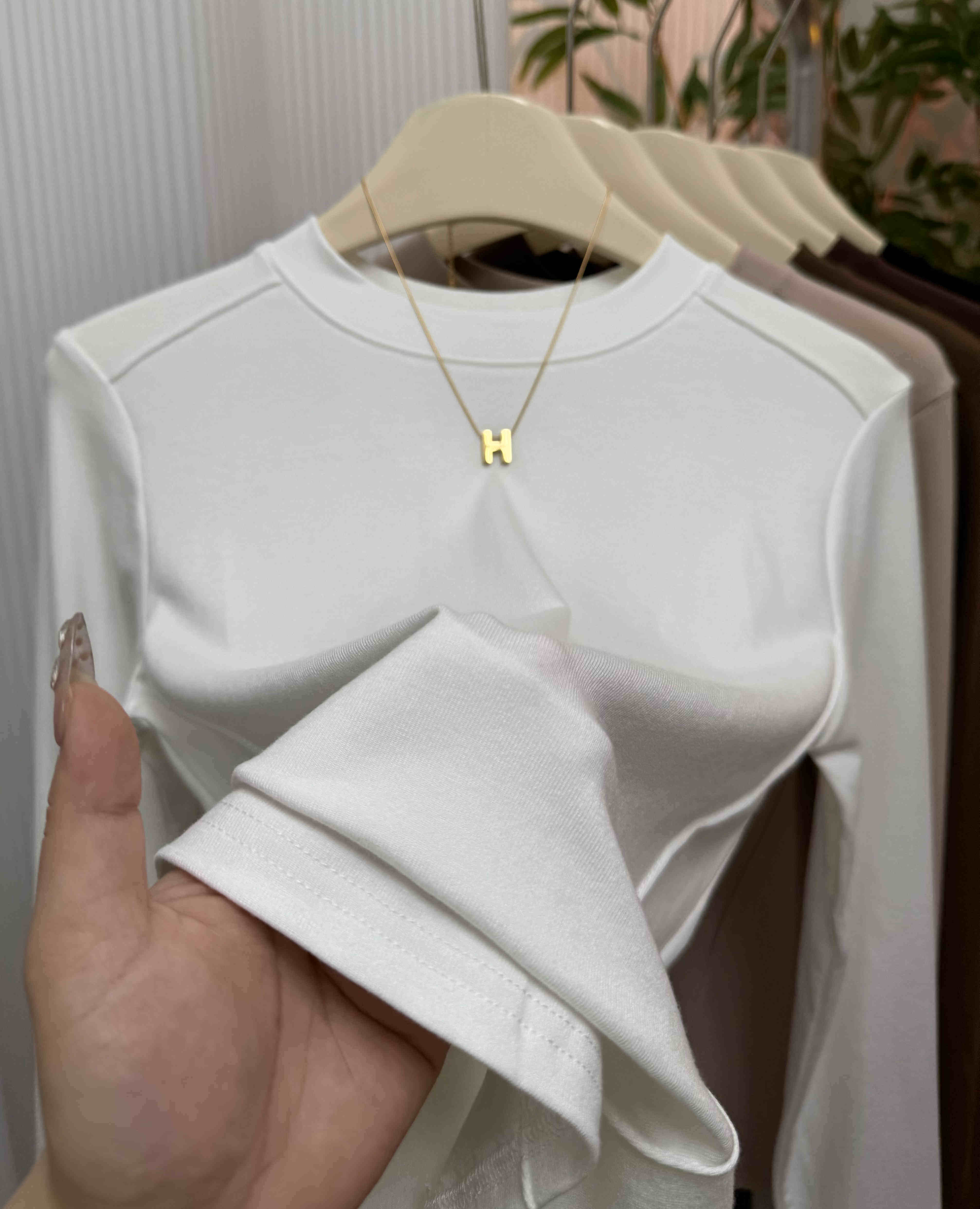 歐貨魚骨紋收腰線顯瘦氣質t恤女春秋新款時尚洋氣圓領上衣打底衫