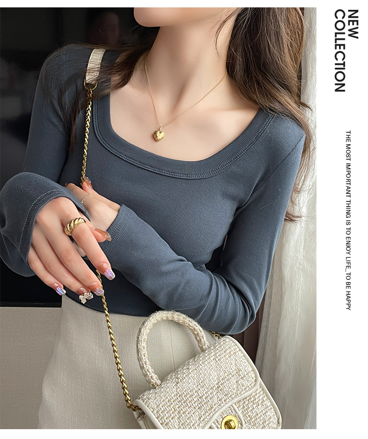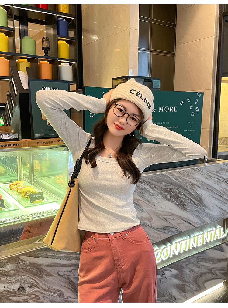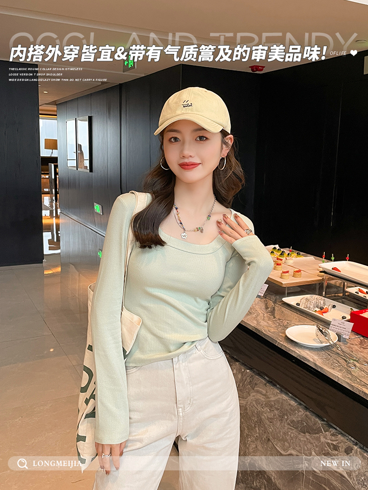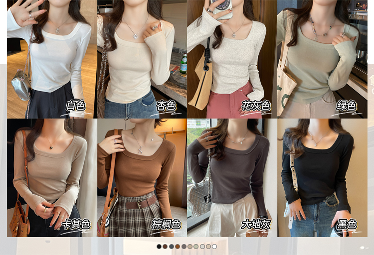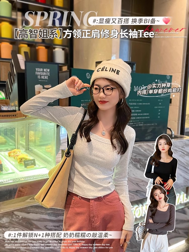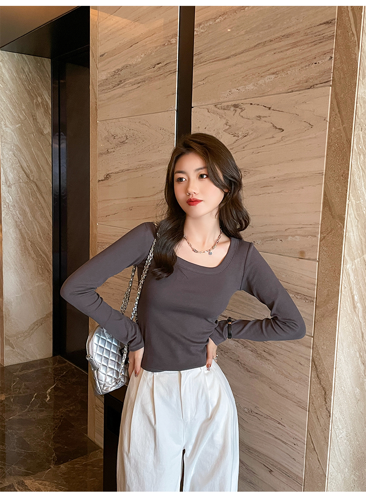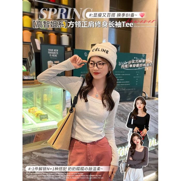 灰色方領正肩打底衫女2025秋季新款低領長袖t恤內搭修身上衣外穿