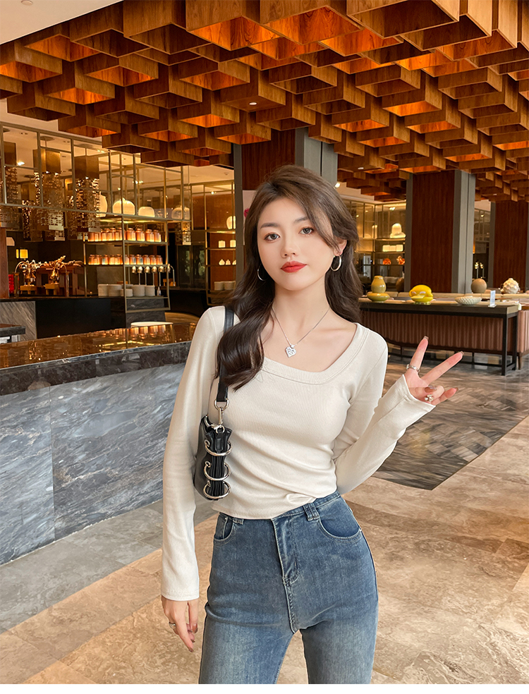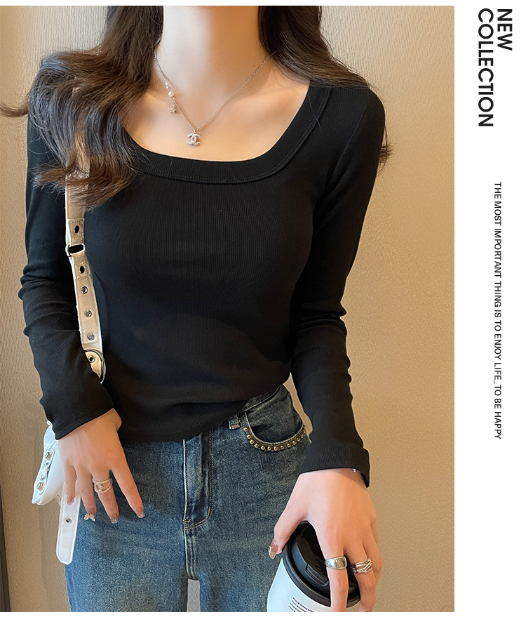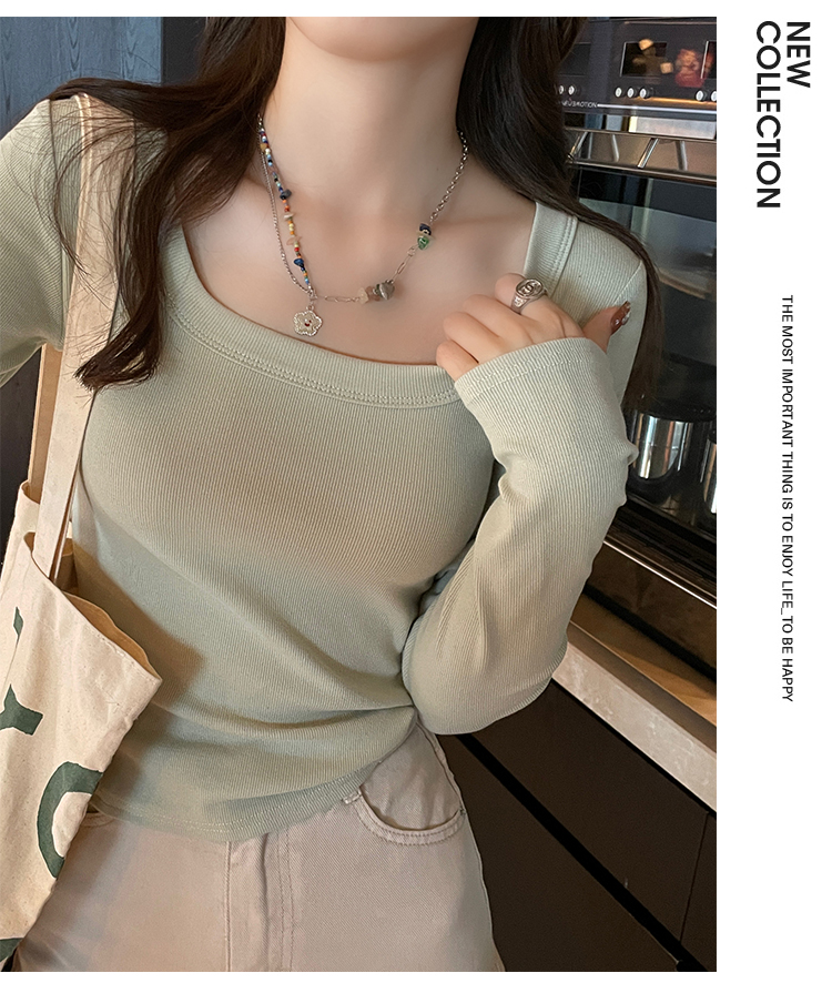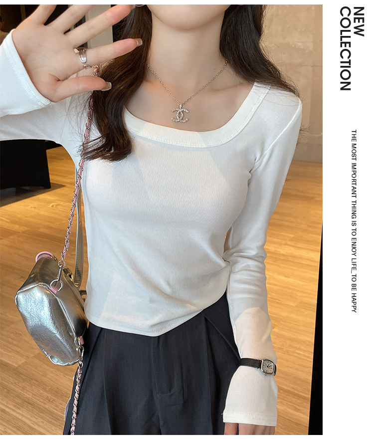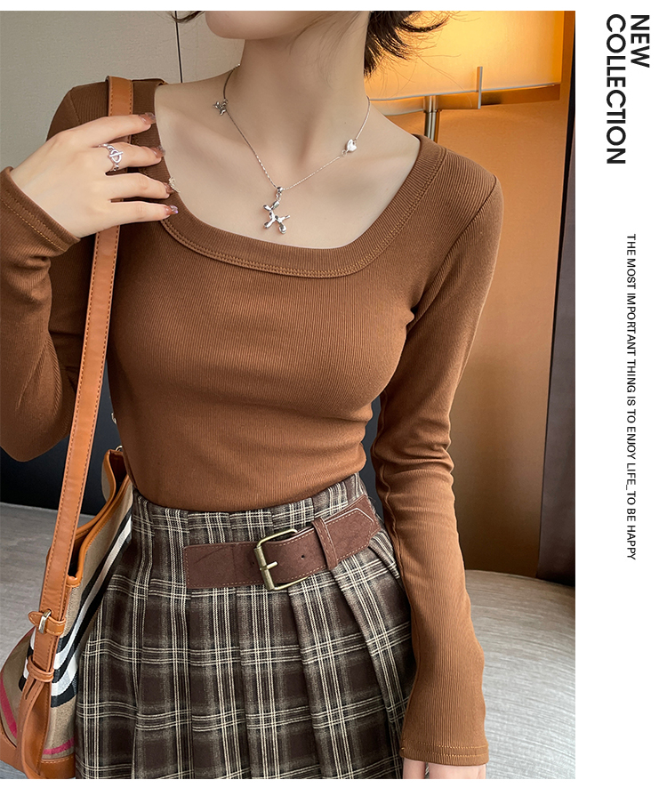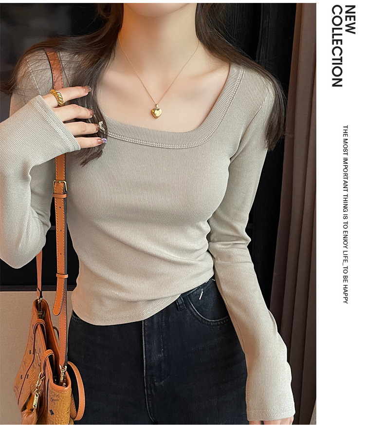 灰色方領正肩打底衫女2025秋季新款低領長袖t恤內搭修身上衣外穿
