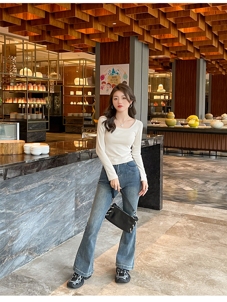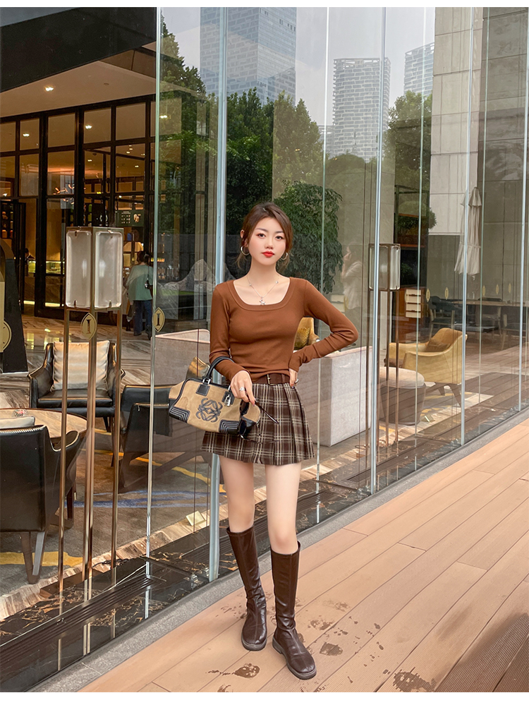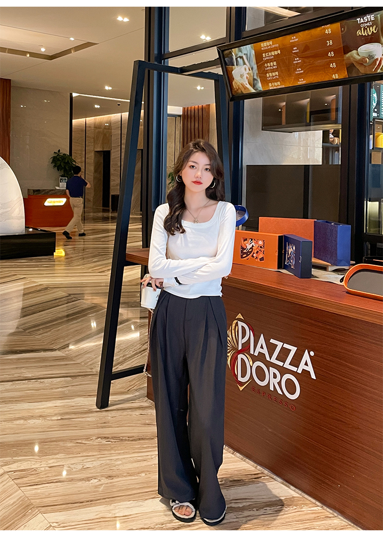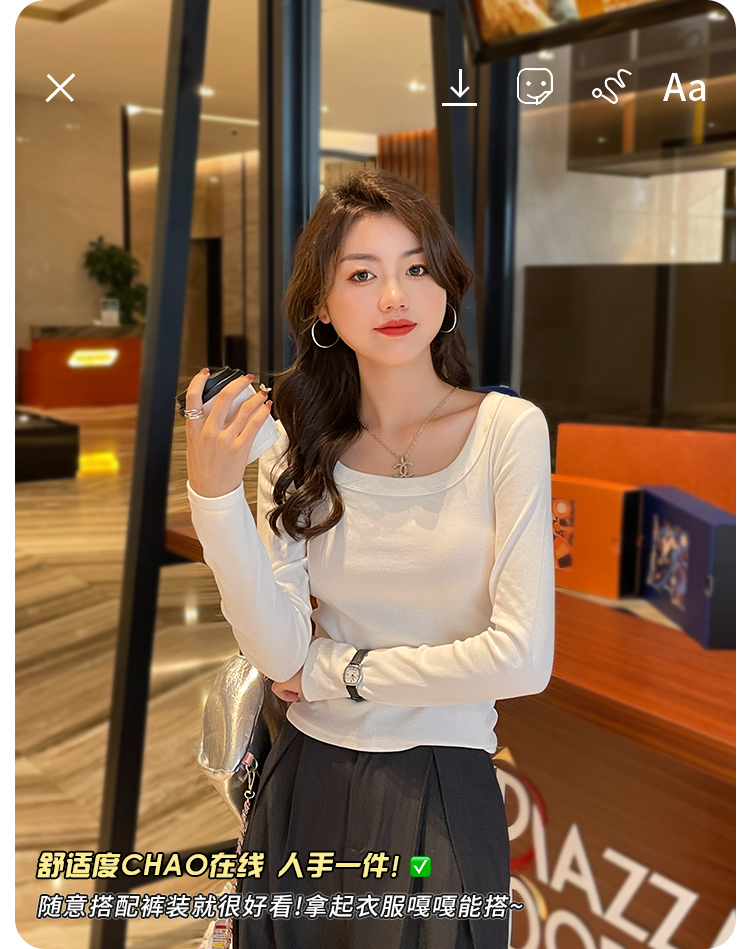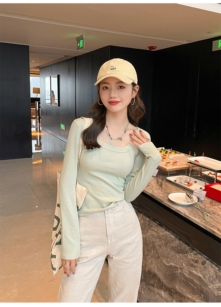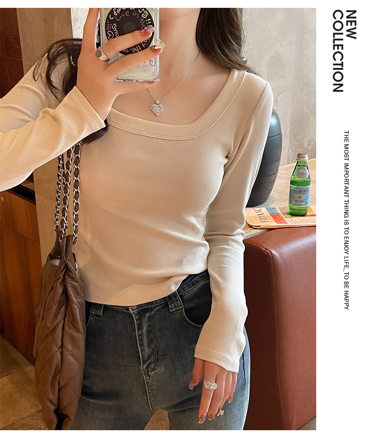 灰色方領正肩打底衫女2025秋季新款低領長袖t恤內搭修身上衣外穿