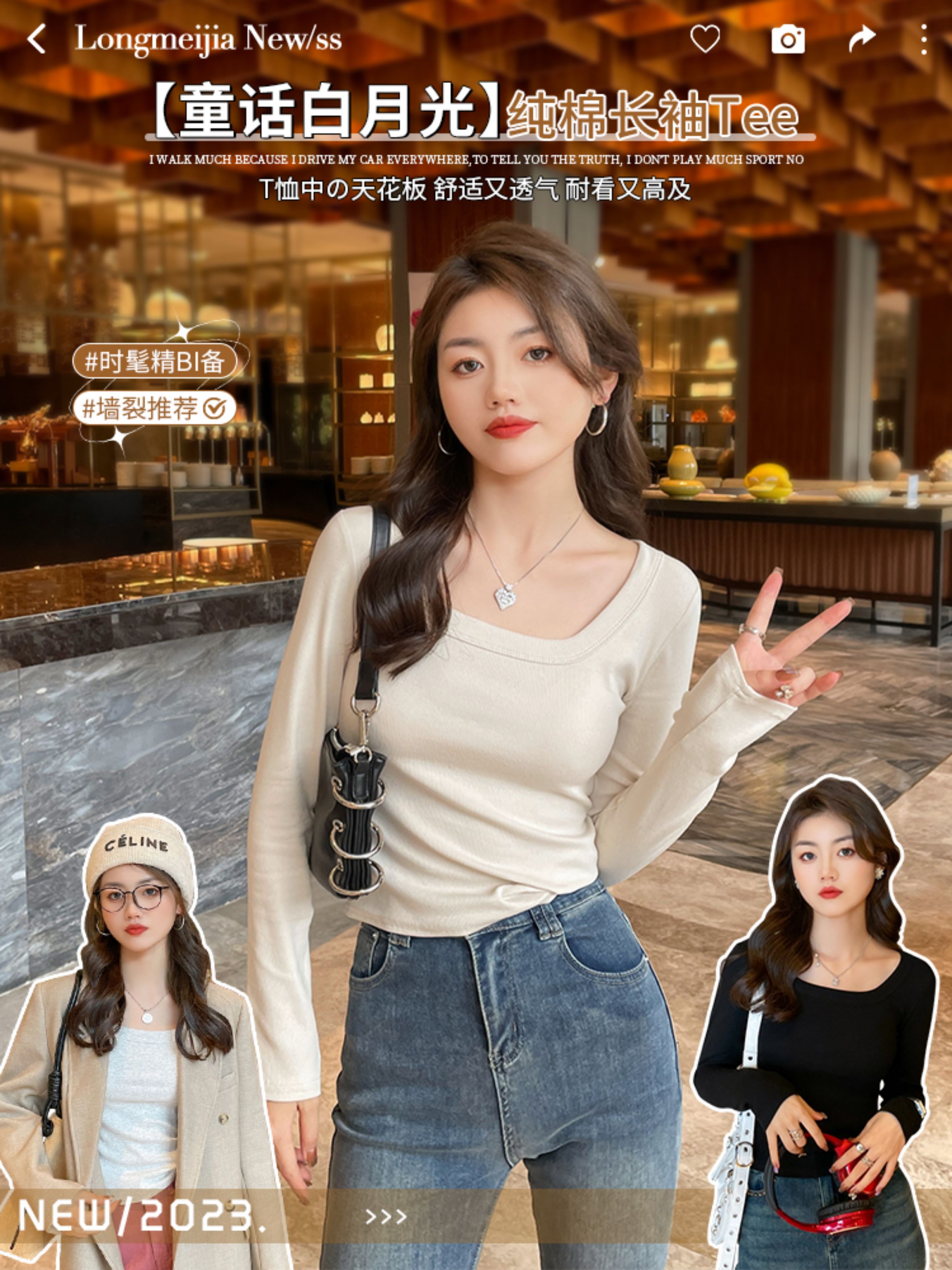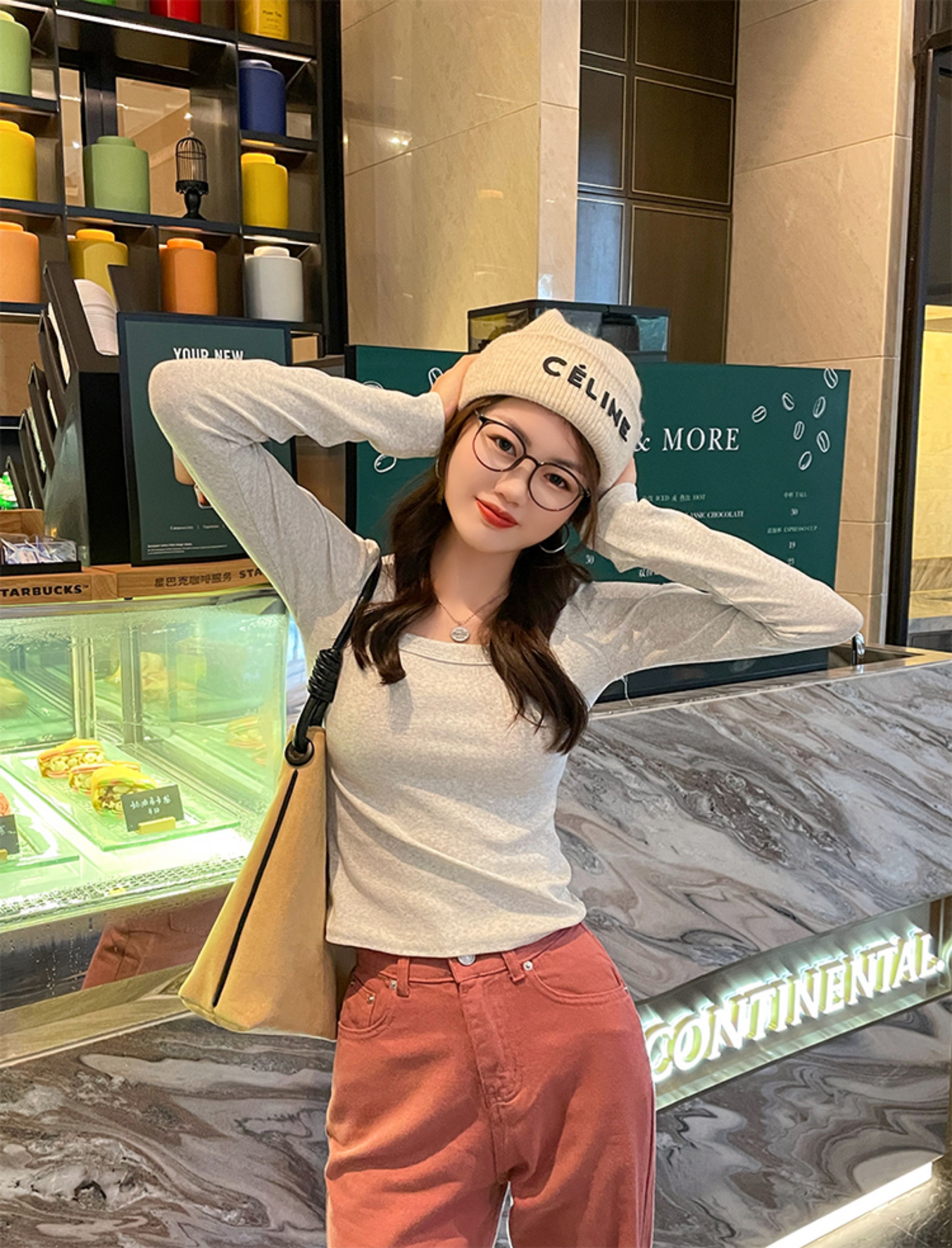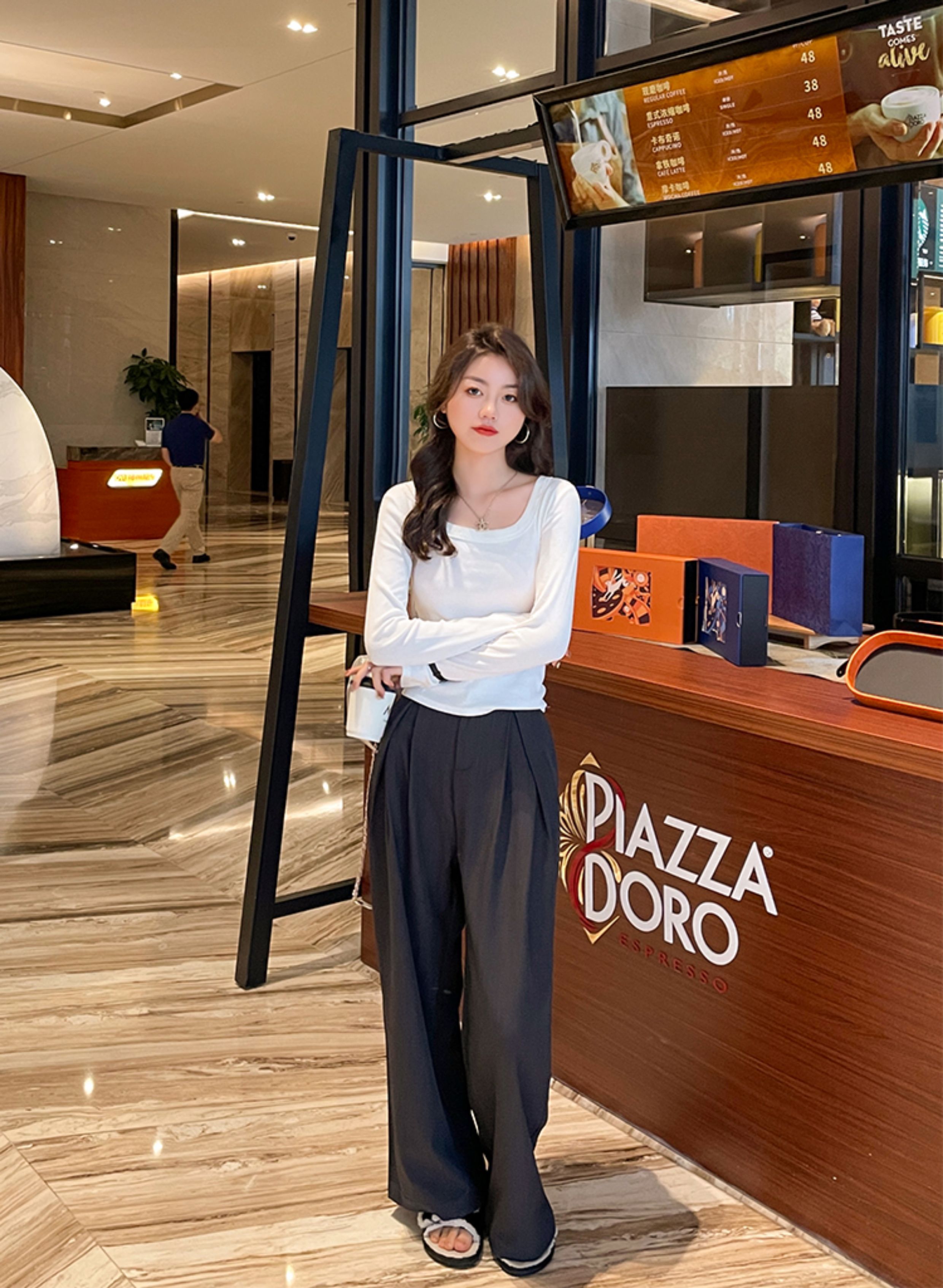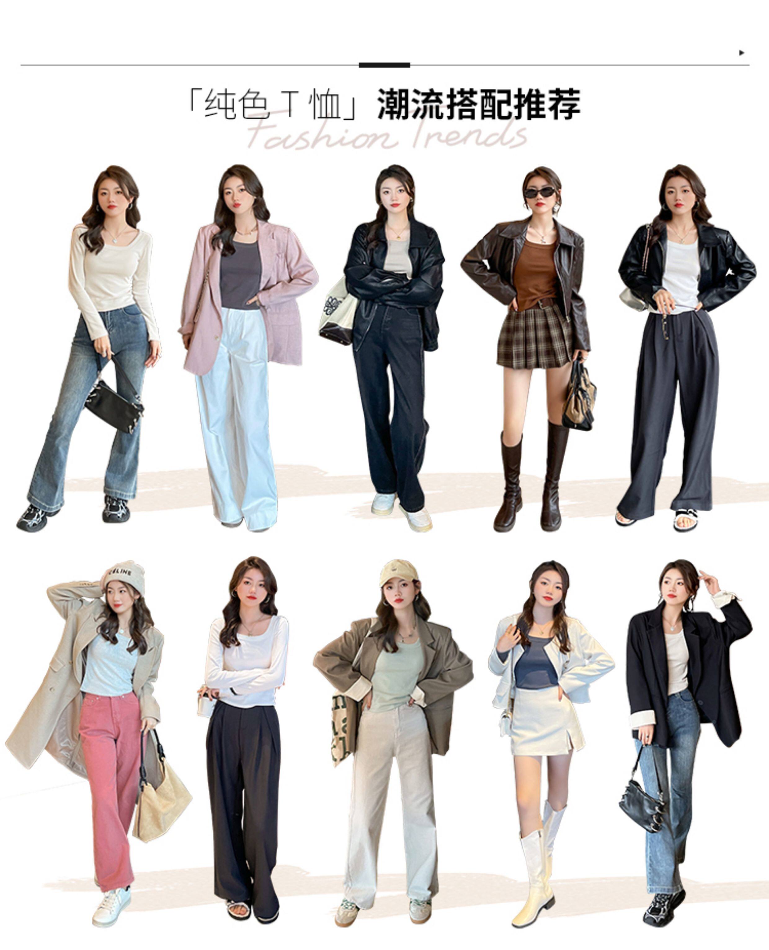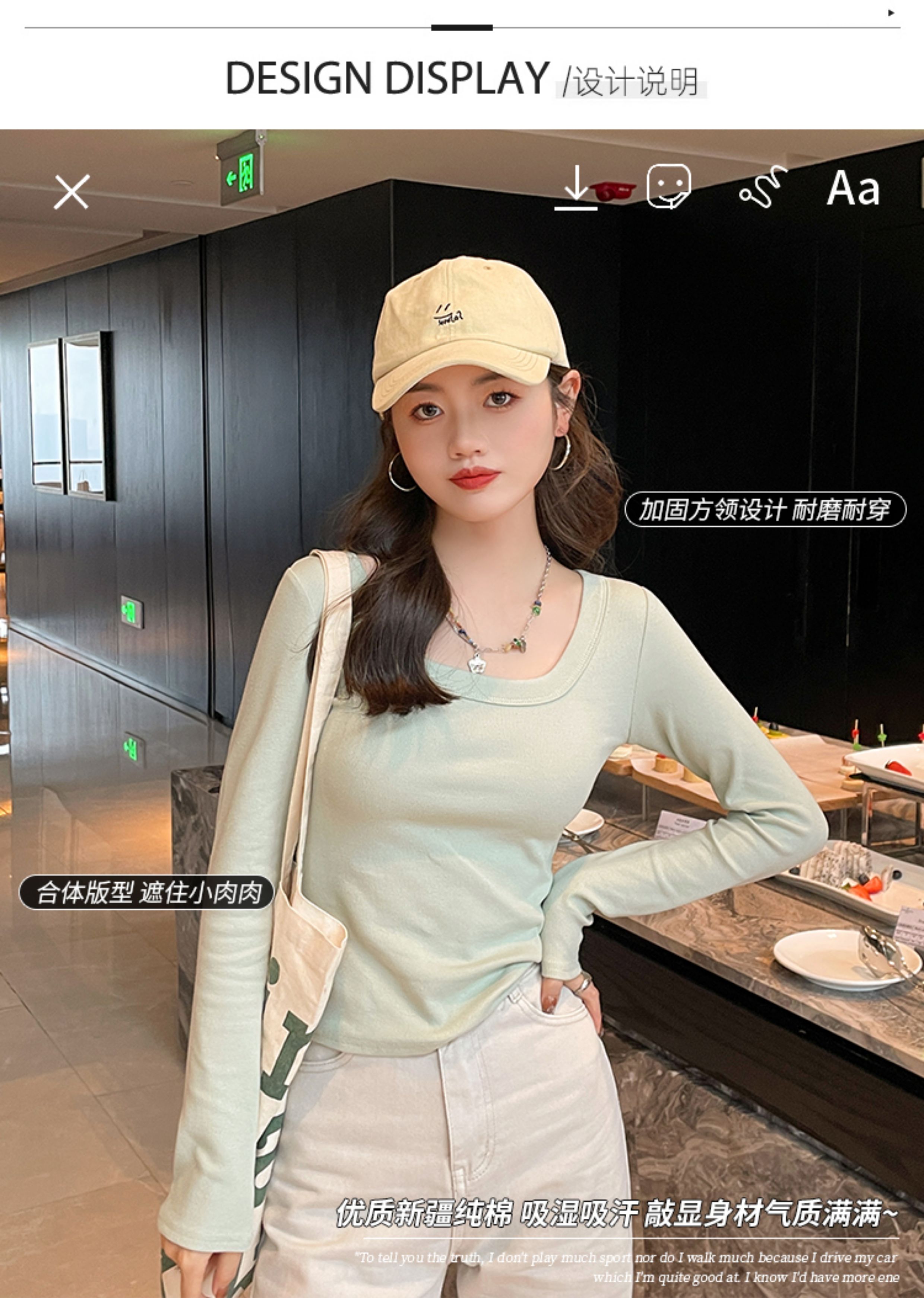 方領長袖t恤2025早秋季女流行新款內搭打底衫修身低u領白色小上衣