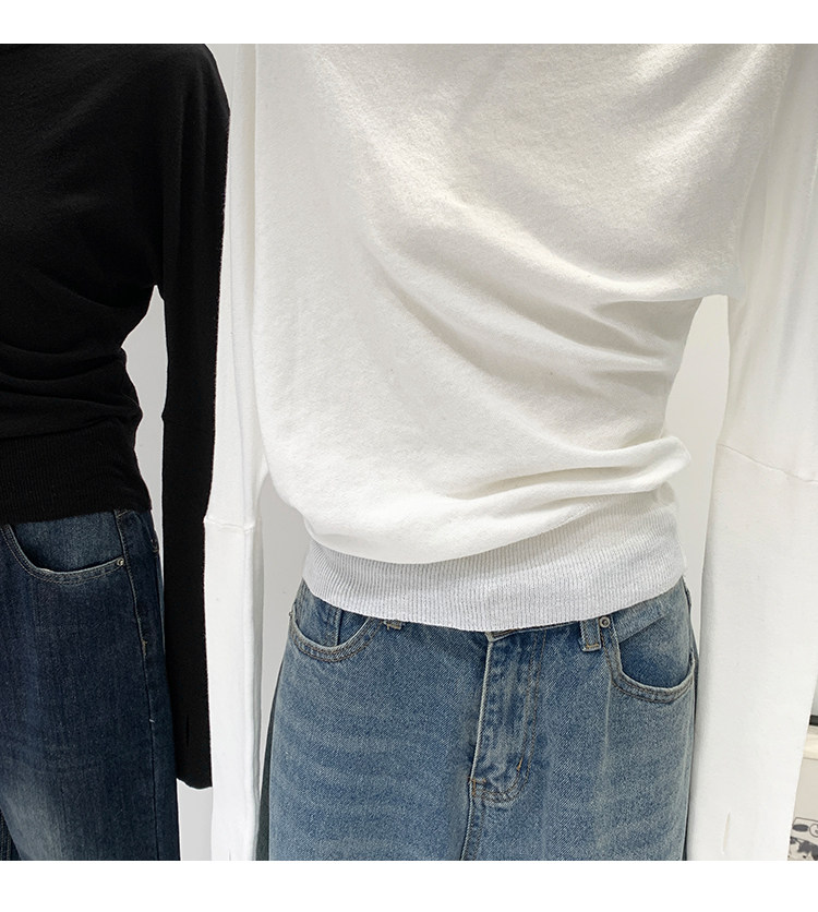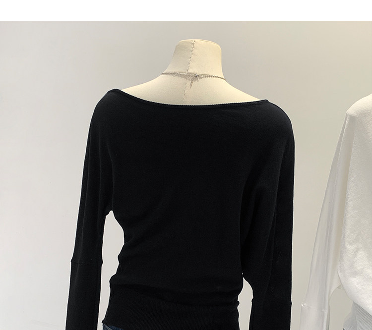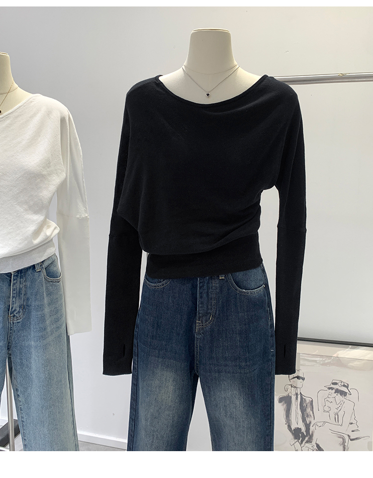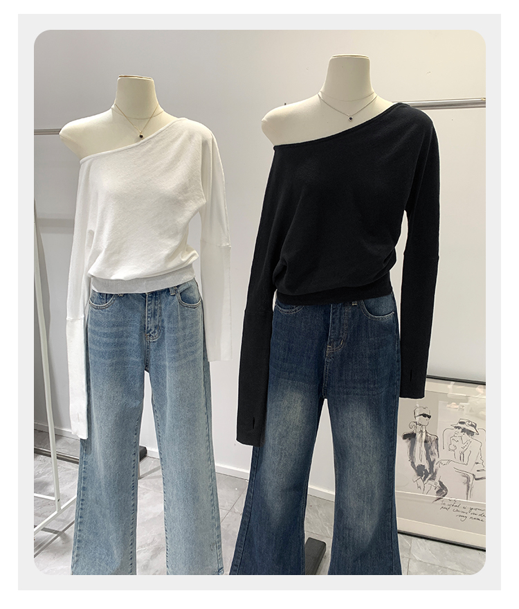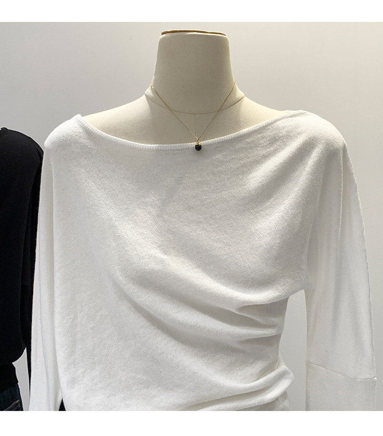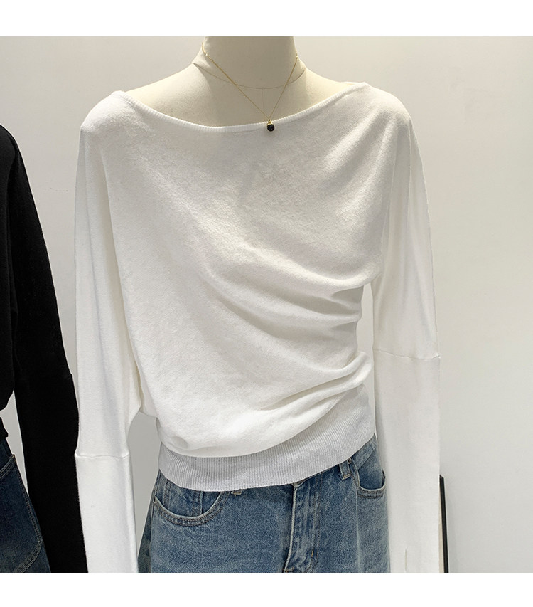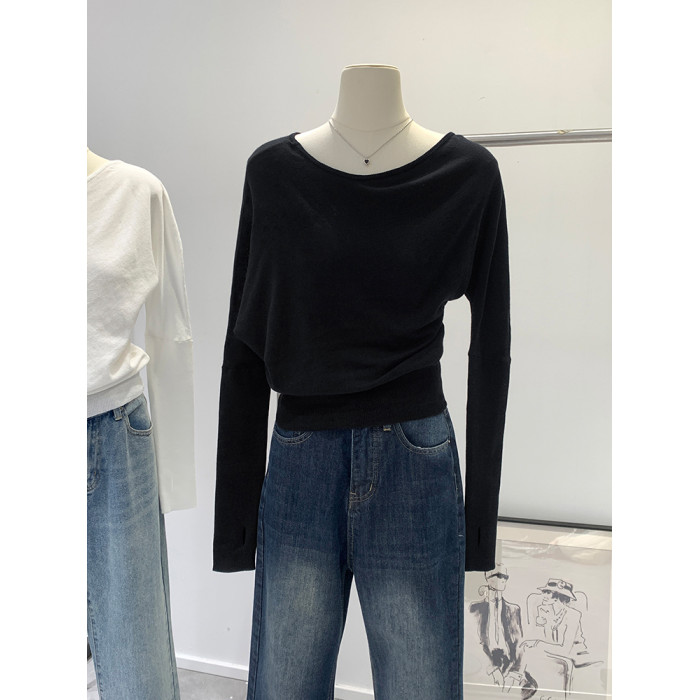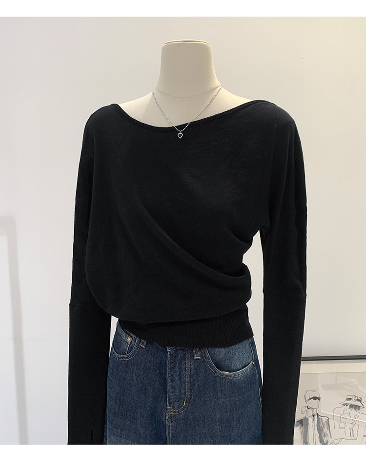 高級感露肩斜肩小上衣白色針織衫女秋冬新款韓系獨特漂亮長袖毛衣