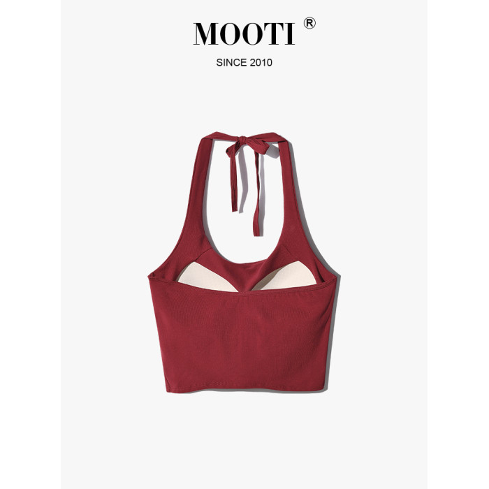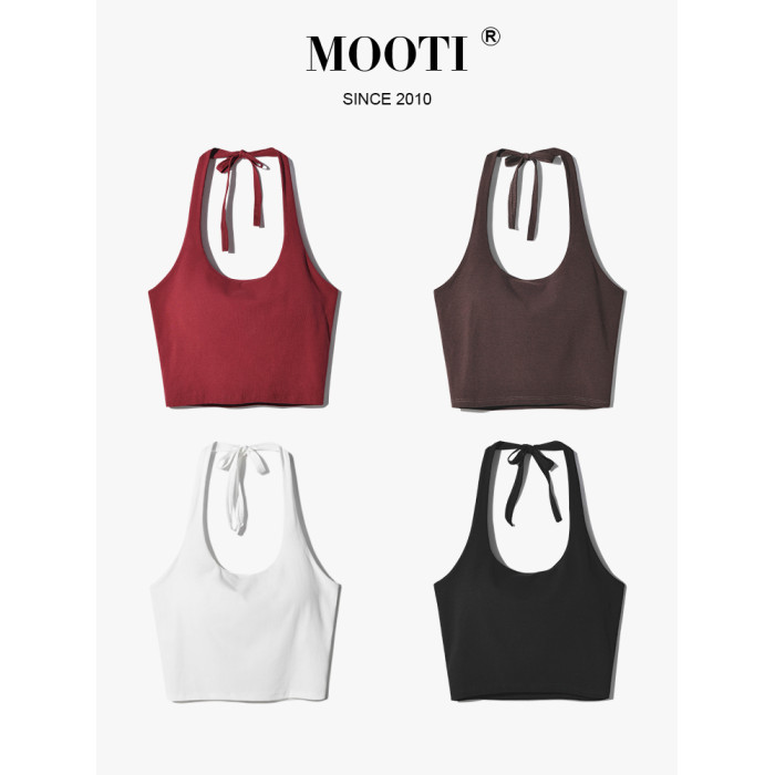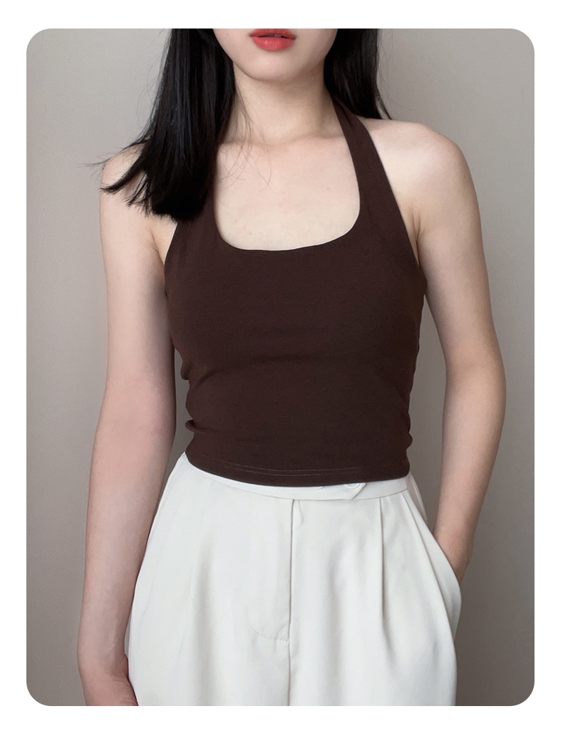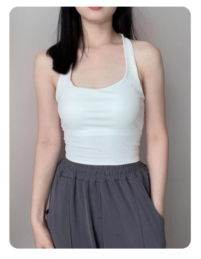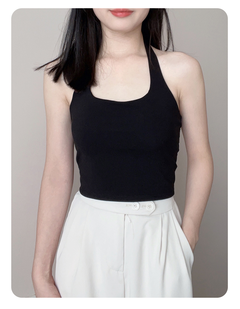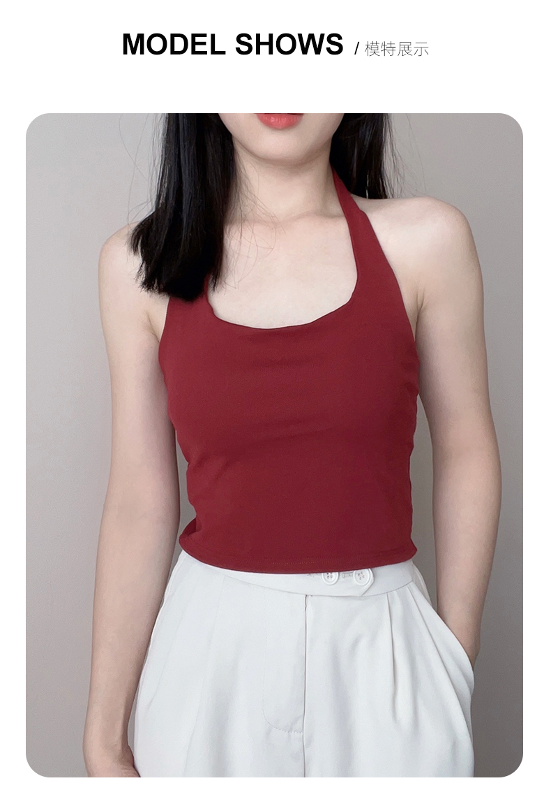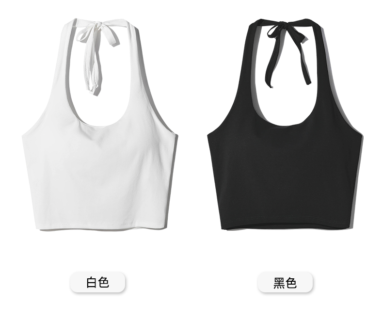 帶胸墊掛脖吊帶背心女內搭短款打底美背內衣辣妹抹胸上衣外穿白色