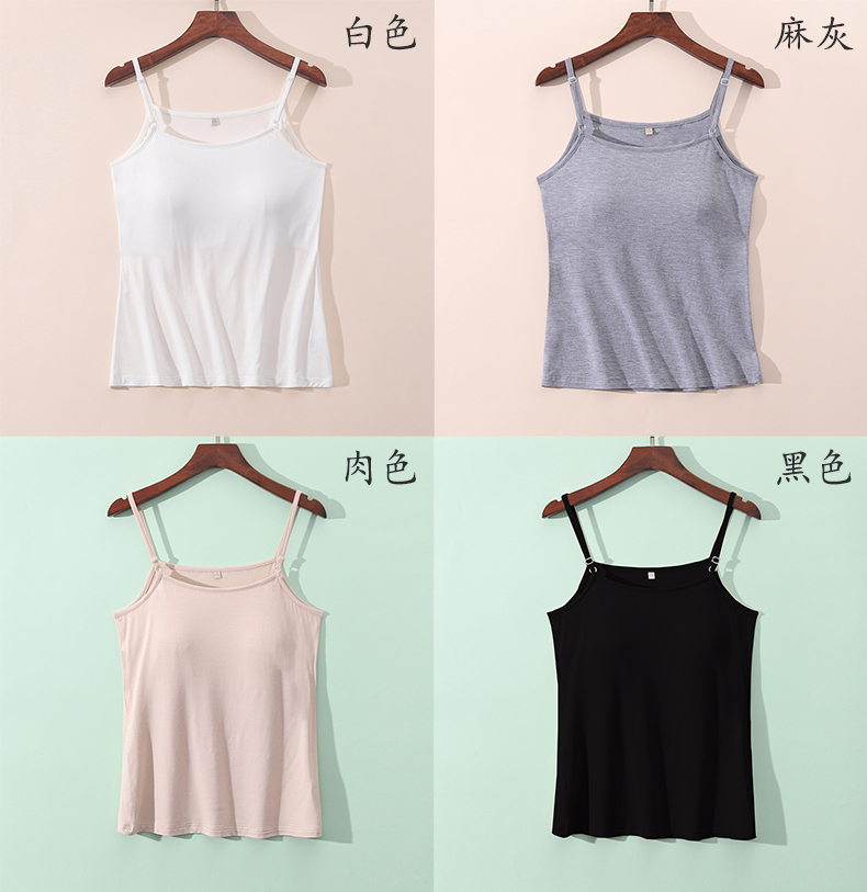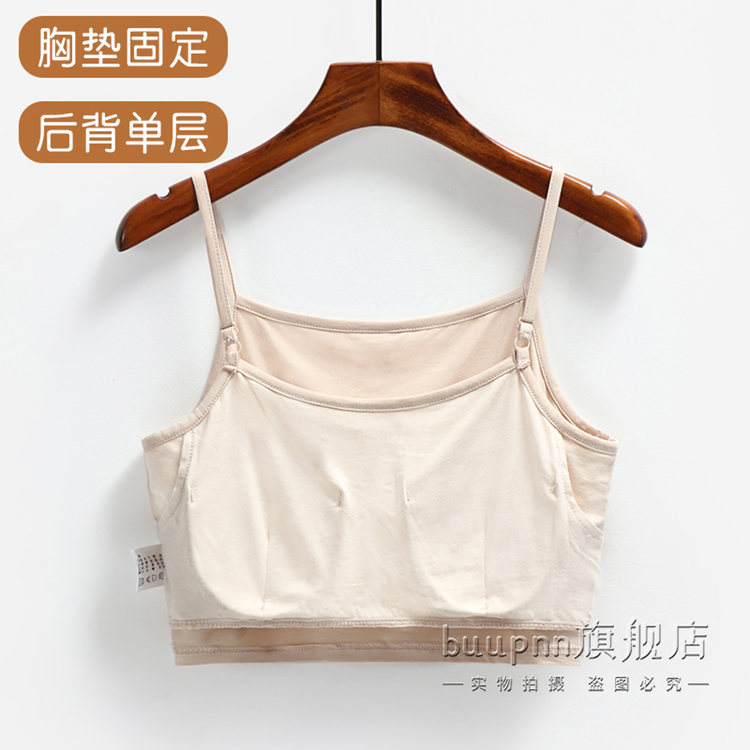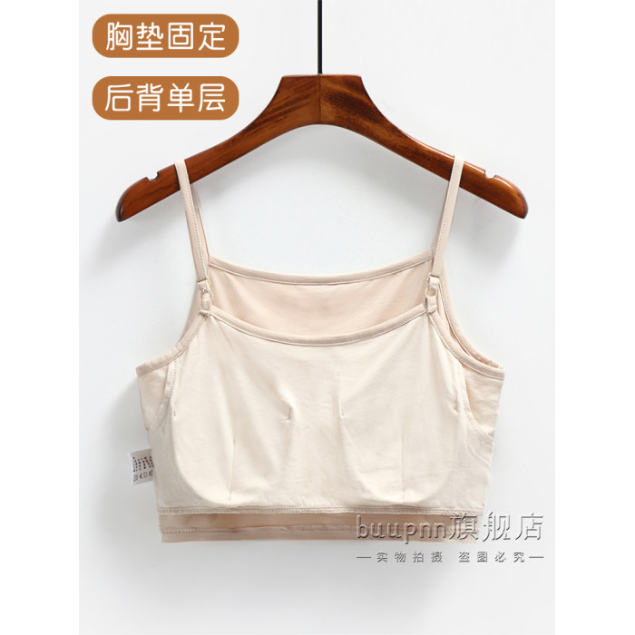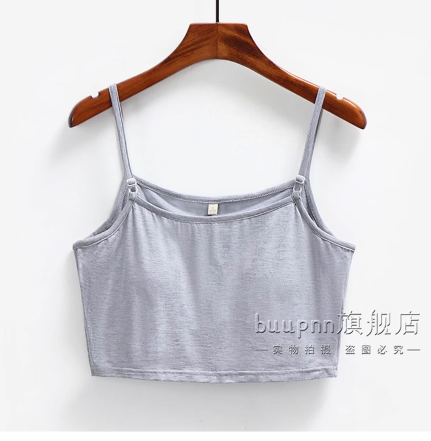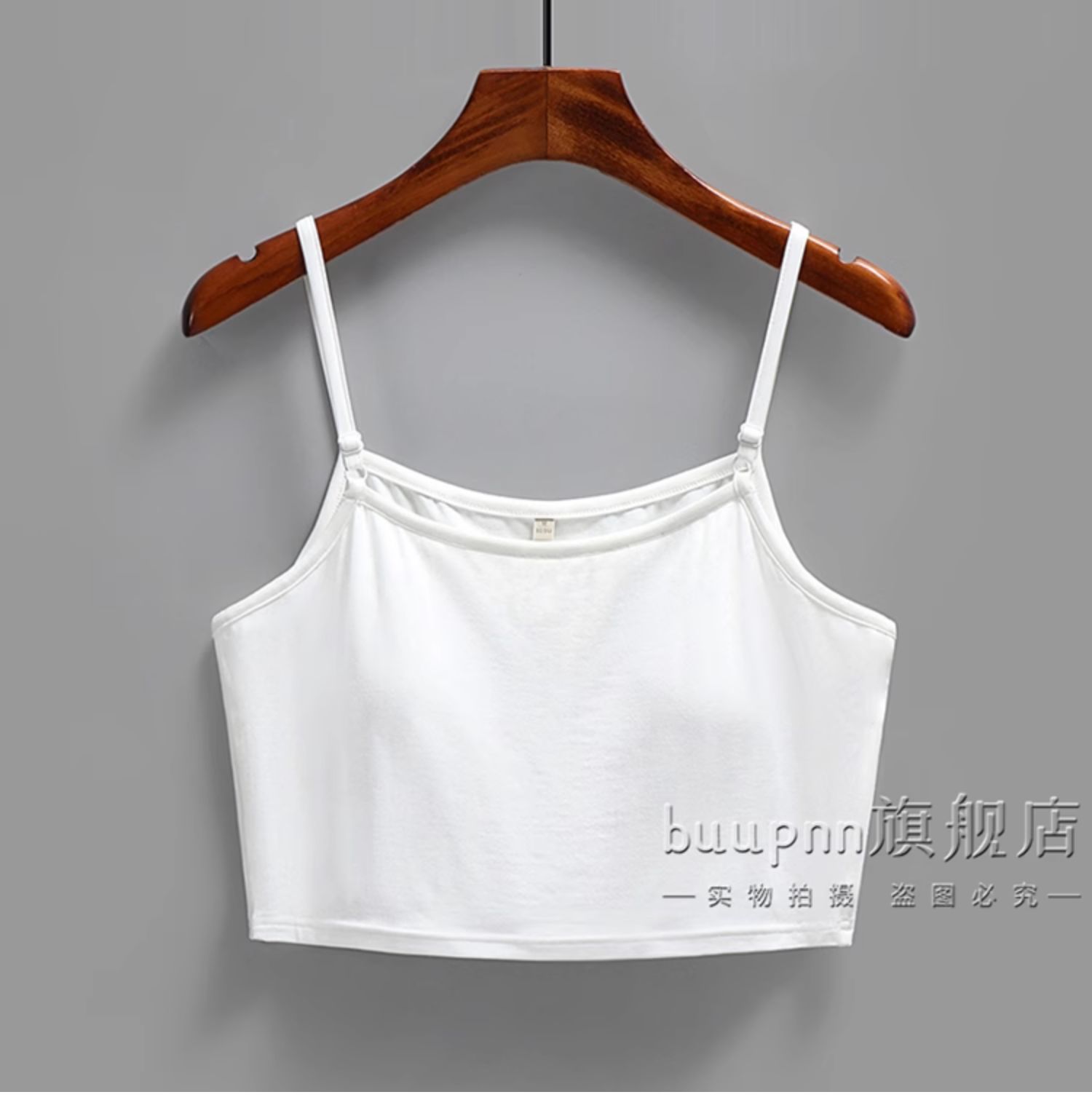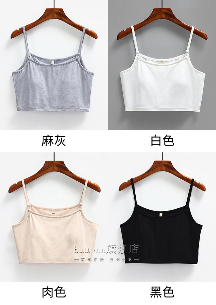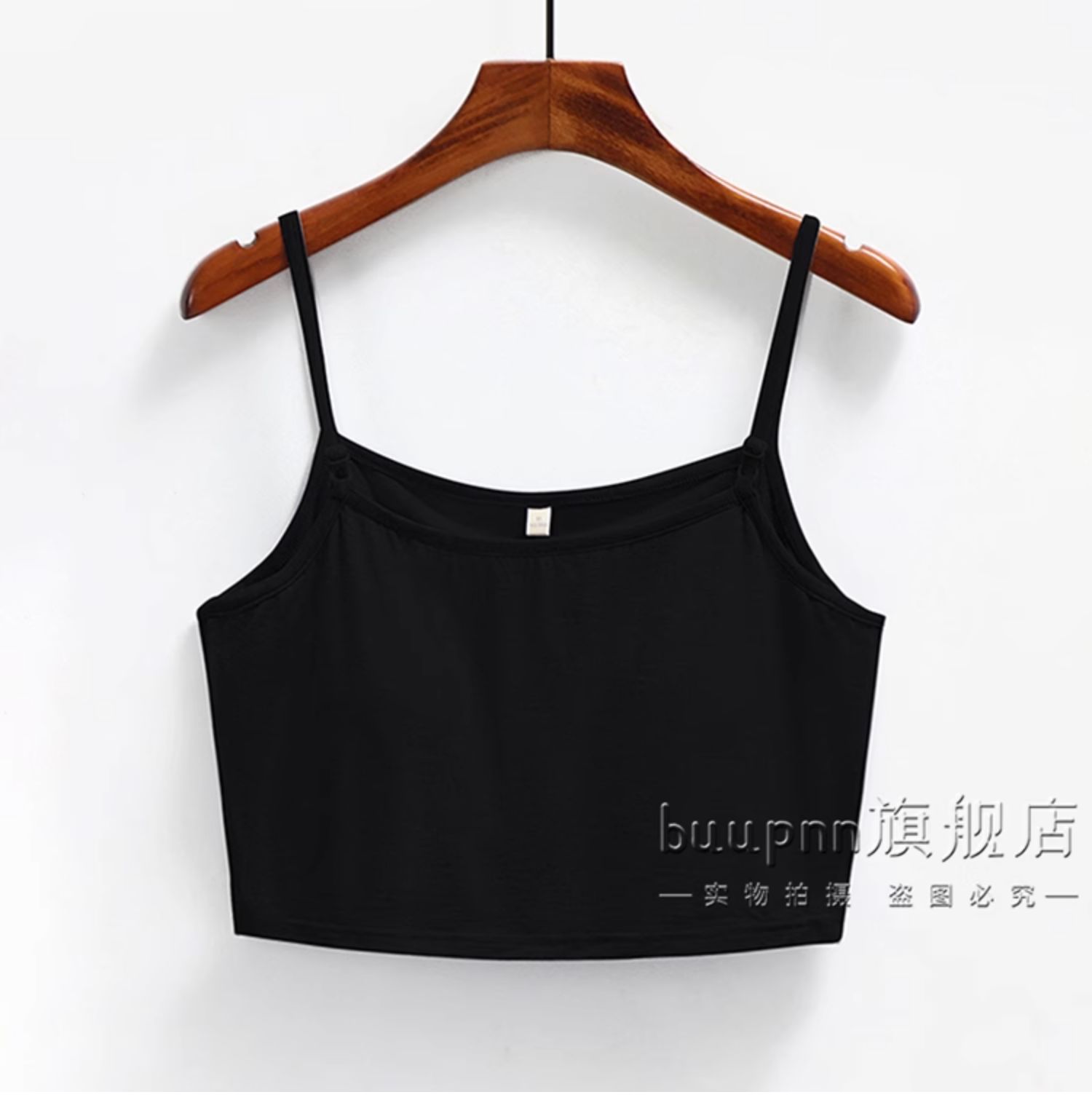 帶胸墊半截吊帶女莫代爾防凸點短款打底背心