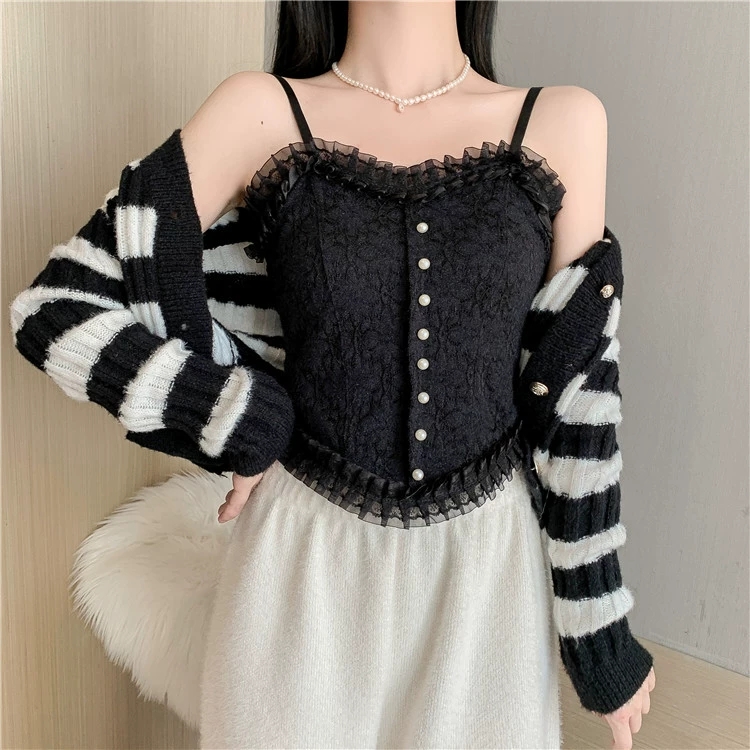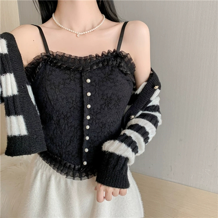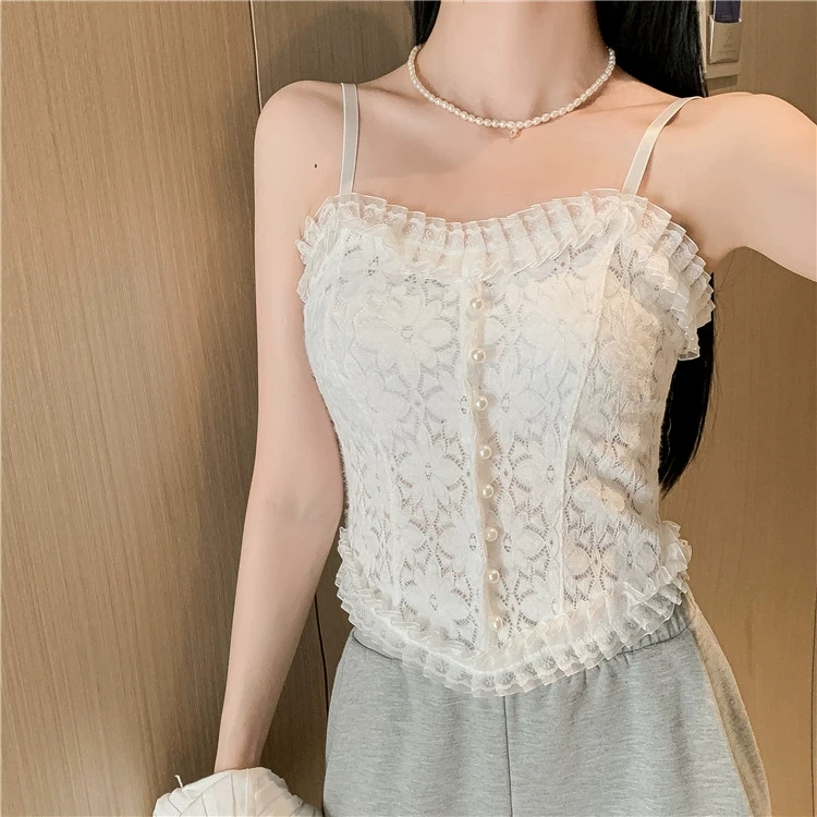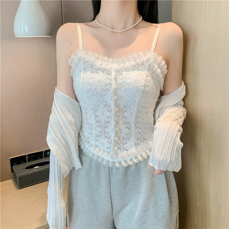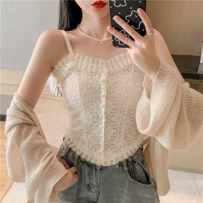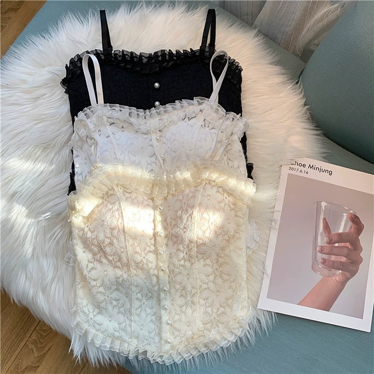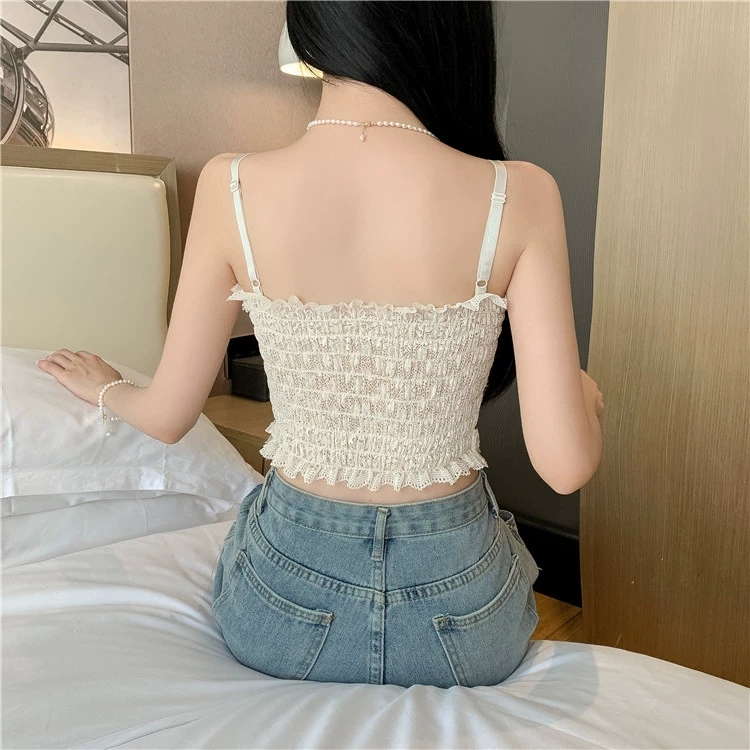 溫柔風蕾絲背心吊帶女春夏季2024年新款設計感帶胸墊外穿短款抹胸