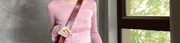 復古粉色針織長袖上衣女2025早秋新款修身內搭打底衫薄款正肩T恤