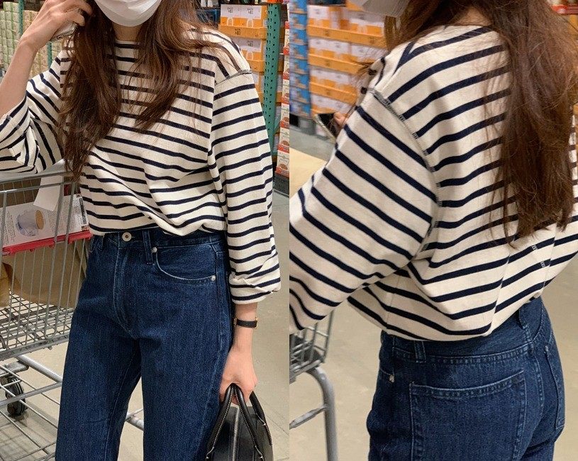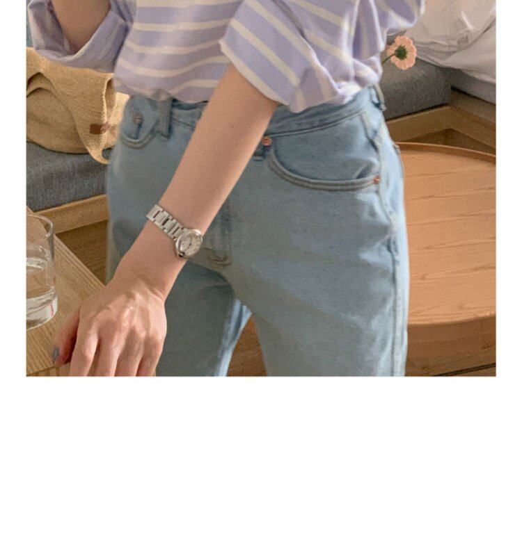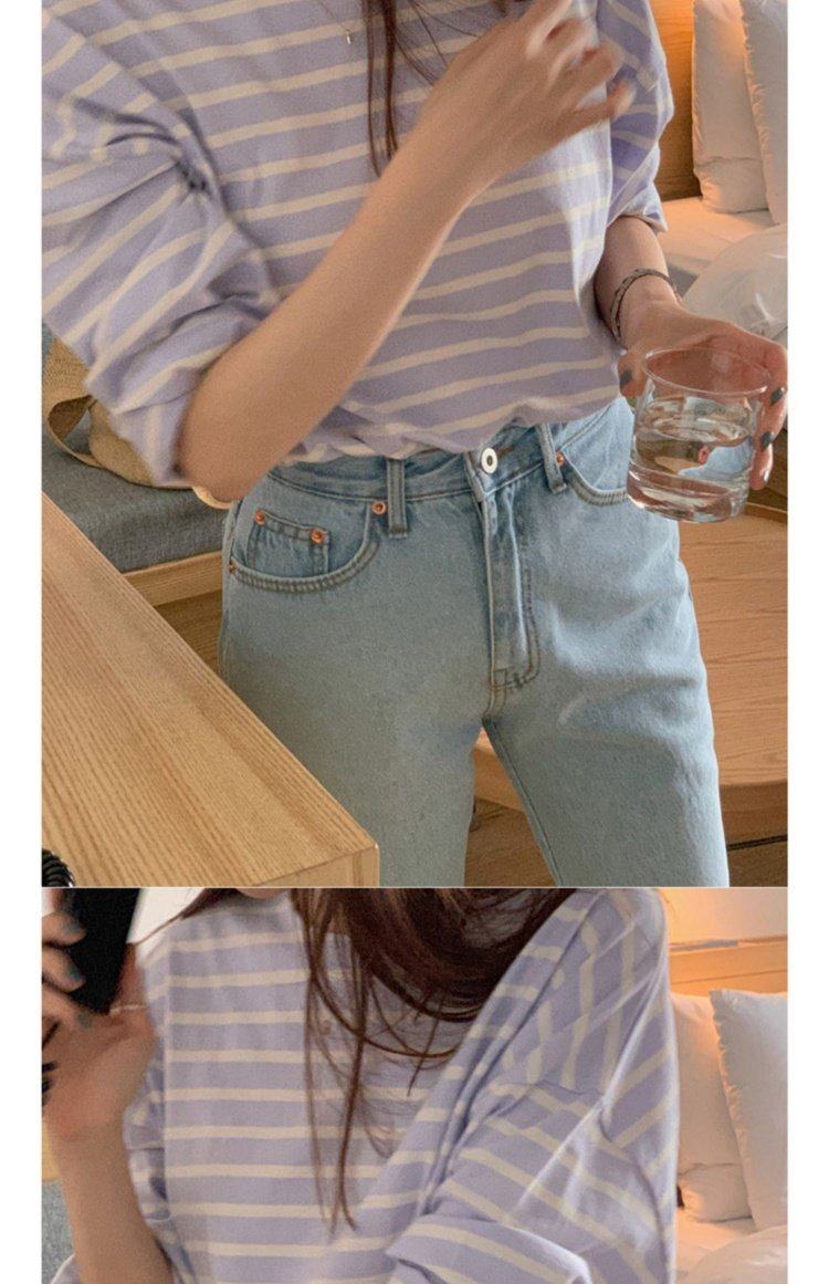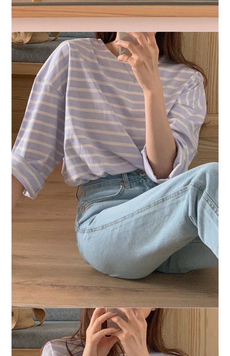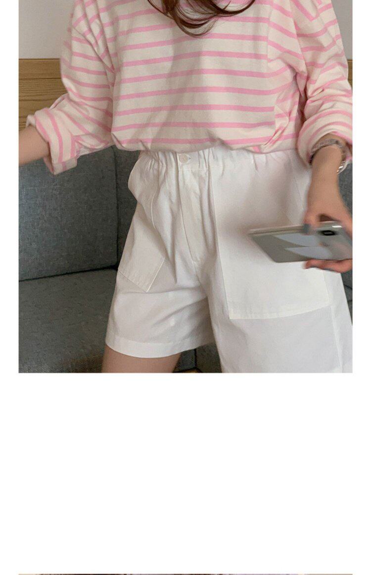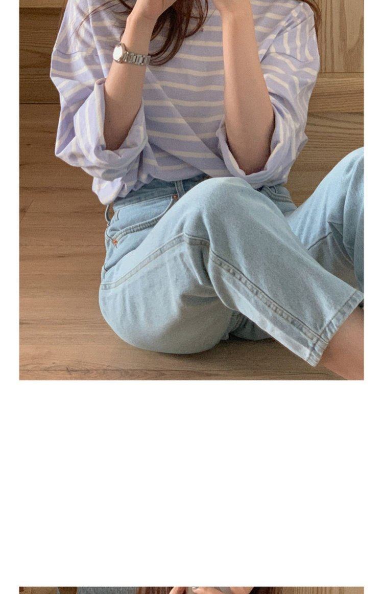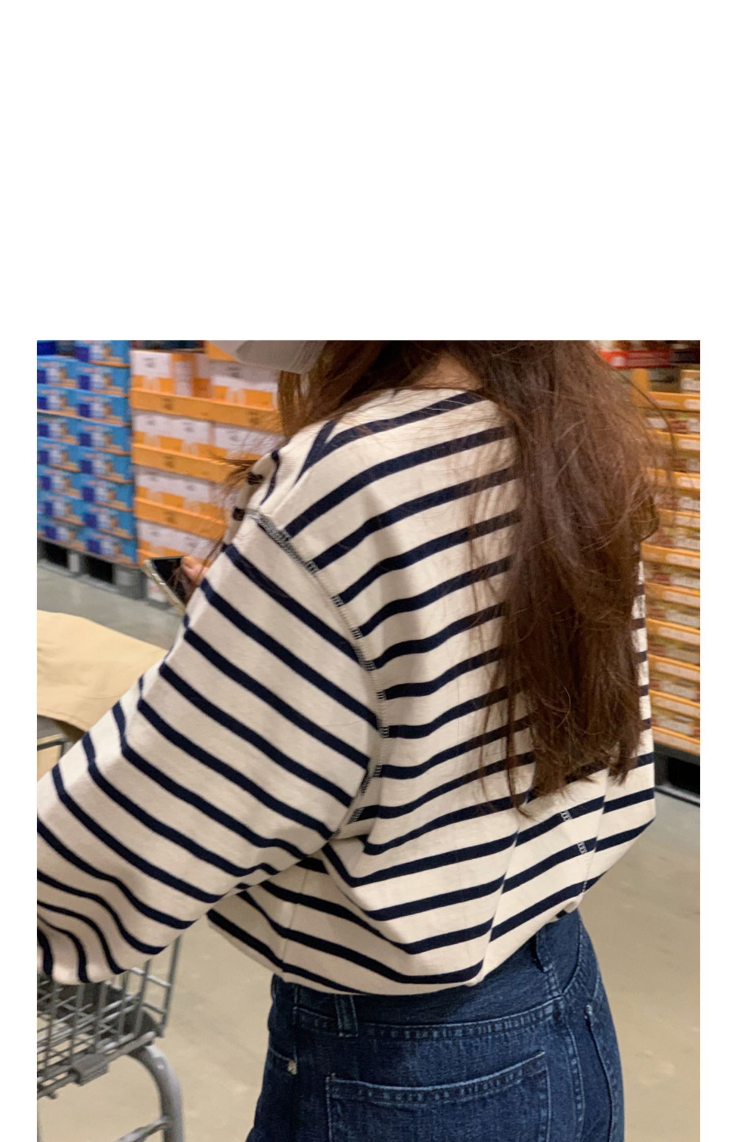 韓版粉色條紋T恤女2025春新款寬鬆長袖休閒長袖打底衫設計感上衣