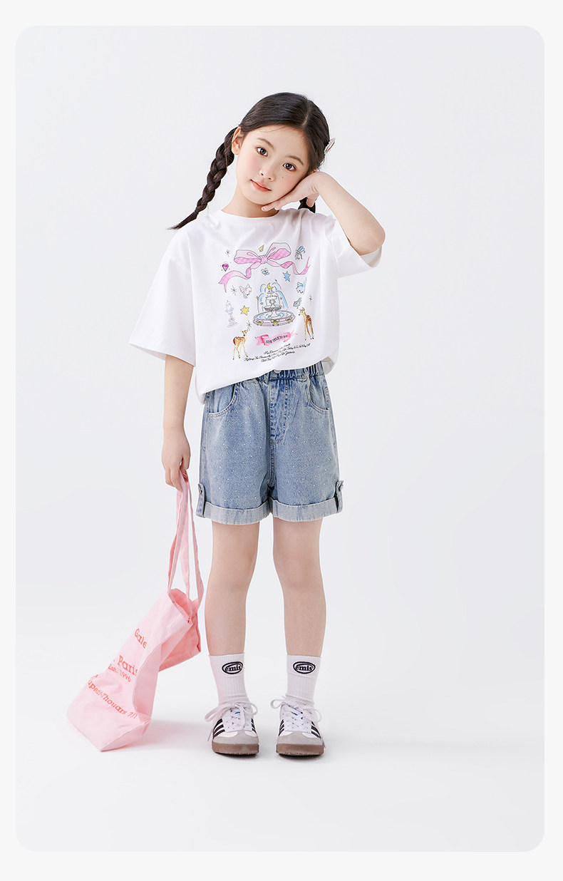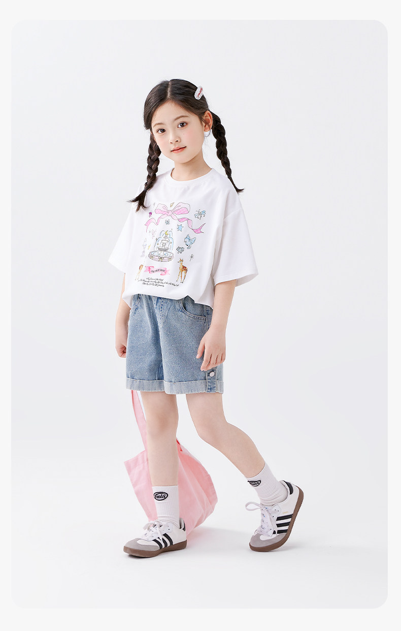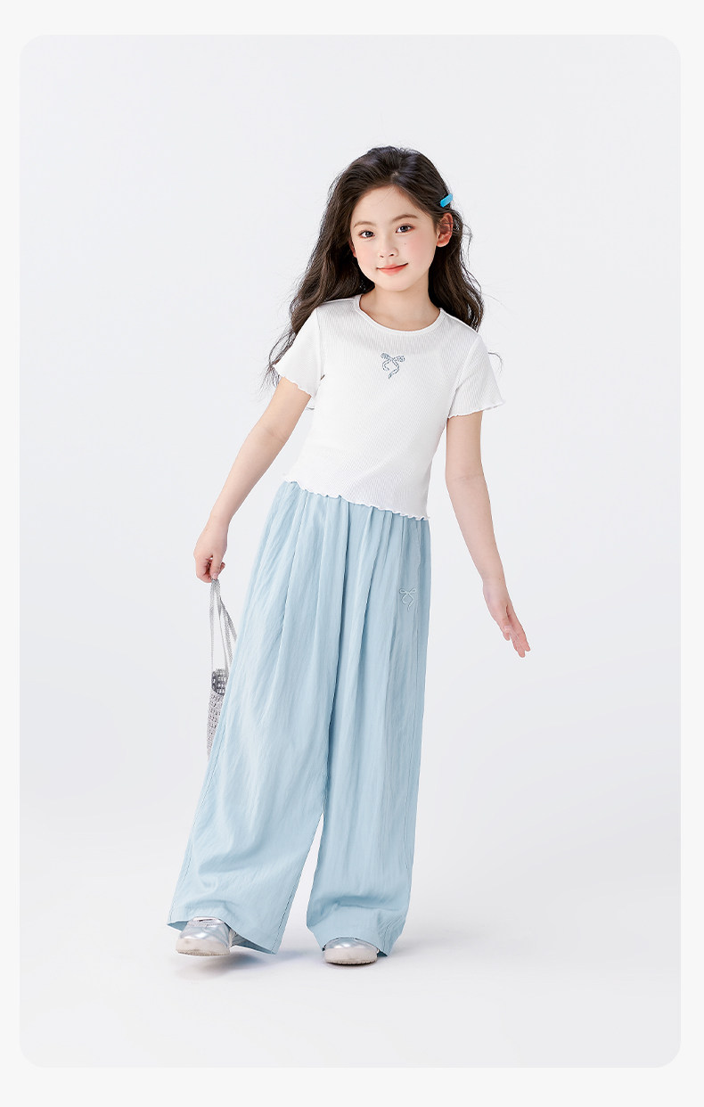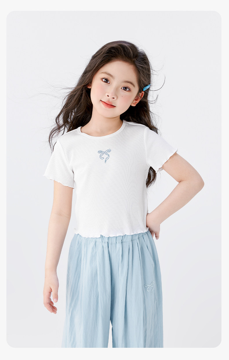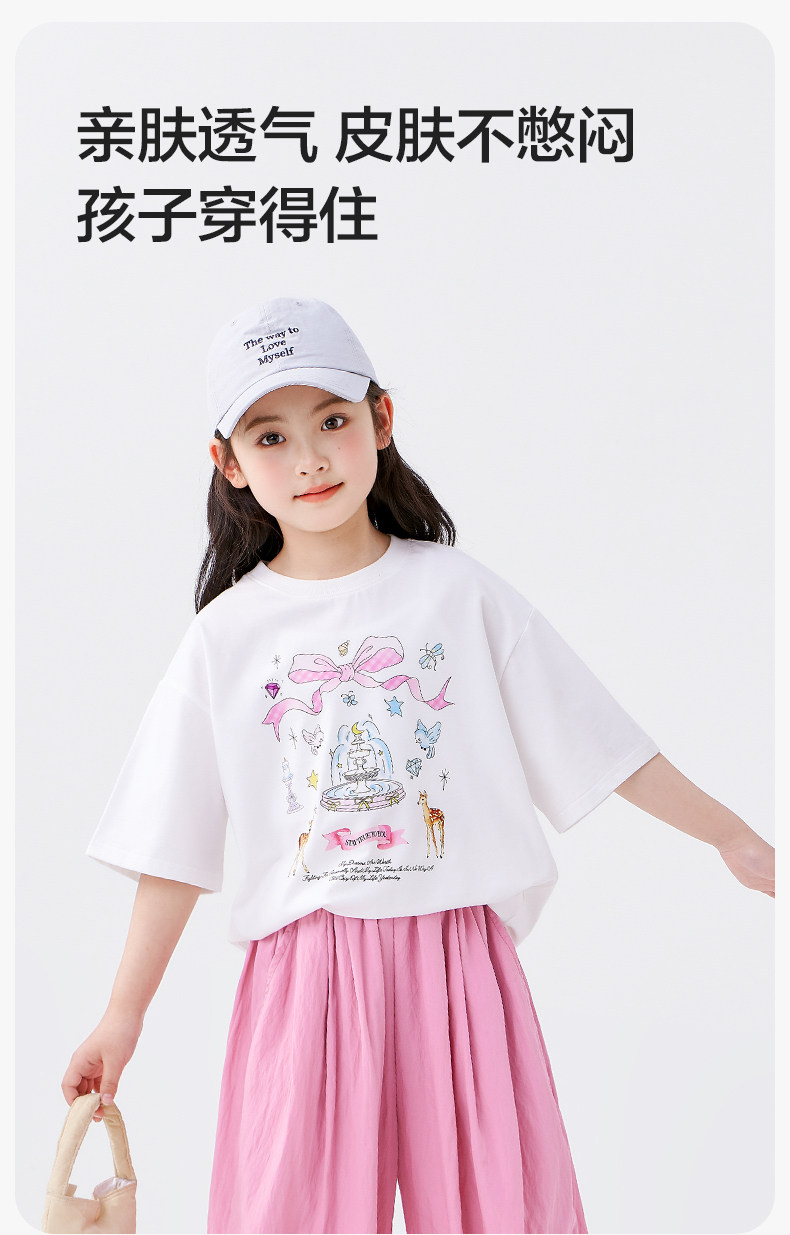 左西童裝女童短袖T恤7A抑菌兒童夏裝2025新款夏季半袖防蚊褲套裝