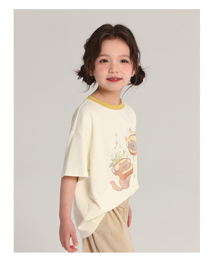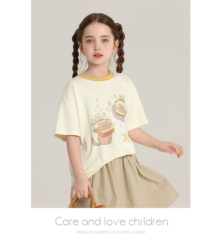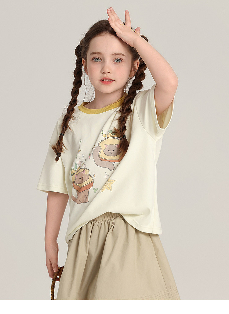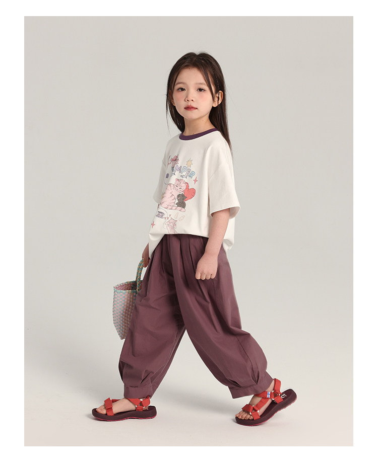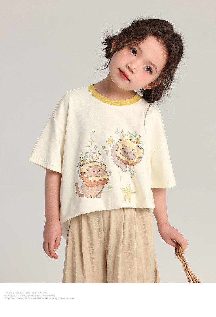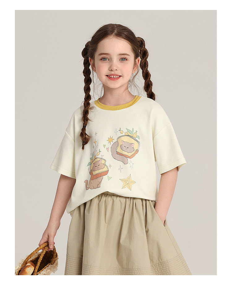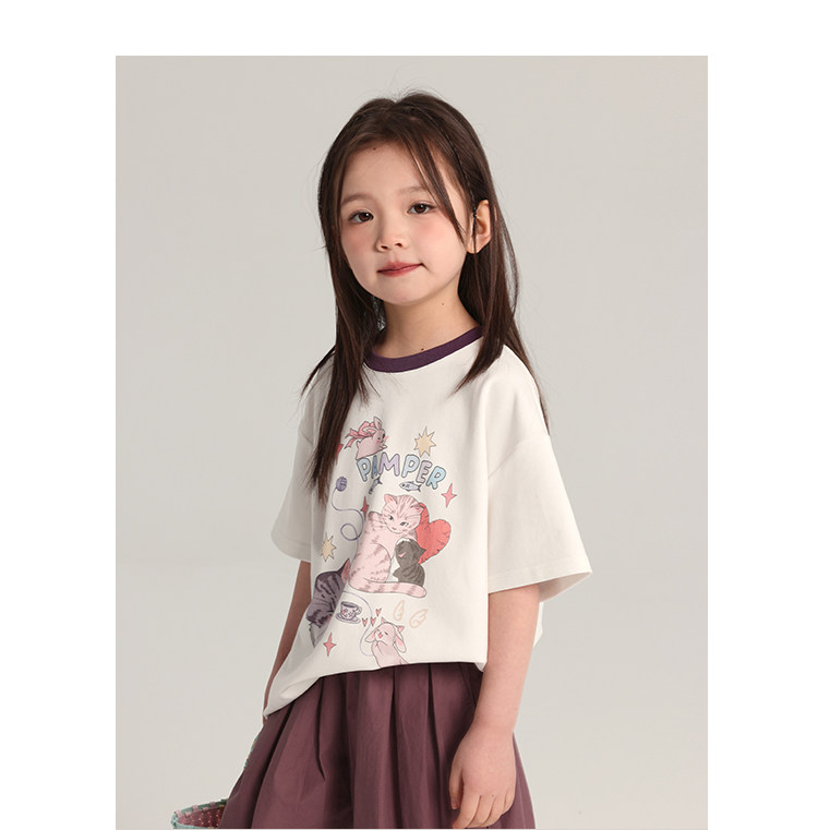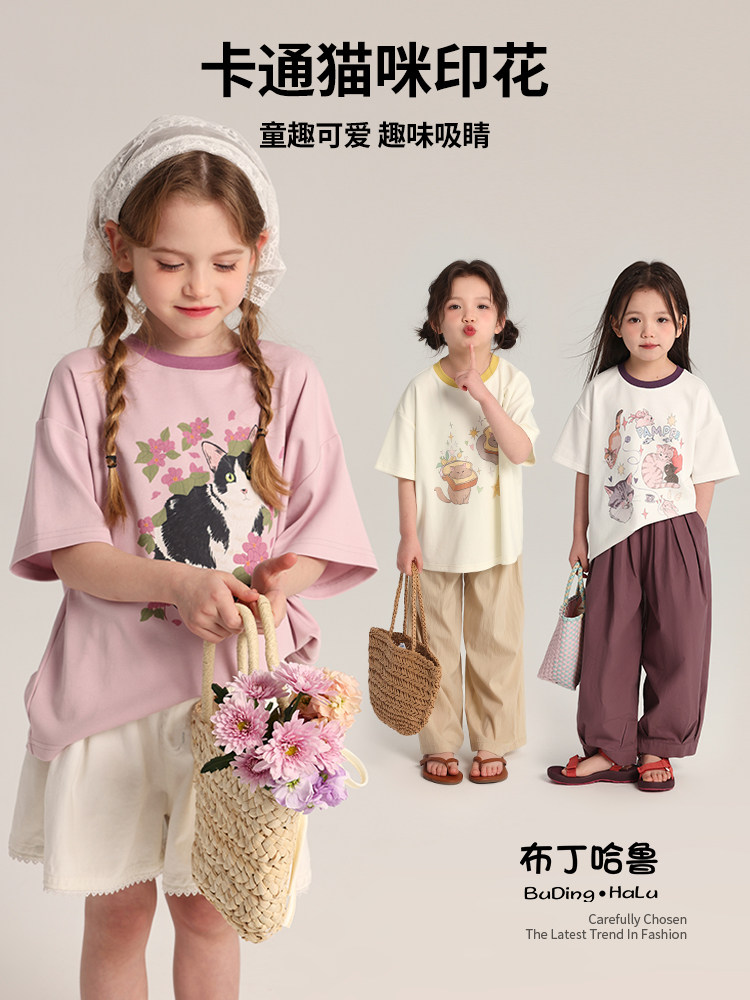 布丁哈魯童裝夏裝女童洋氣短袖2026夏季新款兒童百搭撞色卡通T恤