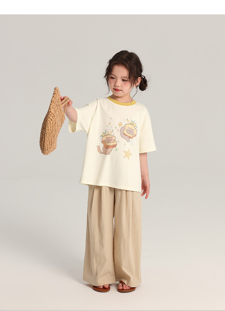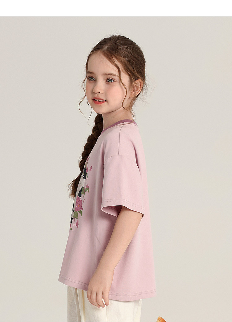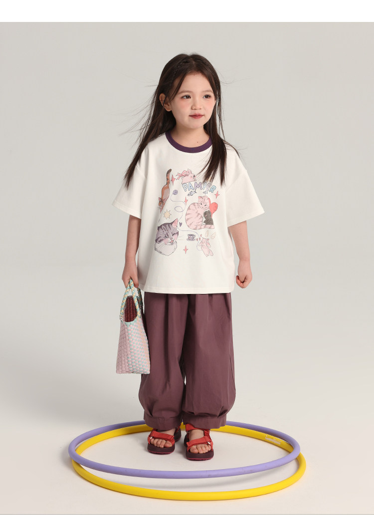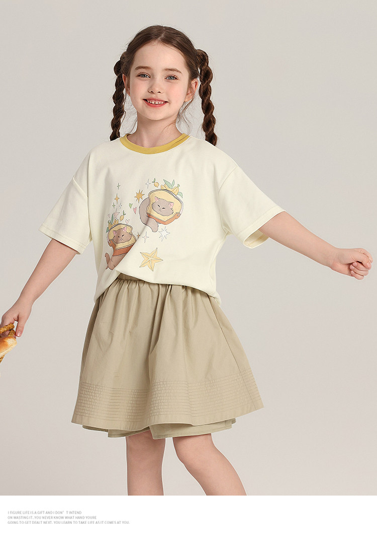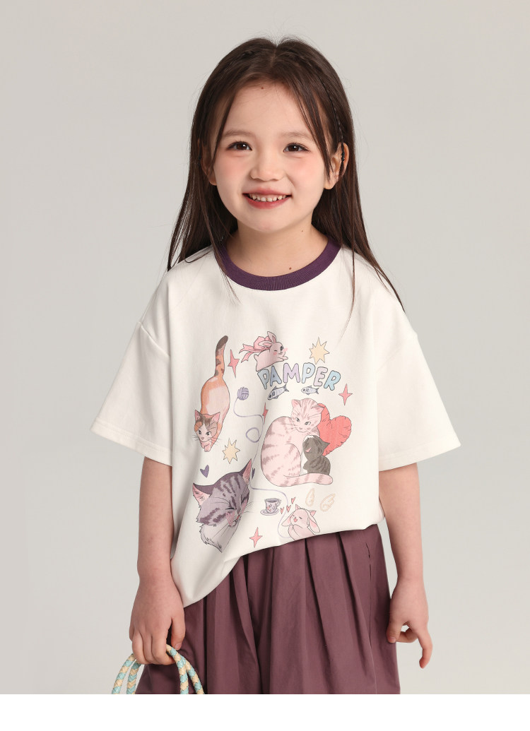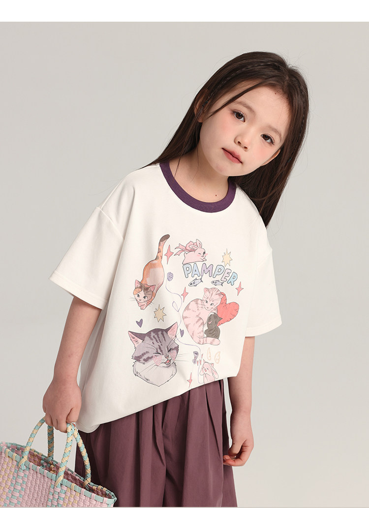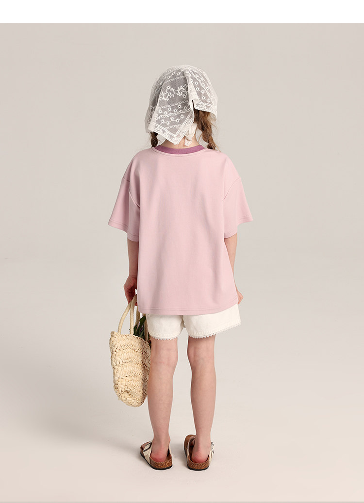 布丁哈魯童裝夏裝女童洋氣短袖2026夏季新款兒童百搭撞色卡通T恤