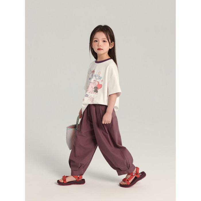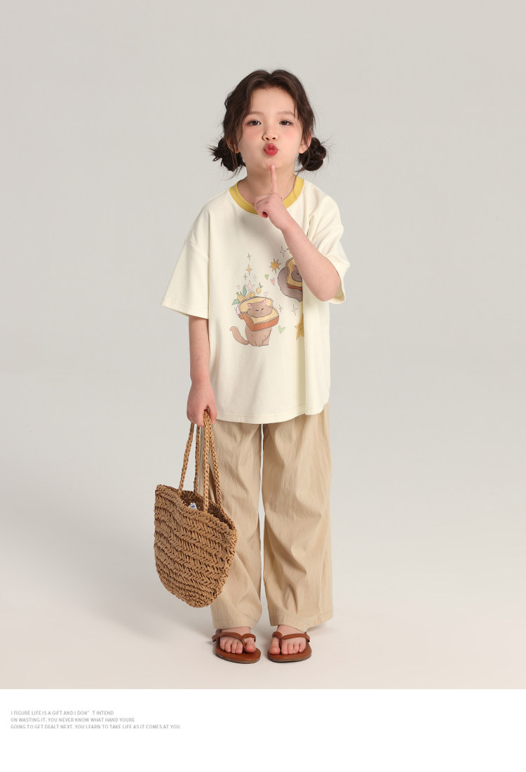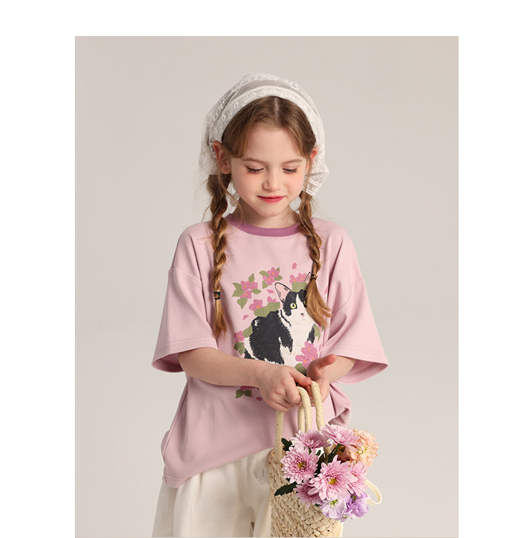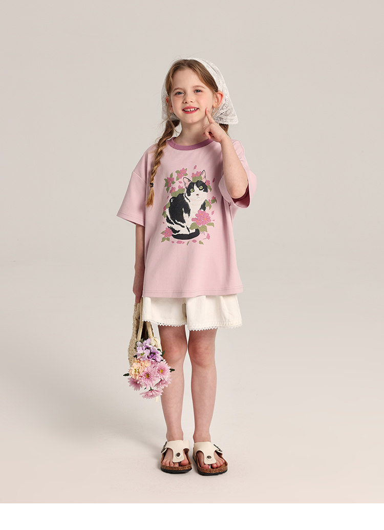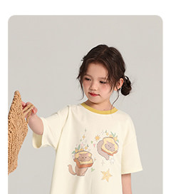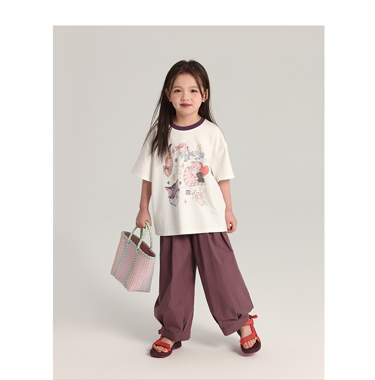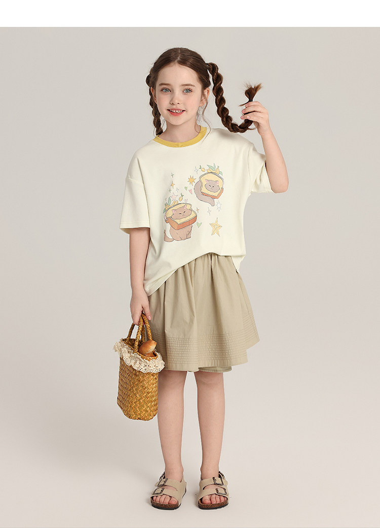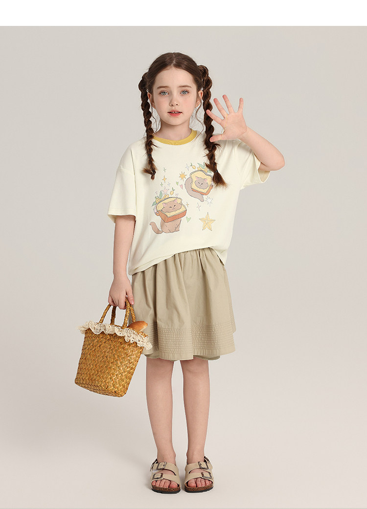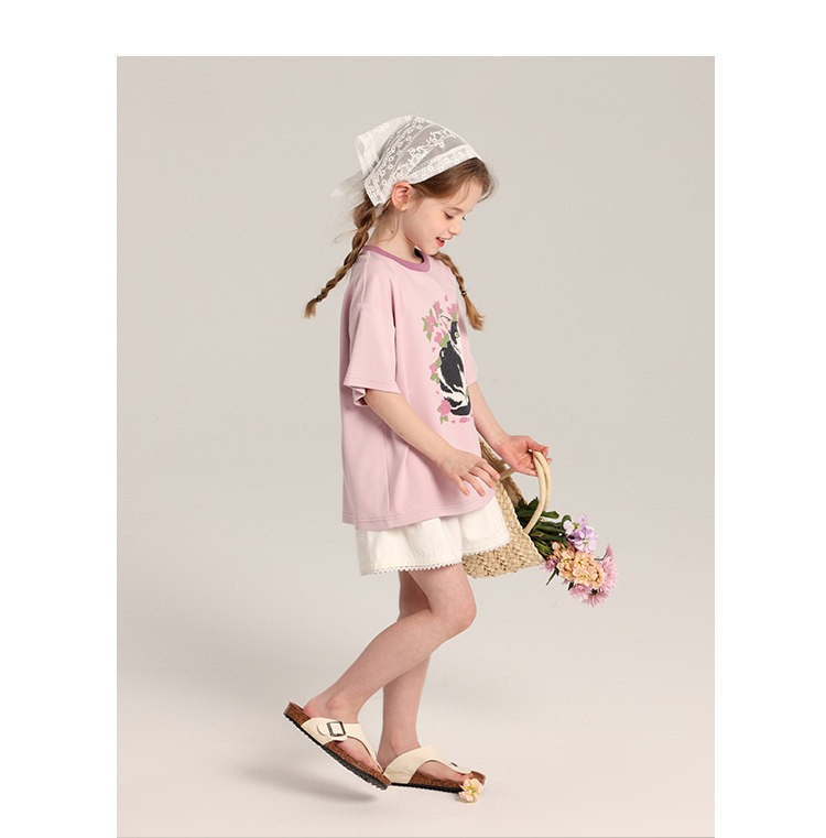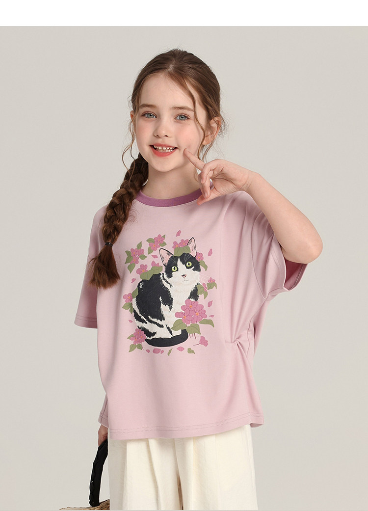 布丁哈魯童裝夏裝女童洋氣短袖2026夏季新款兒童百搭撞色卡通T恤