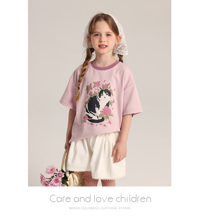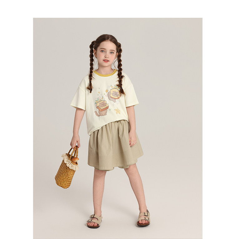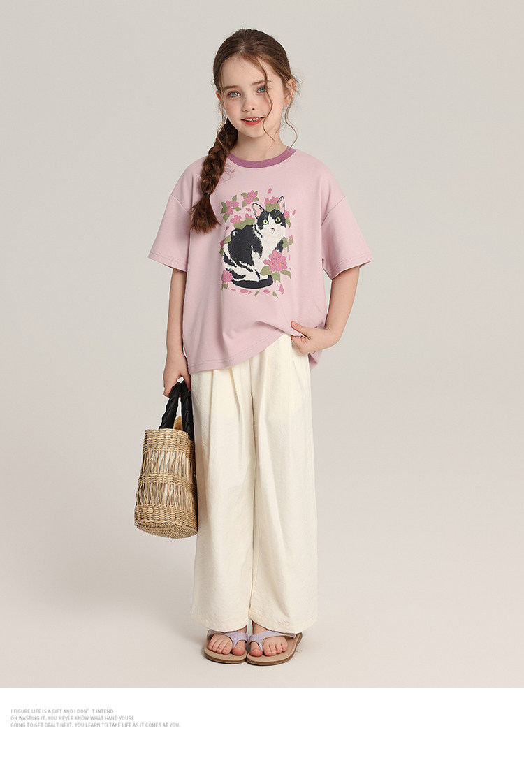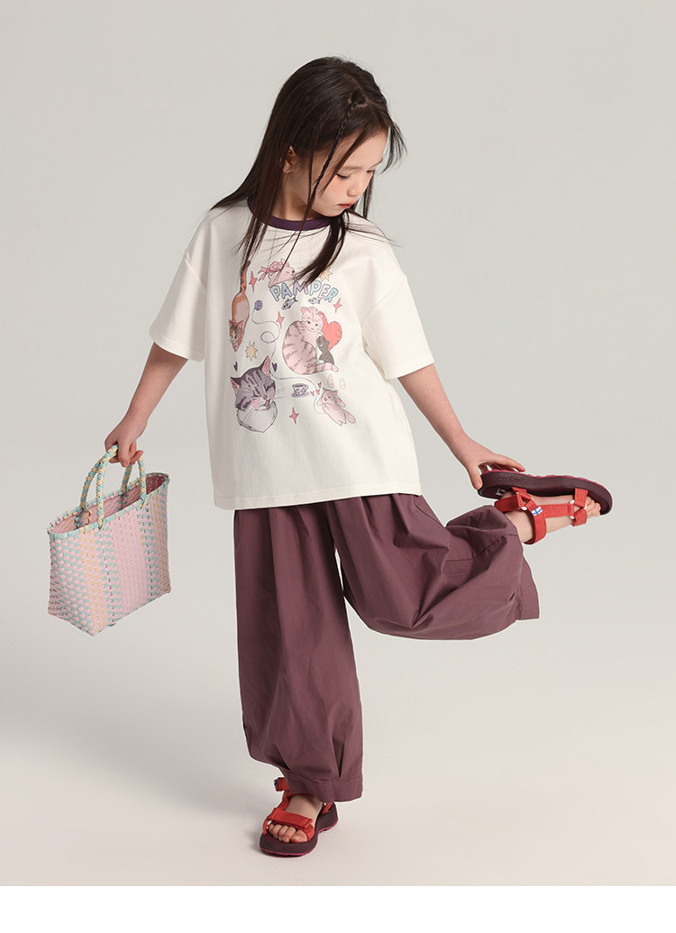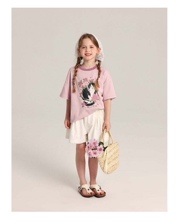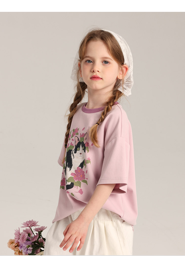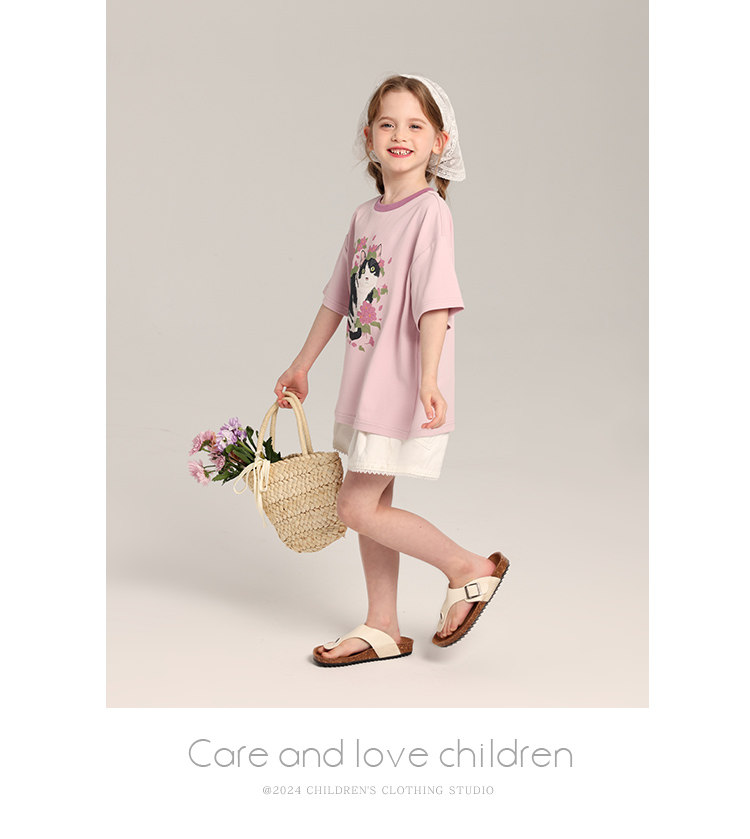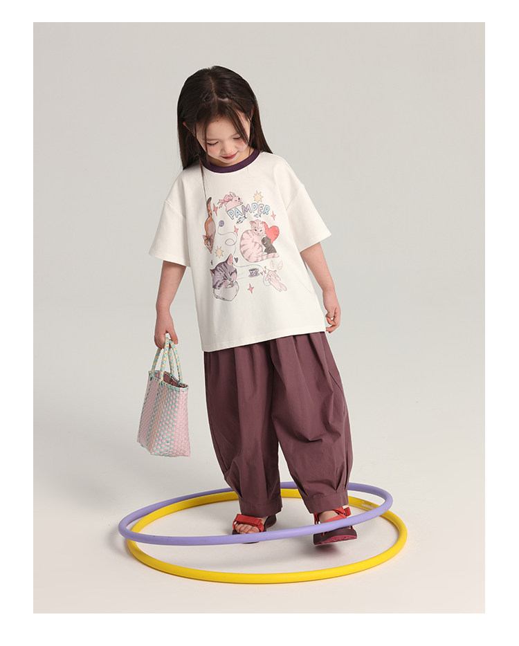 布丁哈魯童裝夏裝女童洋氣短袖2026夏季新款兒童百搭撞色卡通T恤