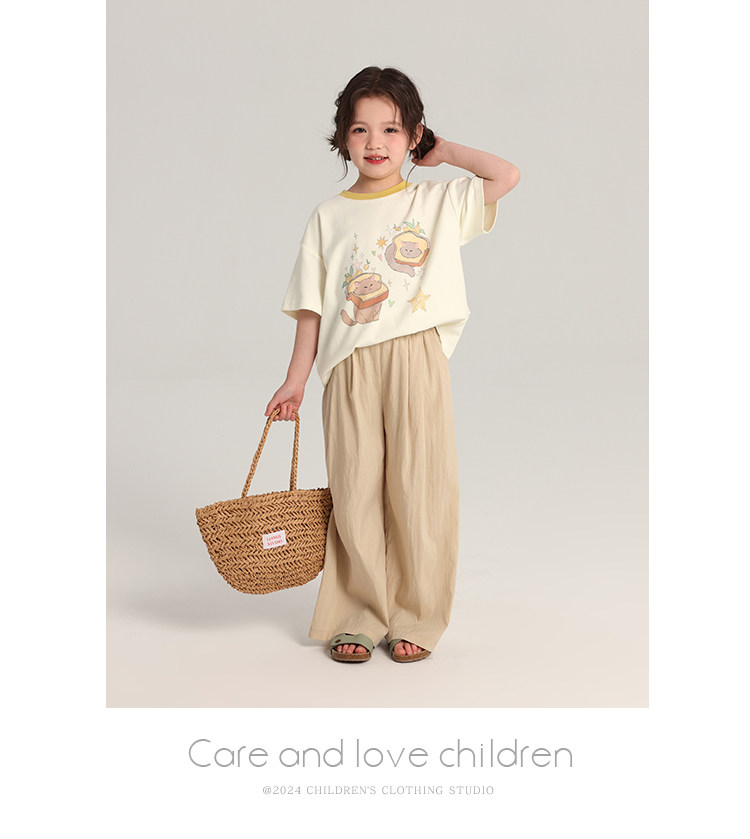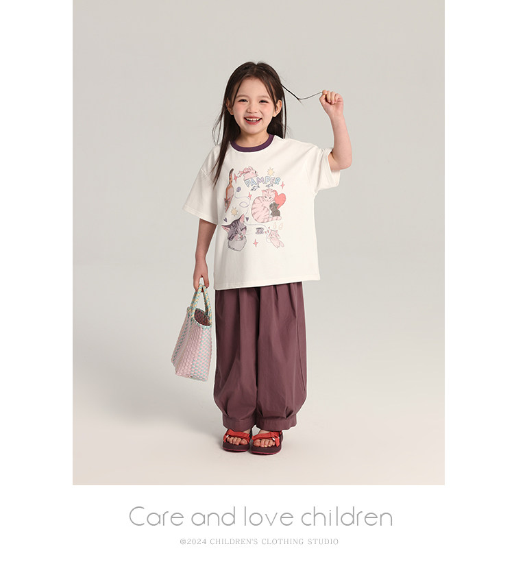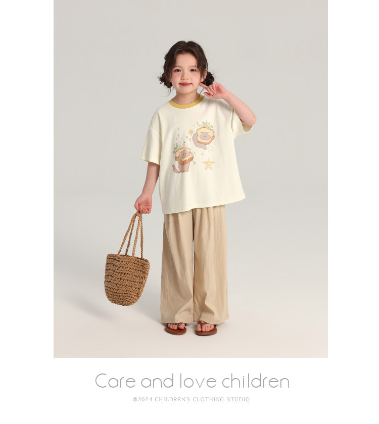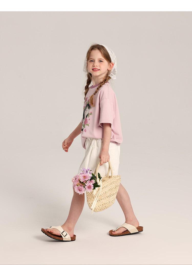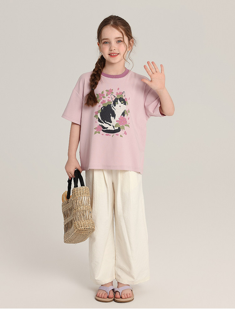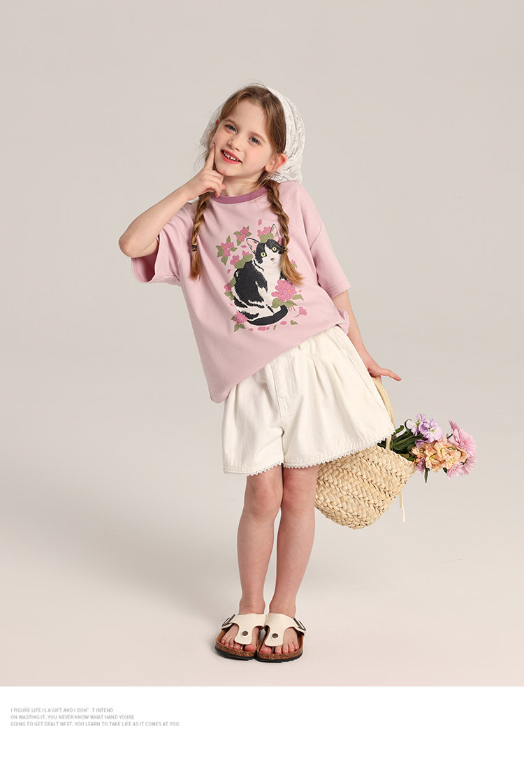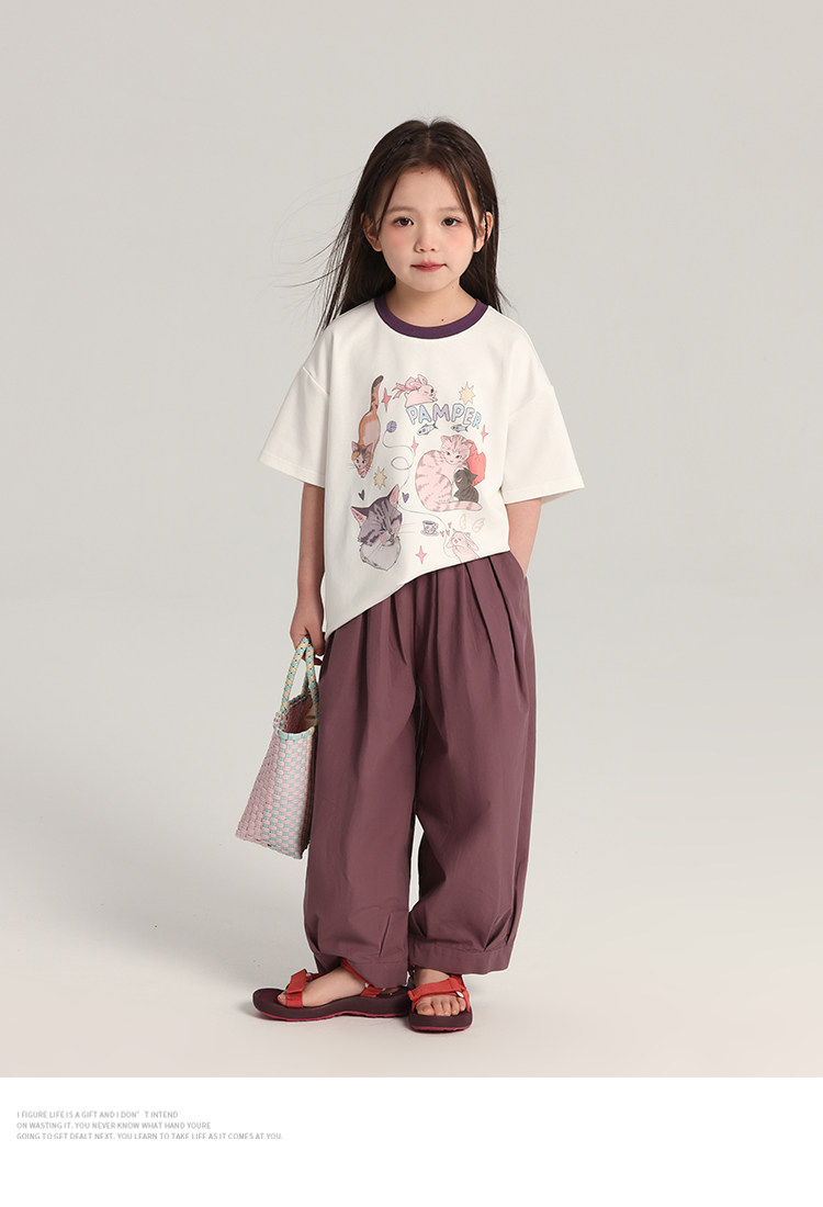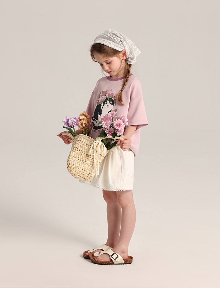 布丁哈魯童裝夏裝女童洋氣短袖2026夏季新款兒童百搭撞色卡通T恤