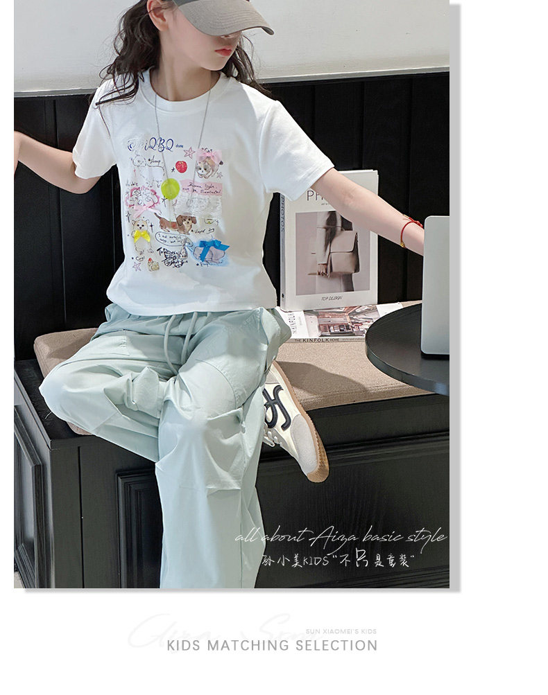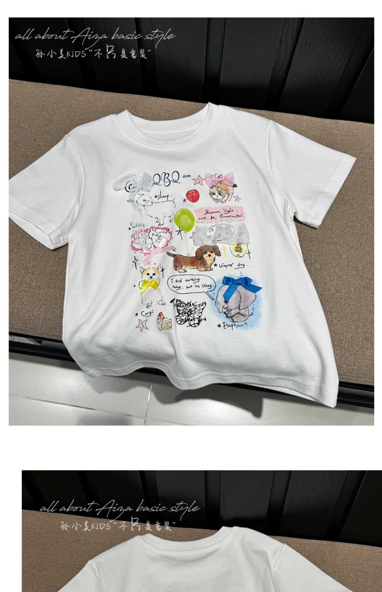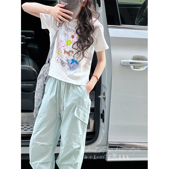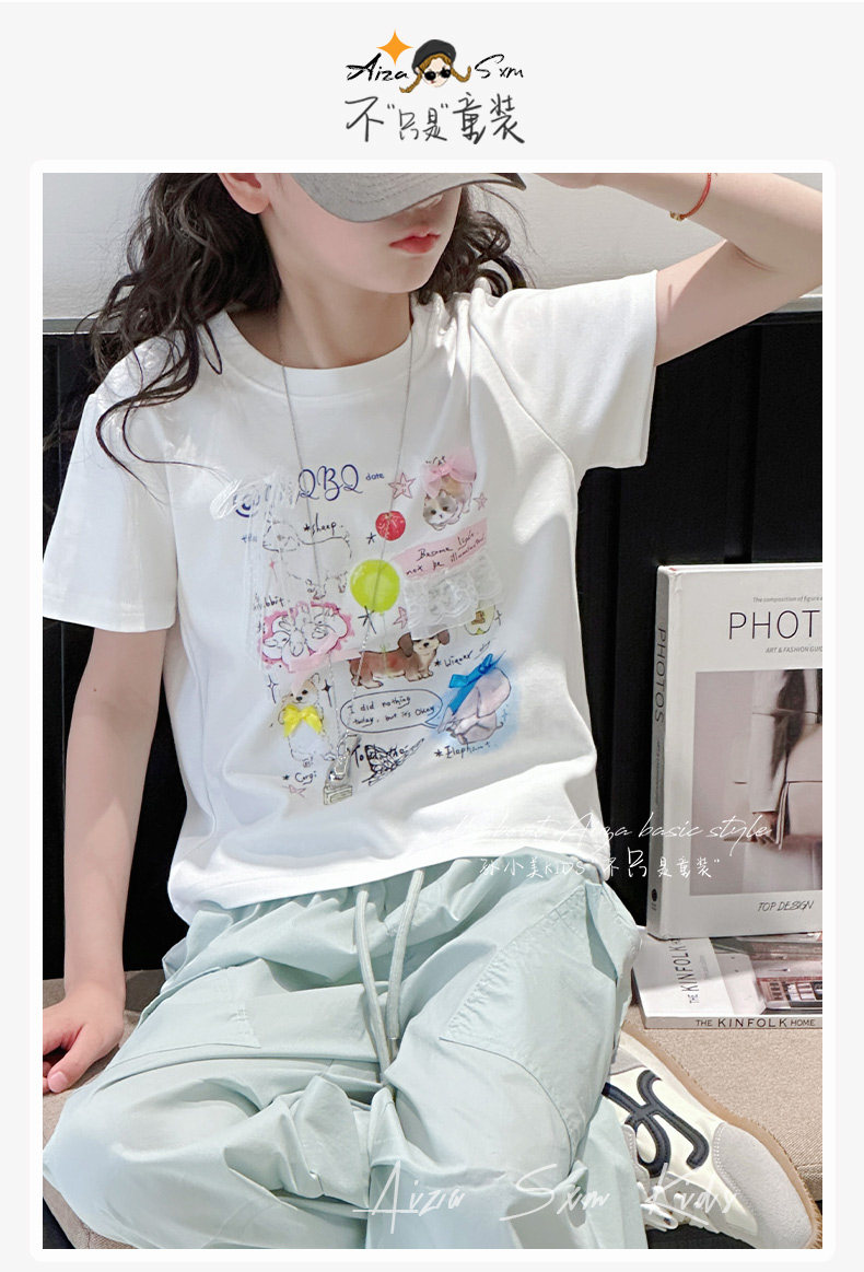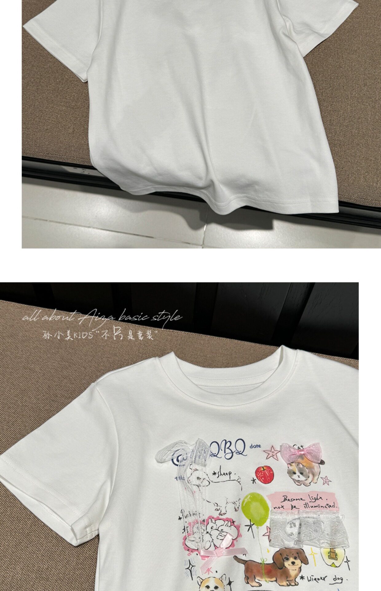 孫小美kids 飄帶蝴蝶結女童短袖T恤2025新款夏裝兒童短款上衣半袖