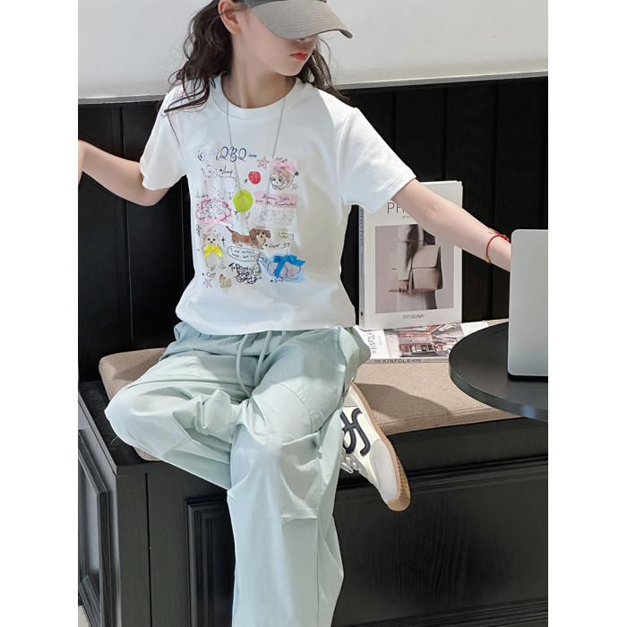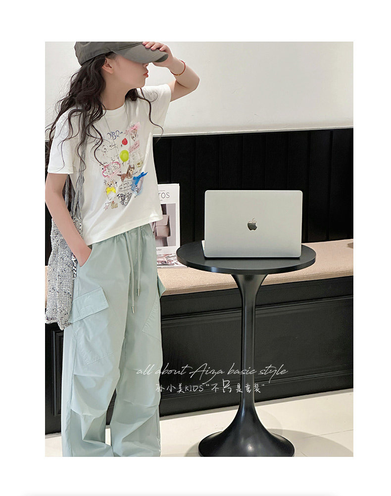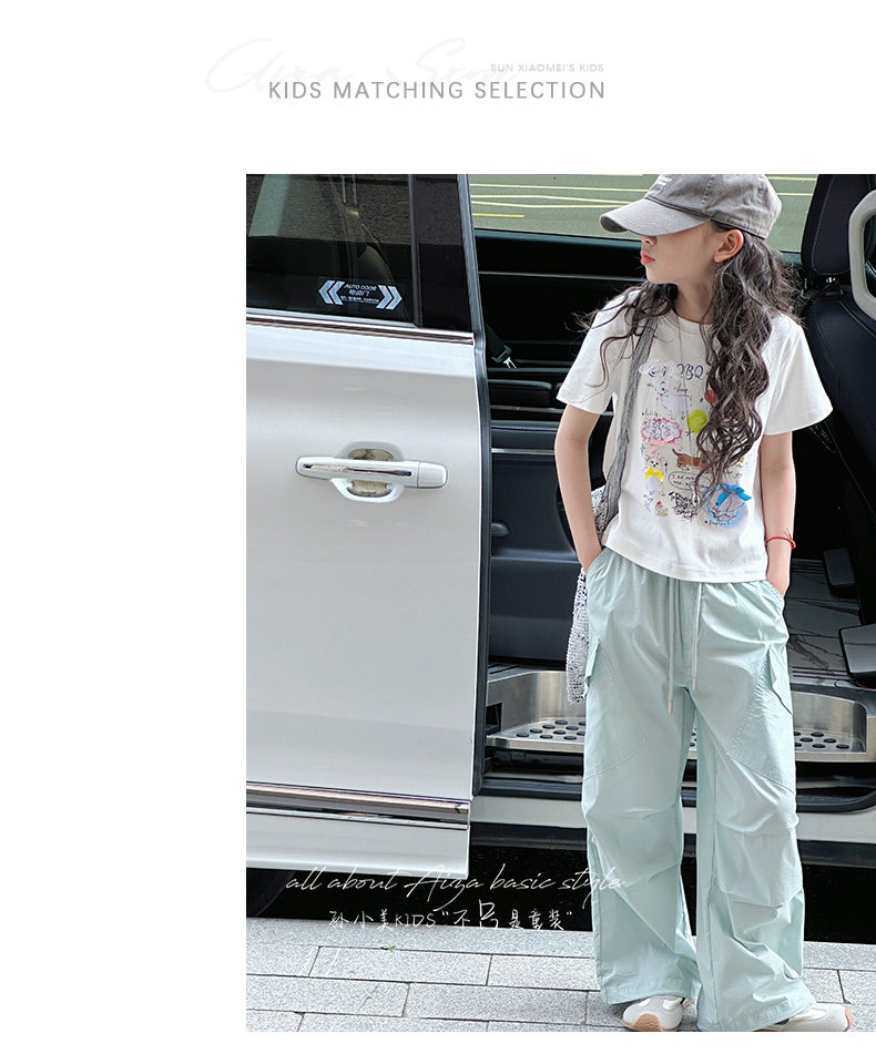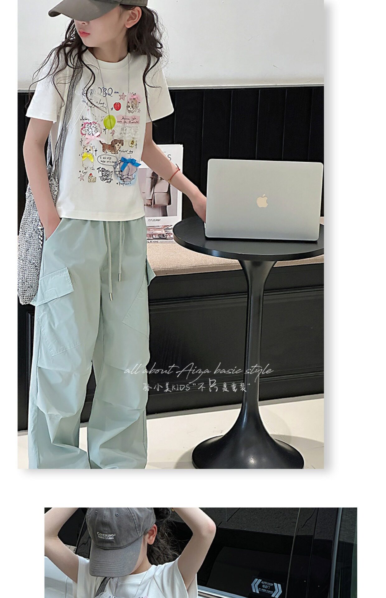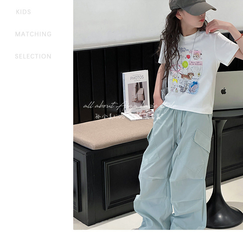 孫小美kids 飄帶蝴蝶結女童短袖T恤2025新款夏裝兒童短款上衣半袖