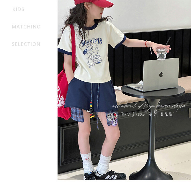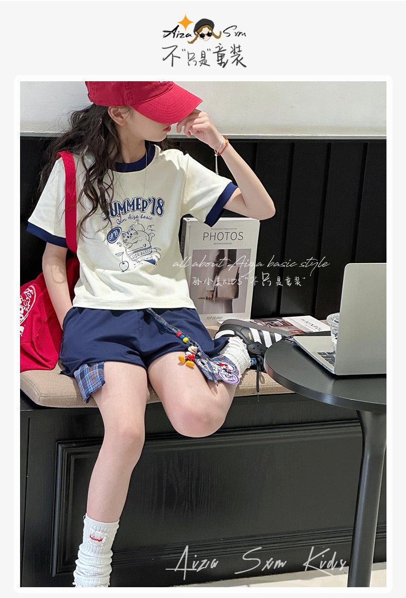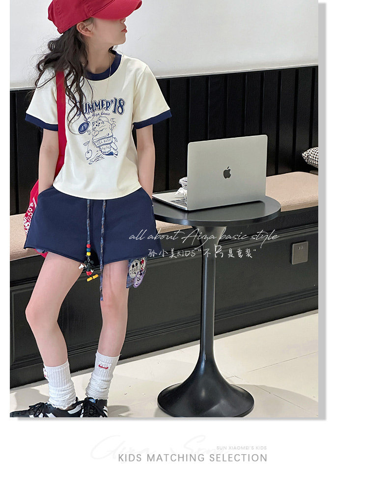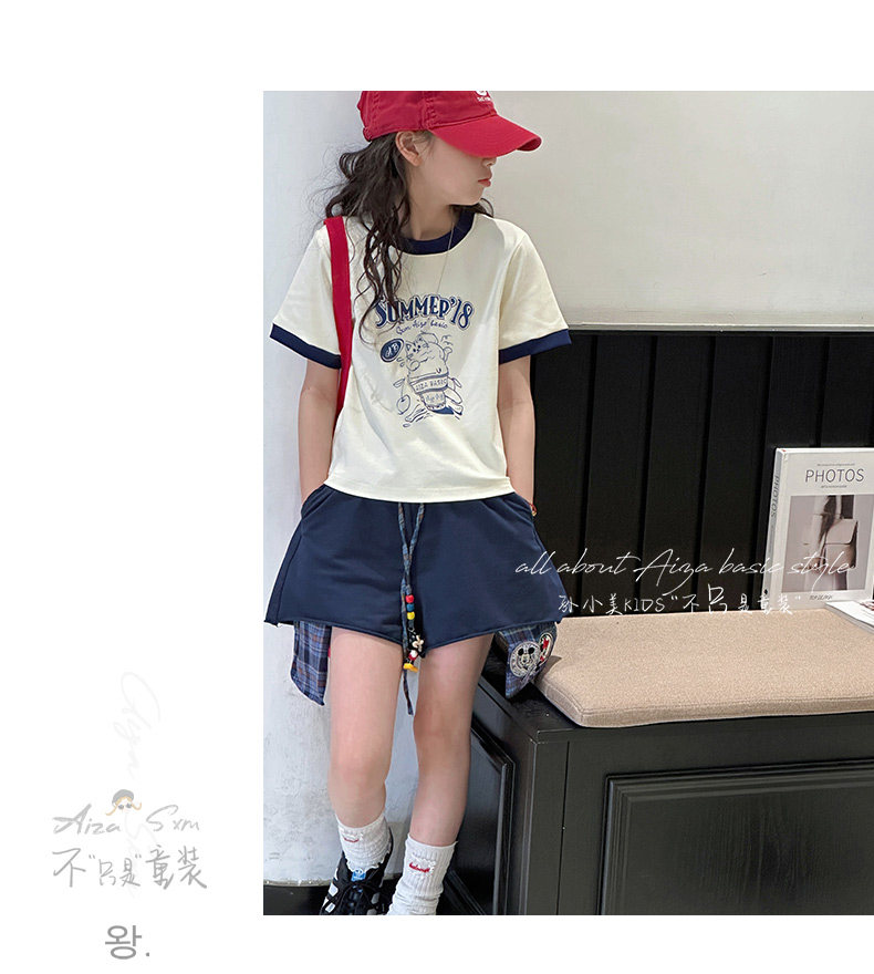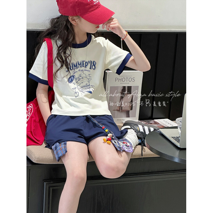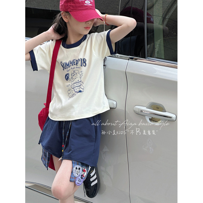 孫小美kids 拼色女童短袖T恤夏裝兒童上衣2025新款大童修身衣服t