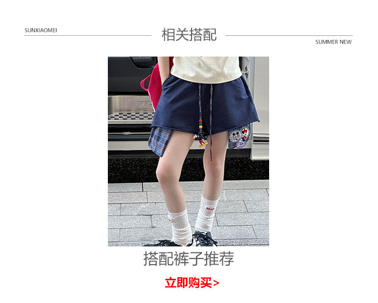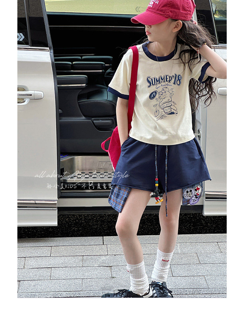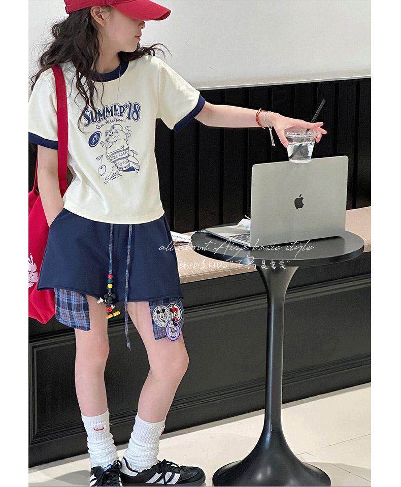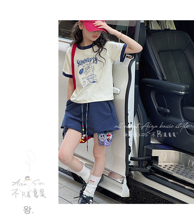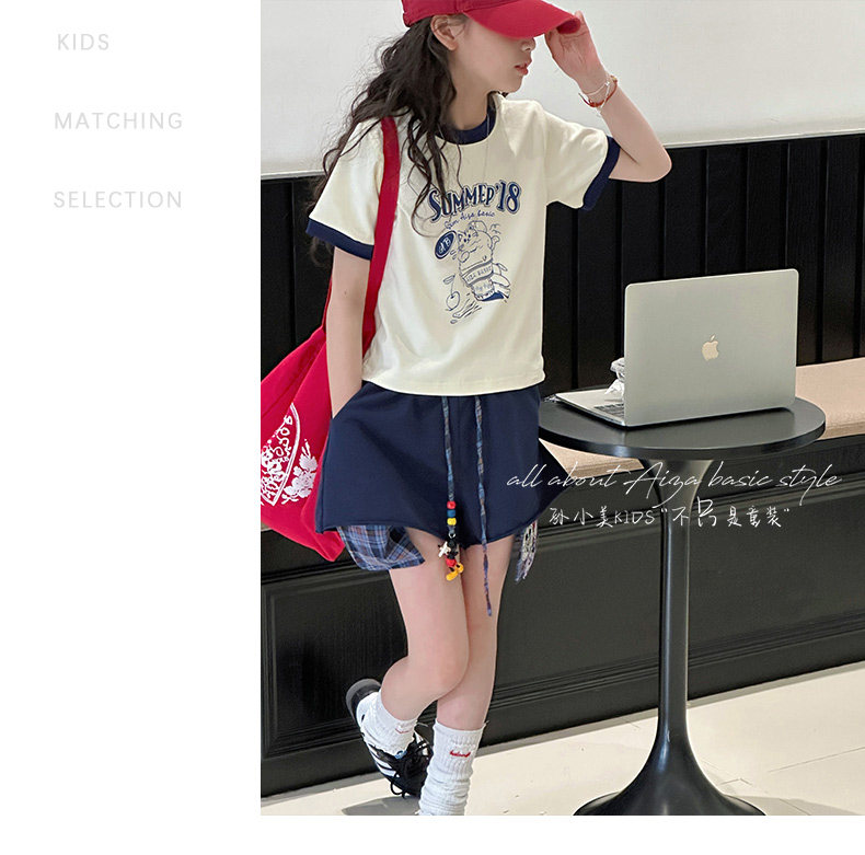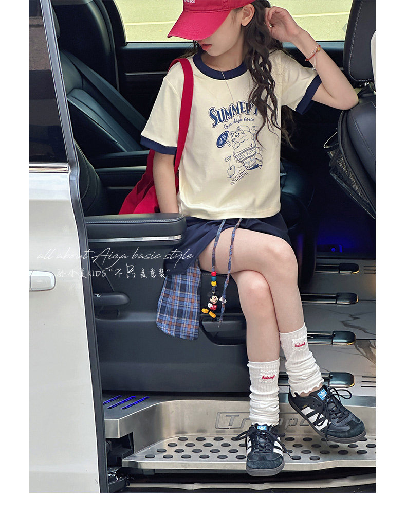 孫小美kids 拼色女童短袖T恤夏裝兒童上衣2025新款大童修身衣服t