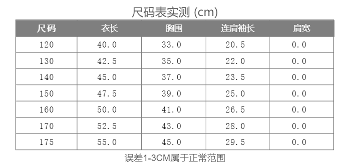 款式及尺寸: