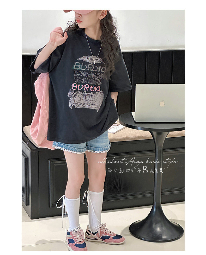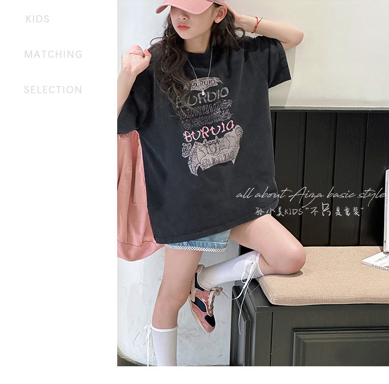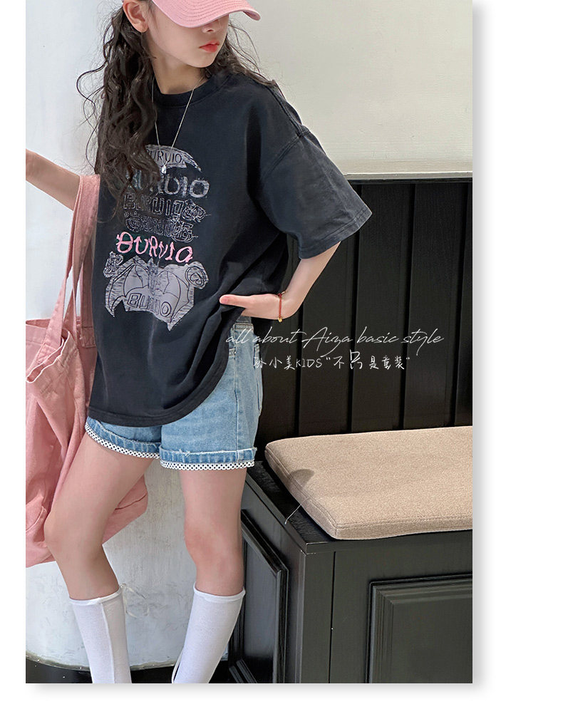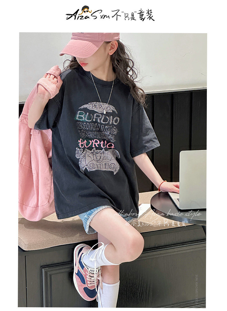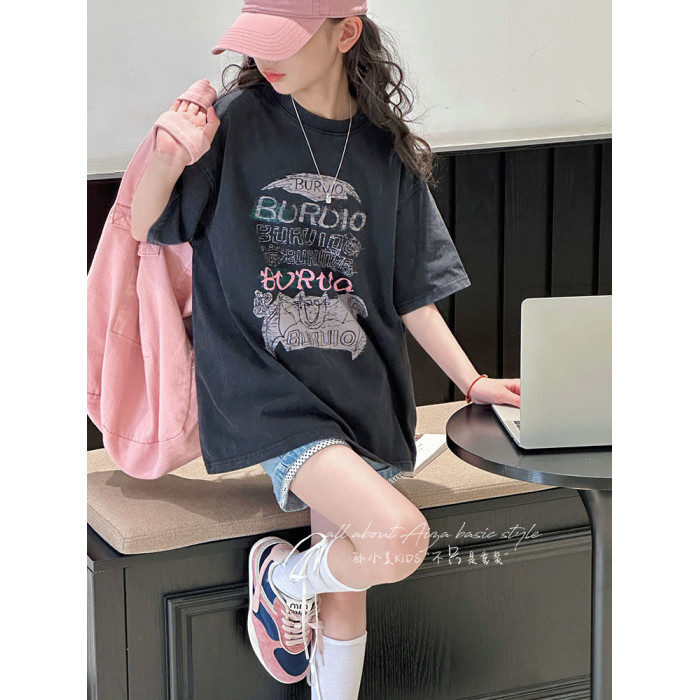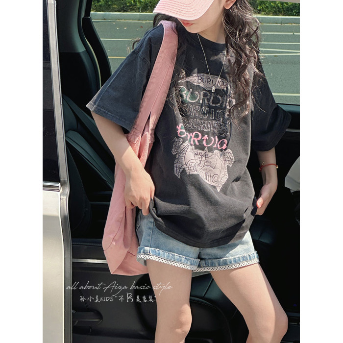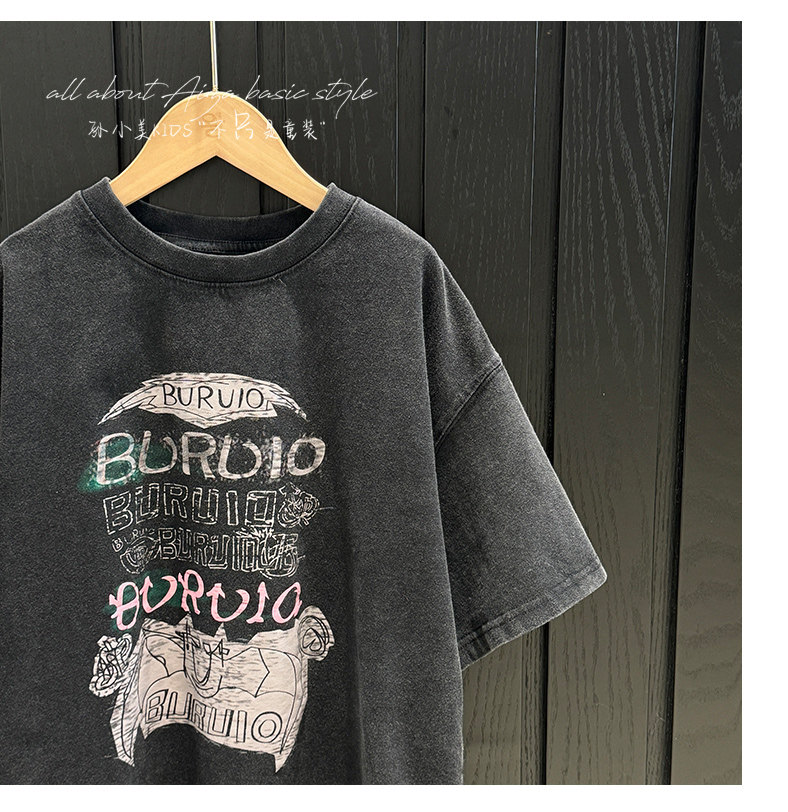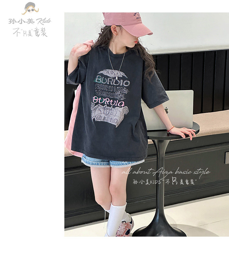 孫小美kids 磨損塗鴉女童短袖T恤兒童上衣2025新款夏裝大童半袖t