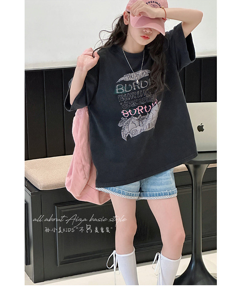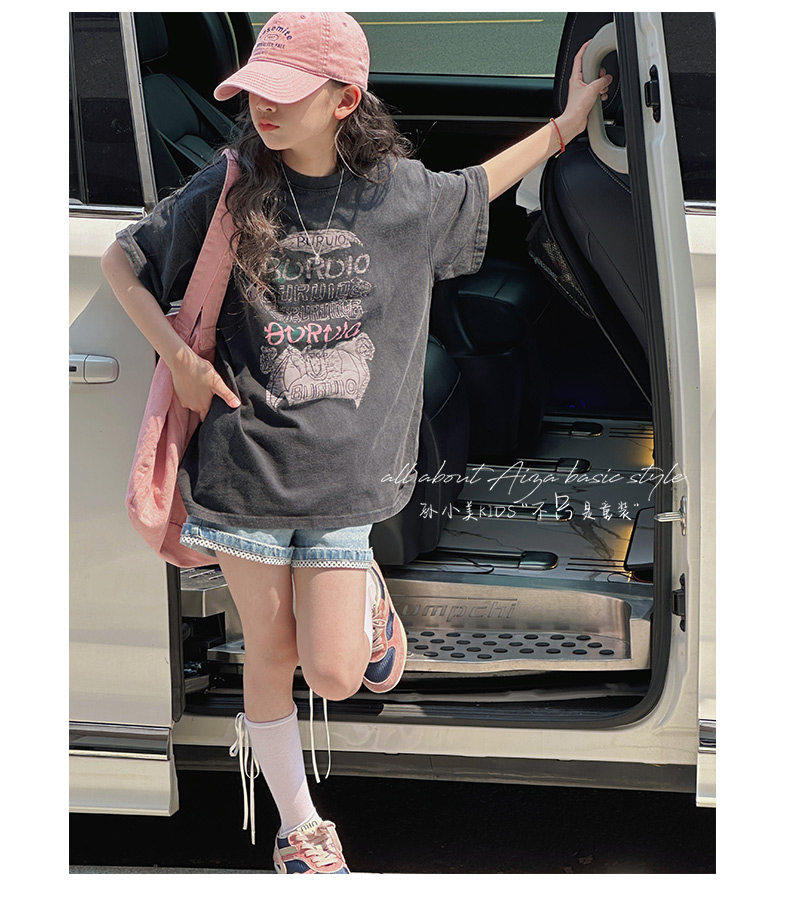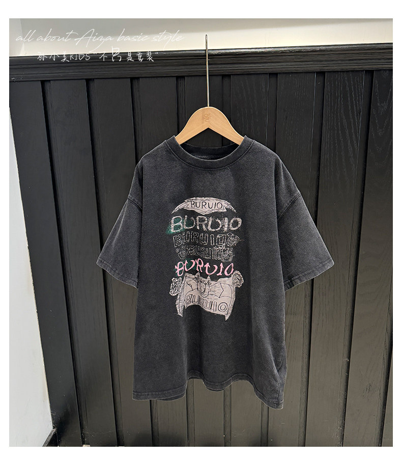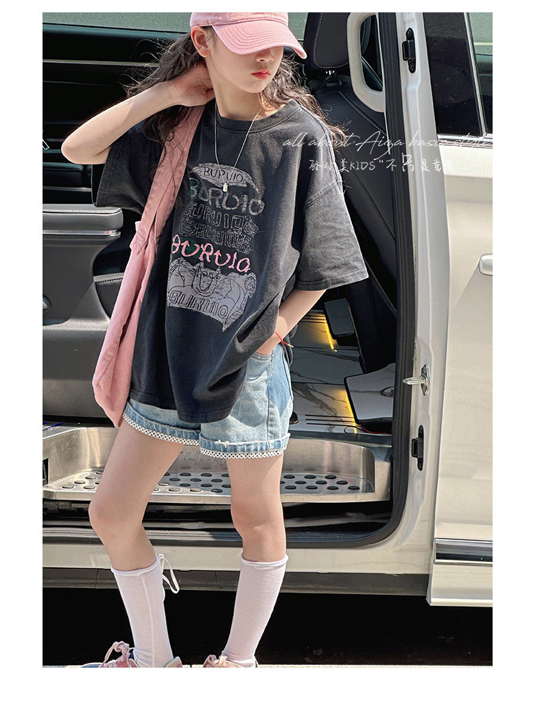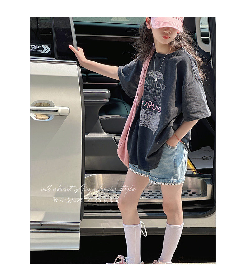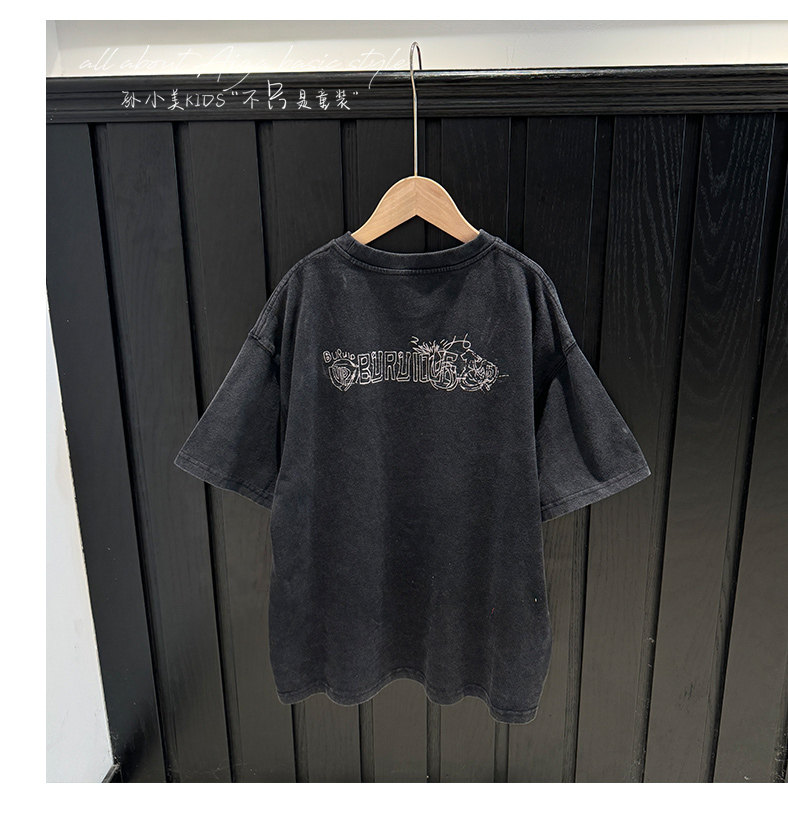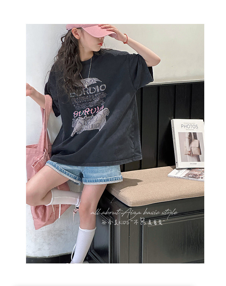 孫小美kids 磨損塗鴉女童短袖T恤兒童上衣2025新款夏裝大童半袖t