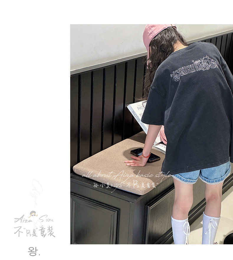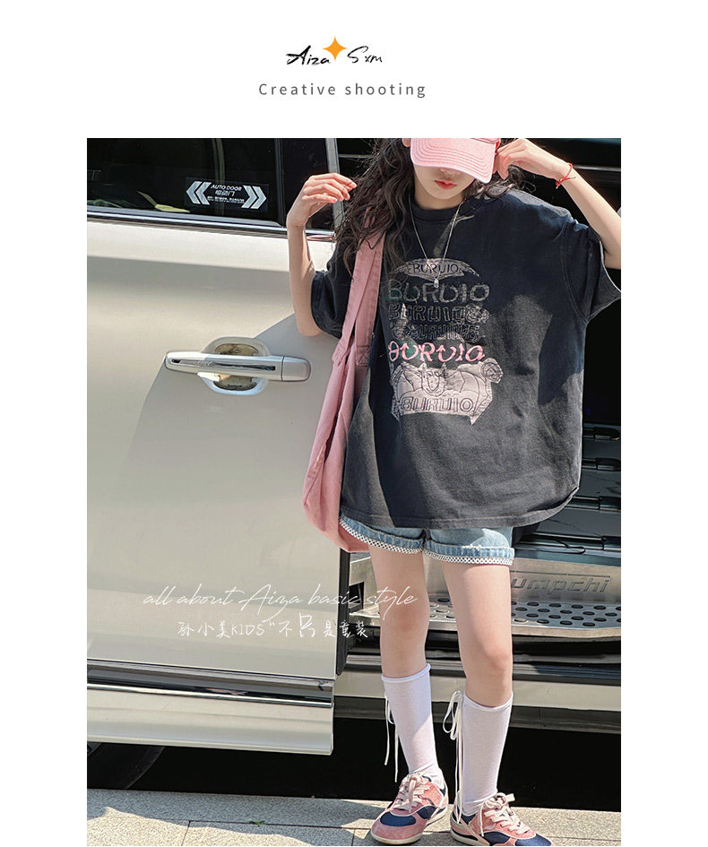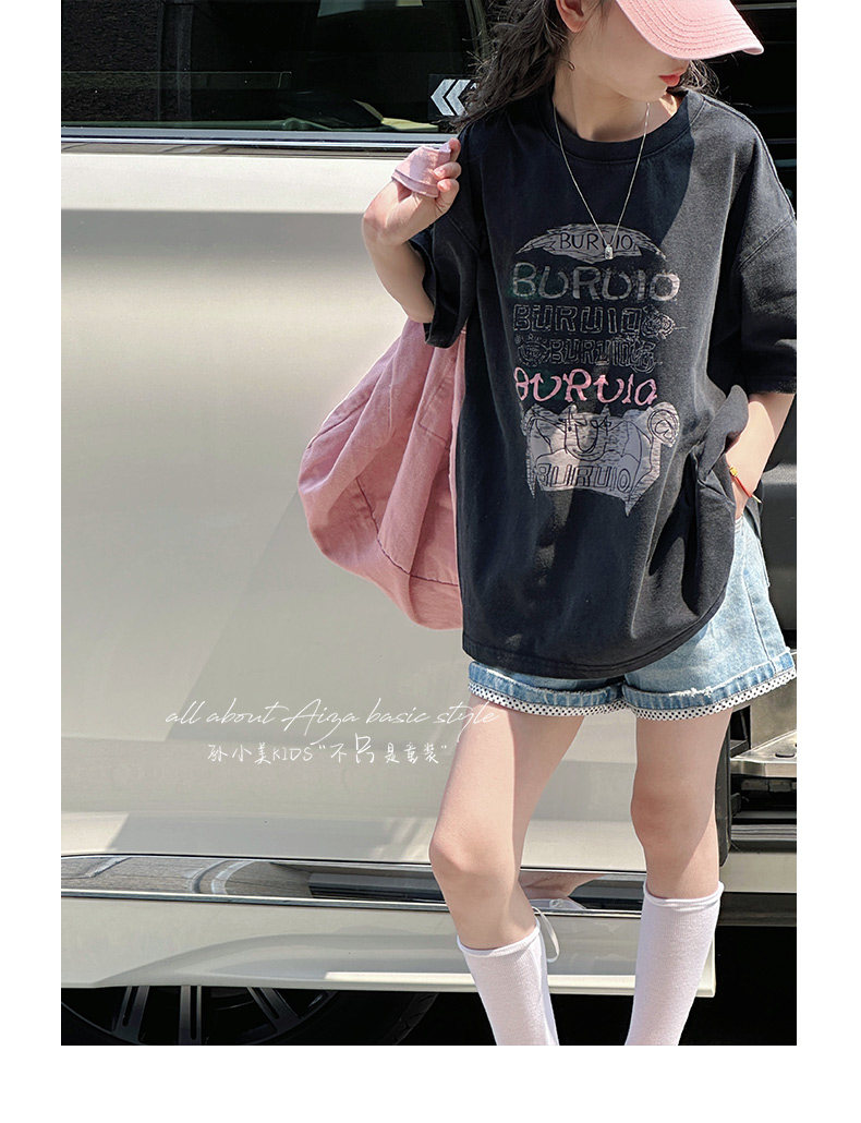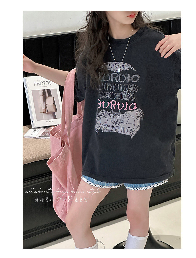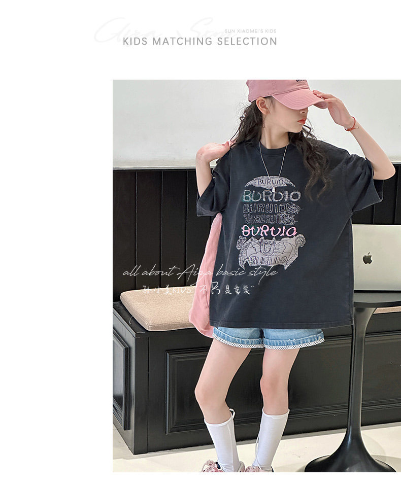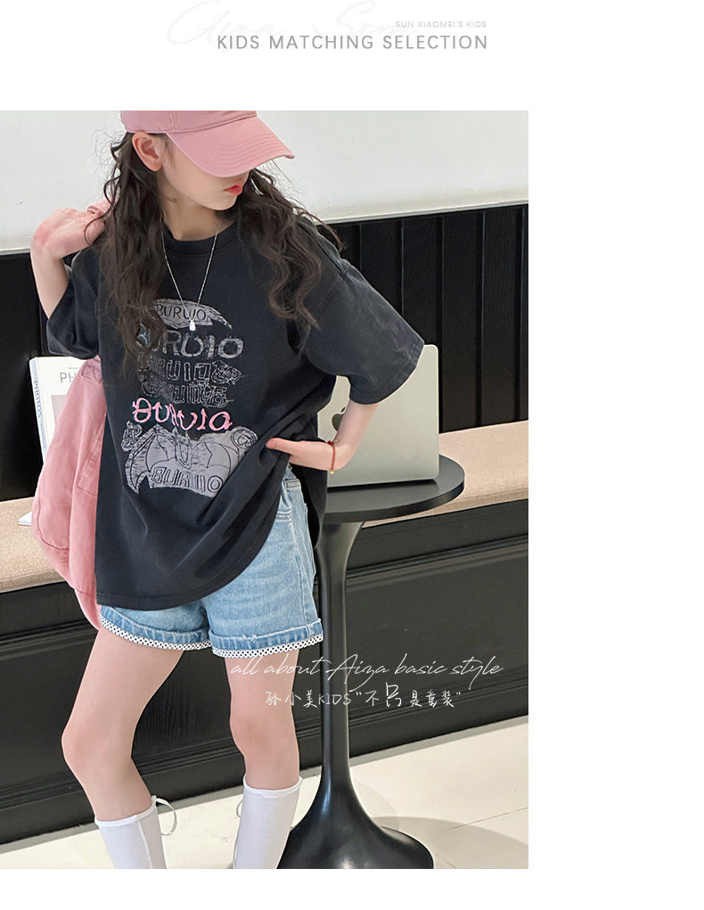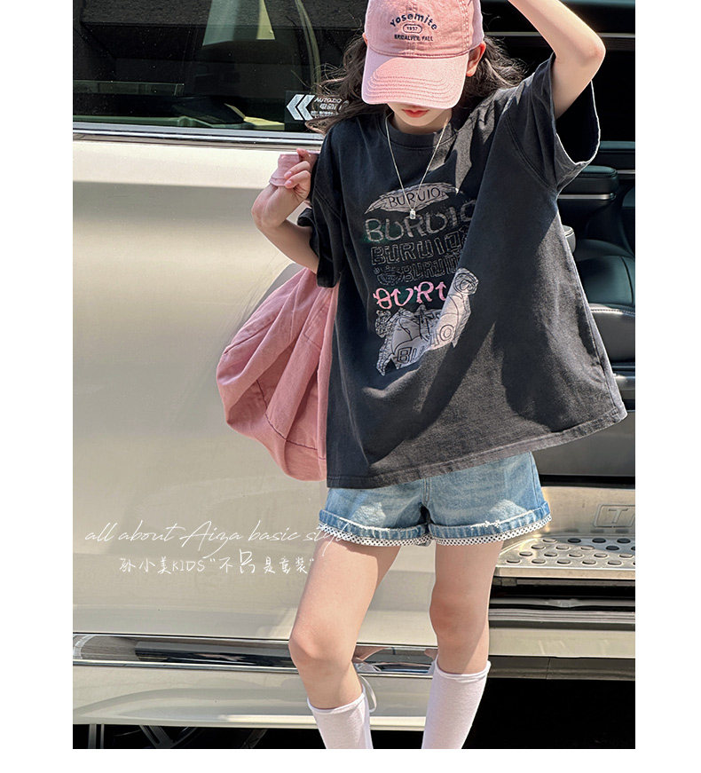 孫小美kids 磨損塗鴉女童短袖T恤兒童上衣2025新款夏裝大童半袖t