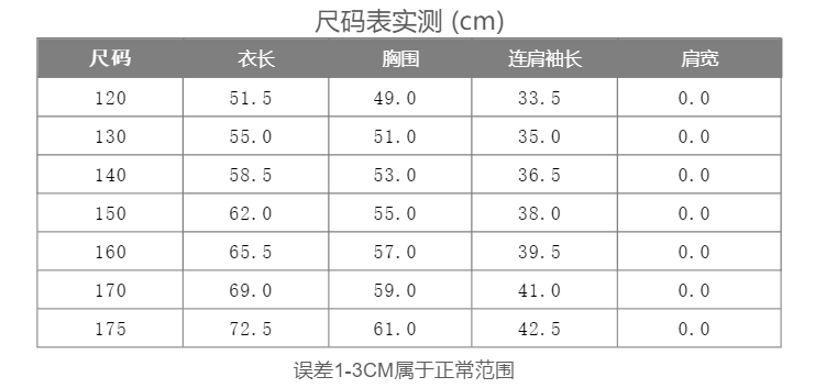 款式及尺寸: