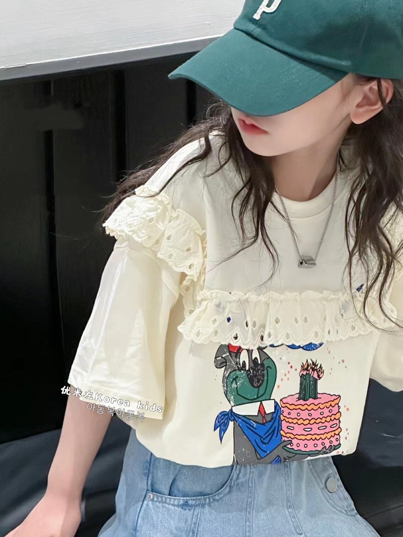 波拉bora韓國童裝甜美女孩蕾絲上衣2025夏季新款女童短袖T恤洋氣