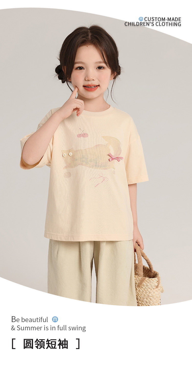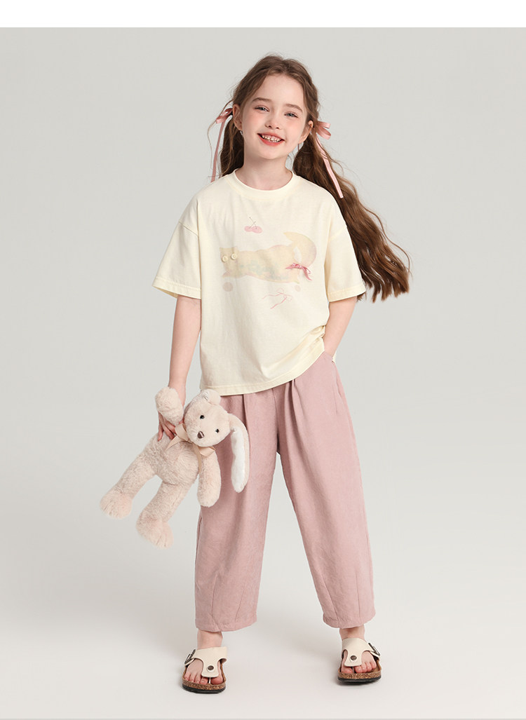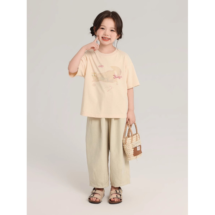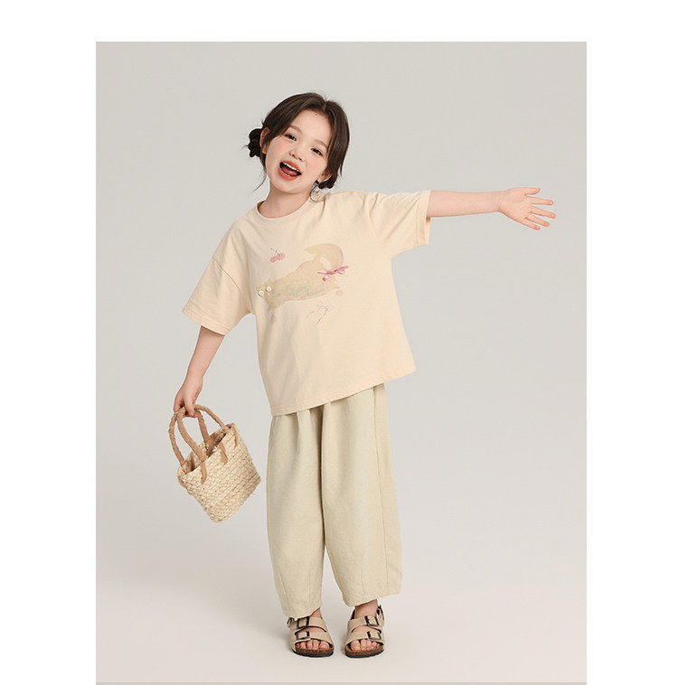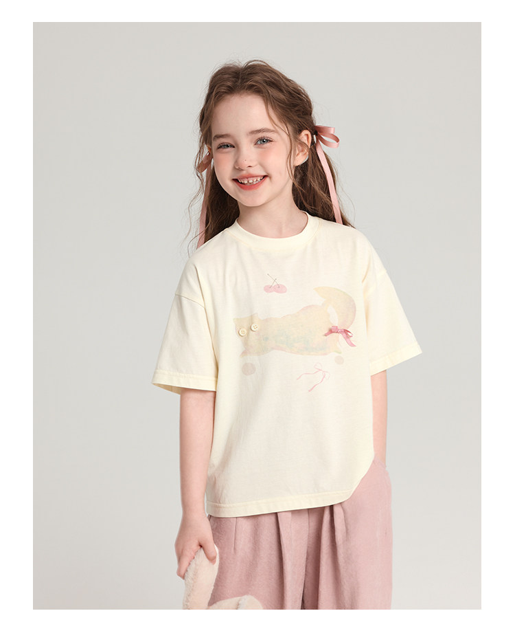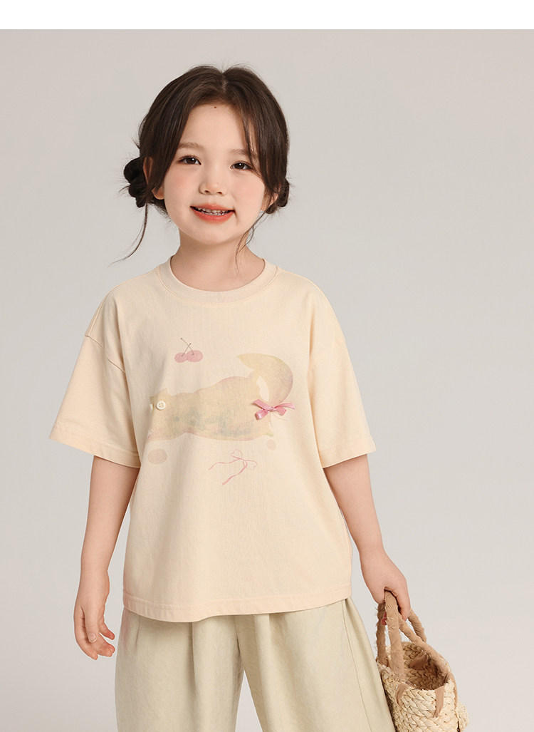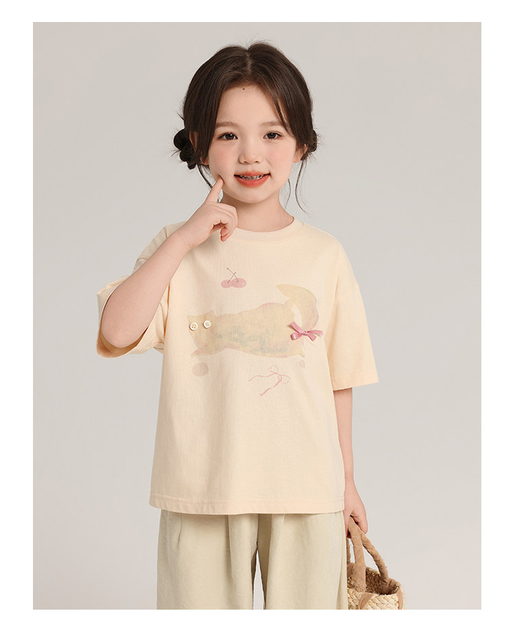布丁哈魯童裝夏裝女童純棉T恤2026夏季新款兒童洋氣百搭卡通短袖