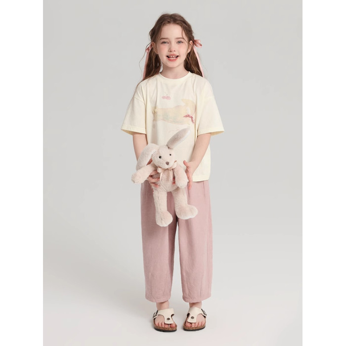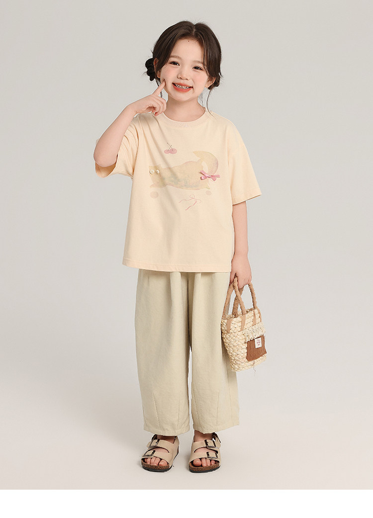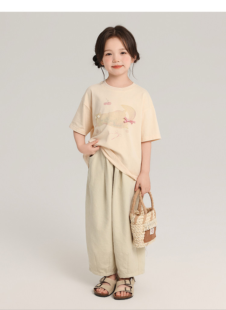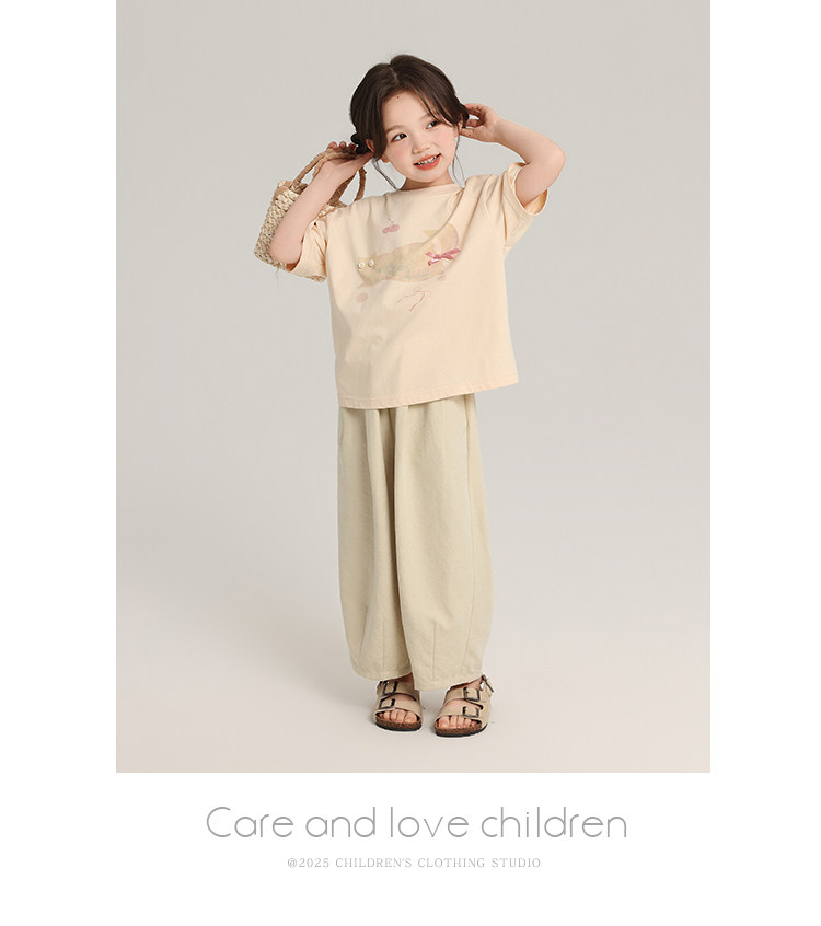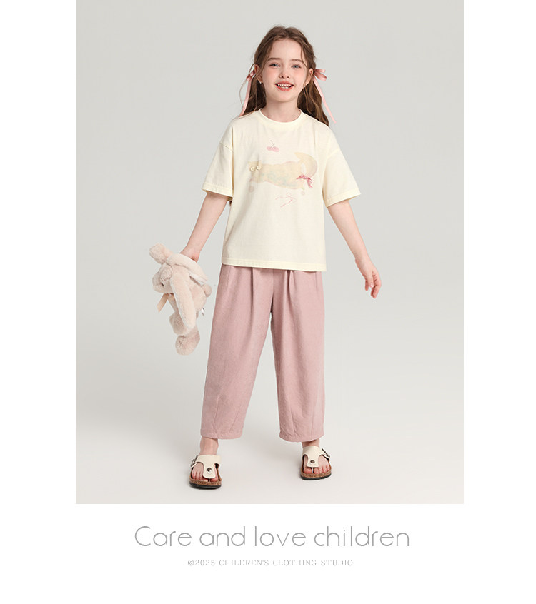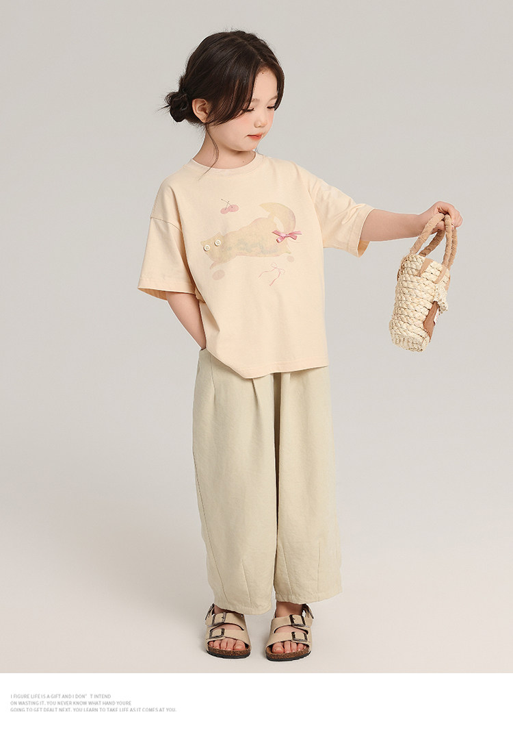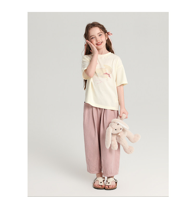 布丁哈魯童裝夏裝女童純棉T恤2026夏季新款兒童洋氣百搭卡通短袖