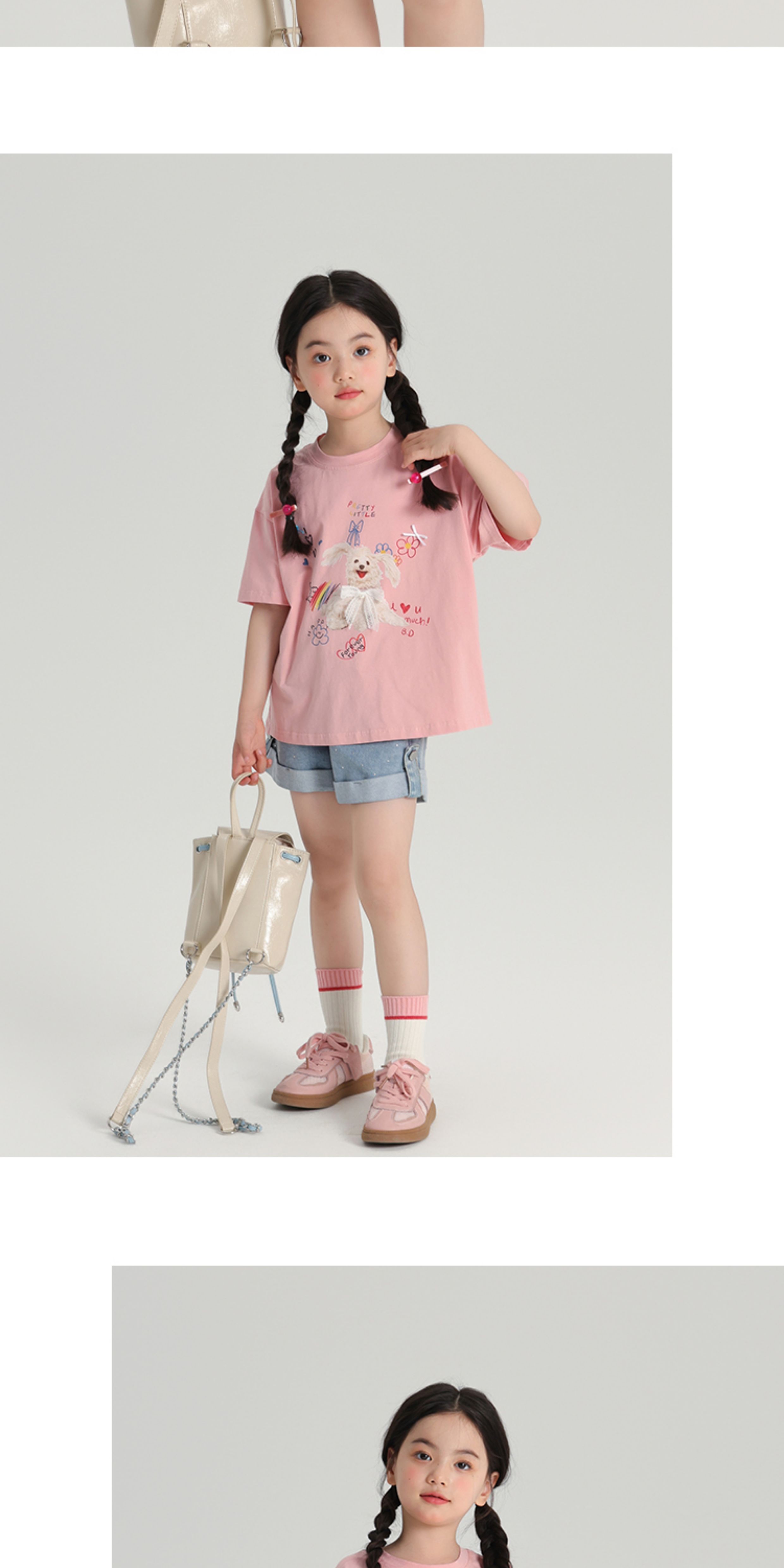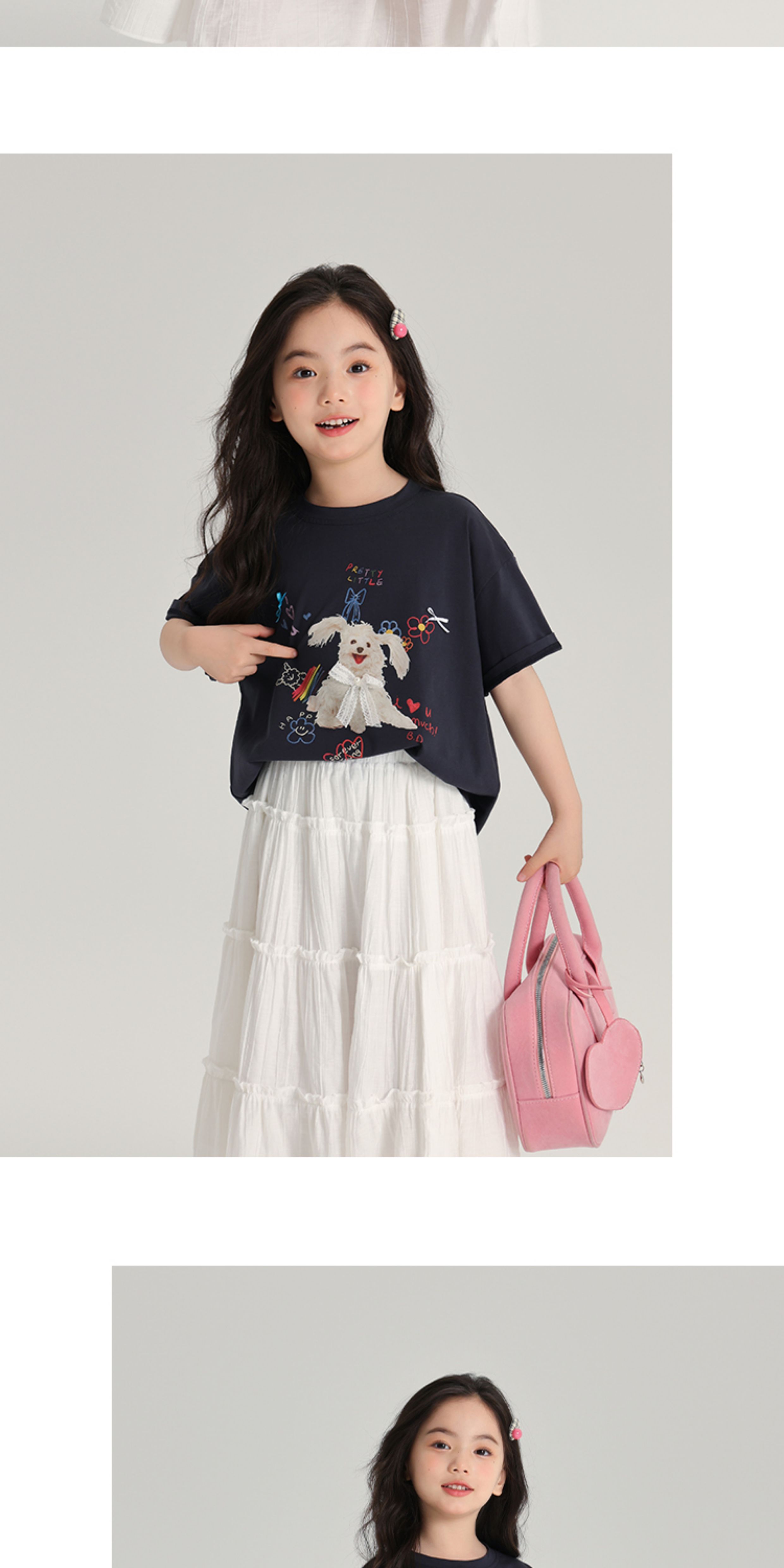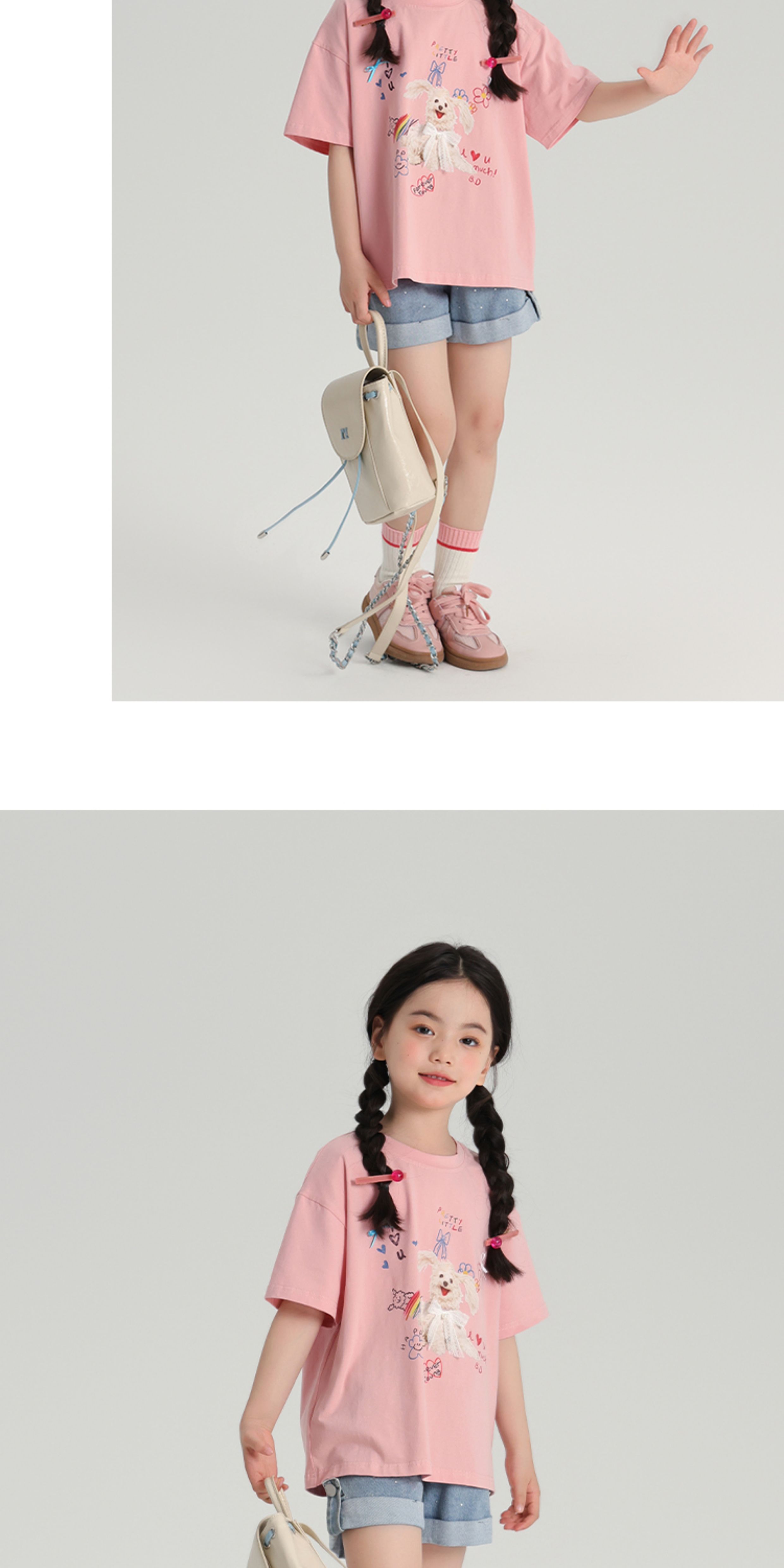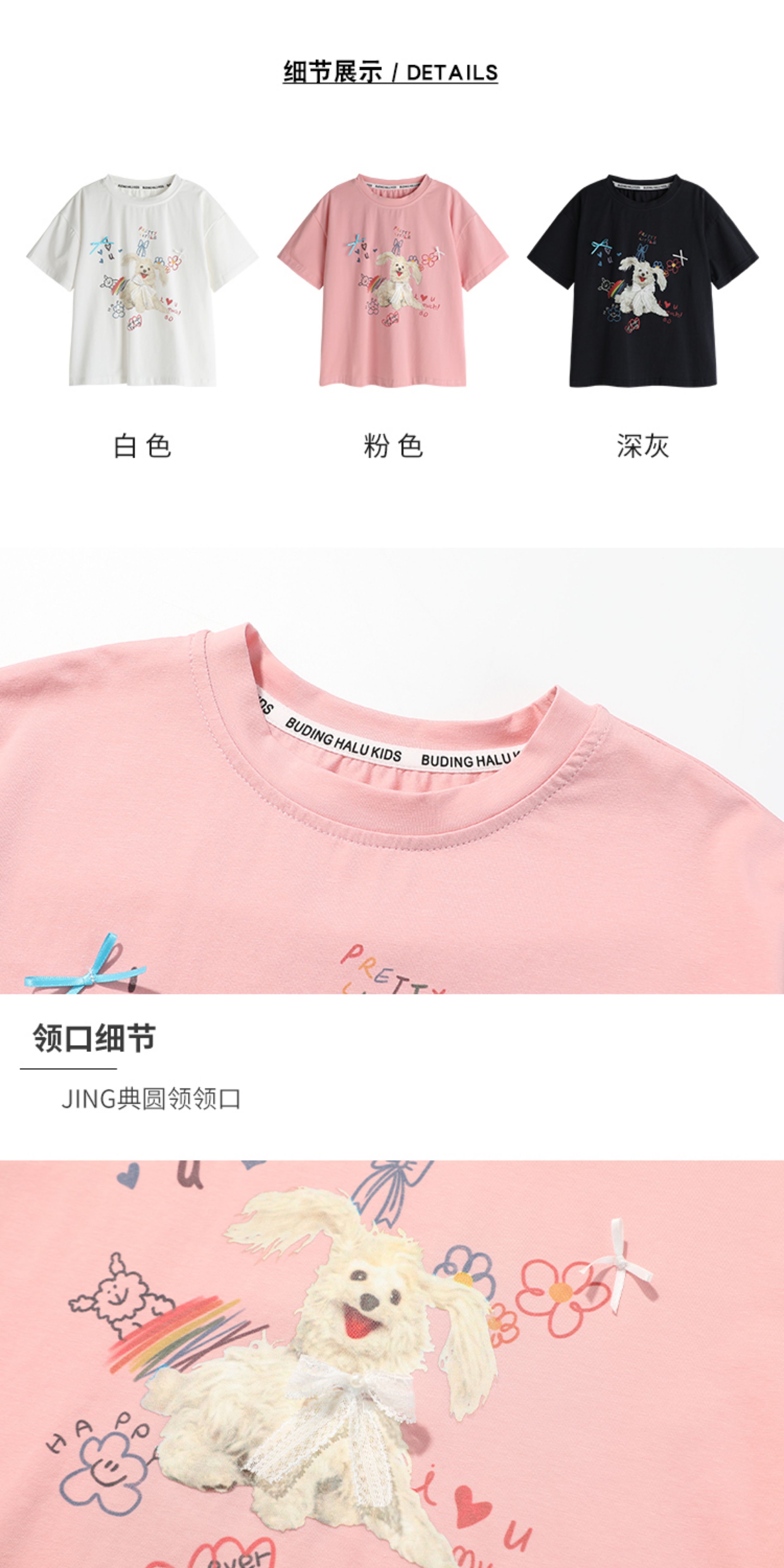 布丁哈魯夏裝女童夏季打底衫2025新款兒童卡通圓領短袖T恤