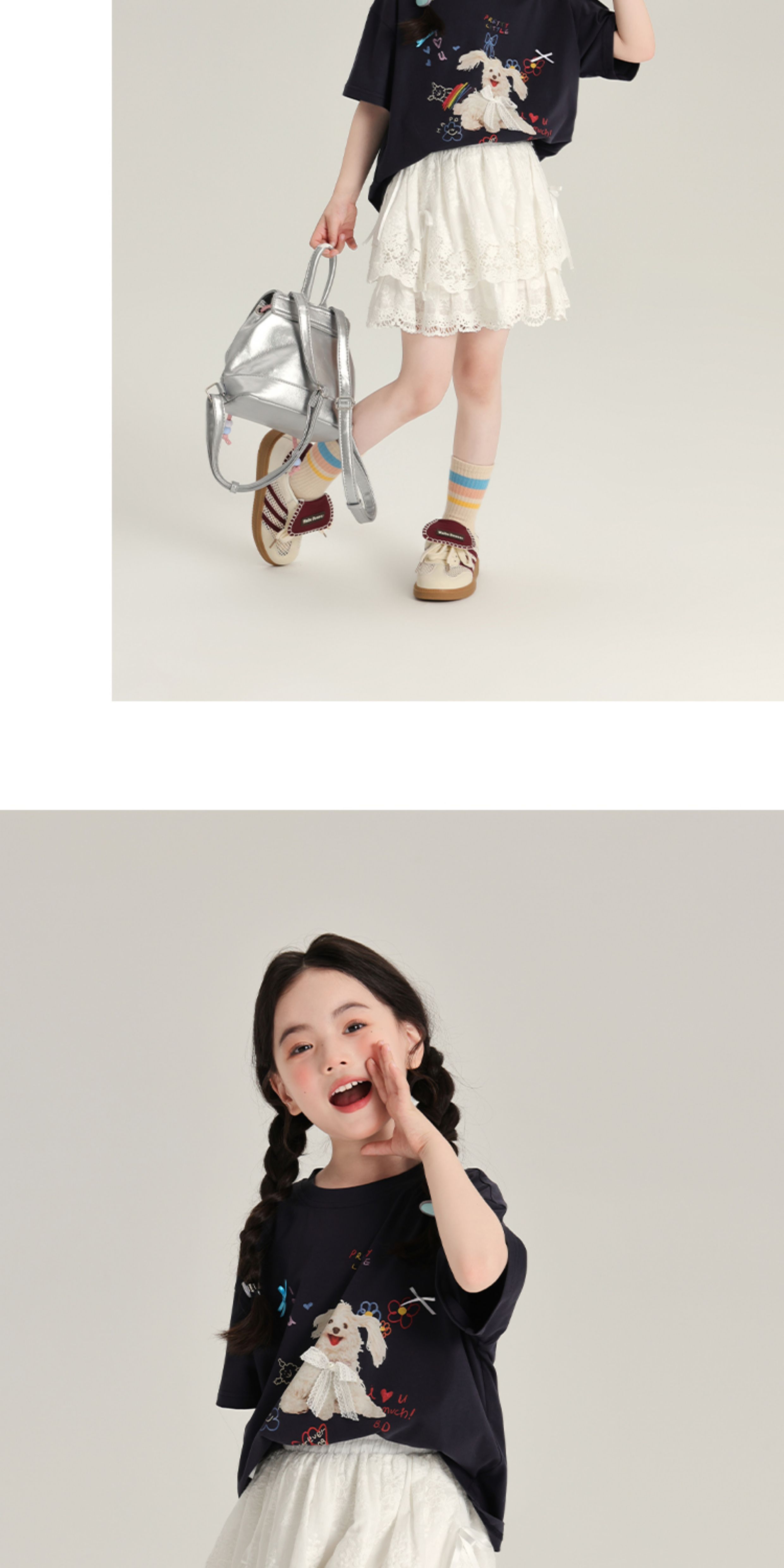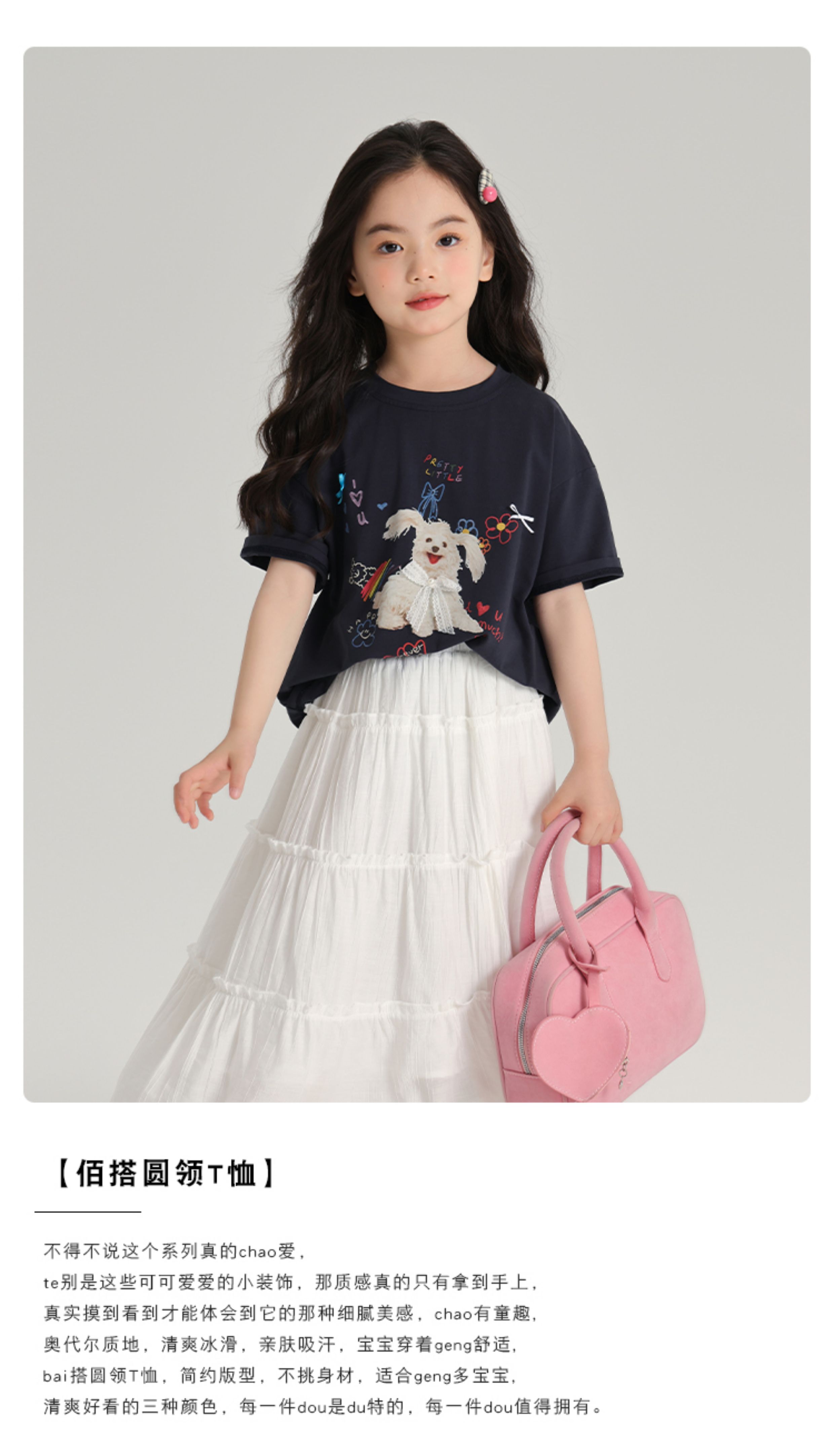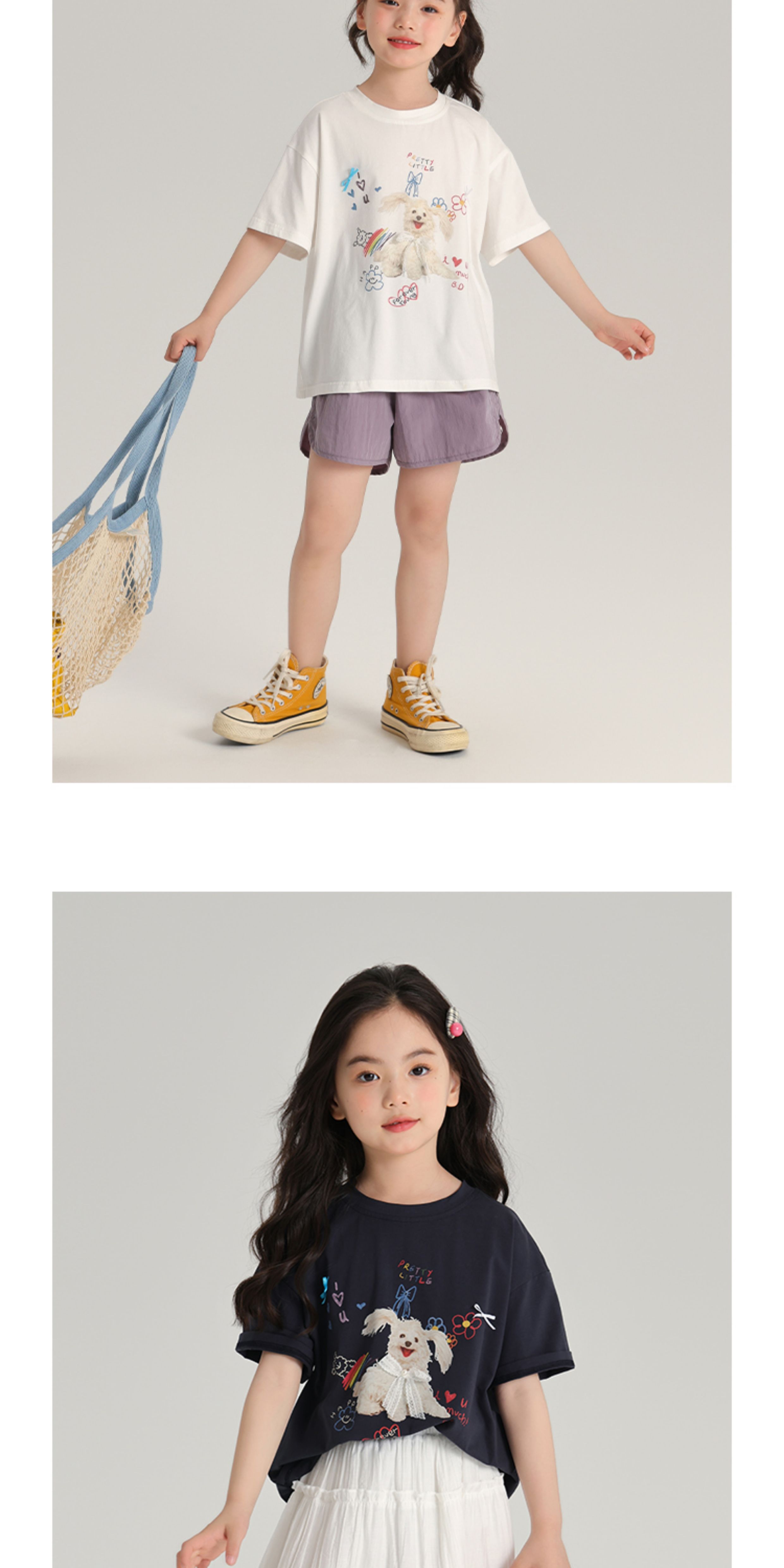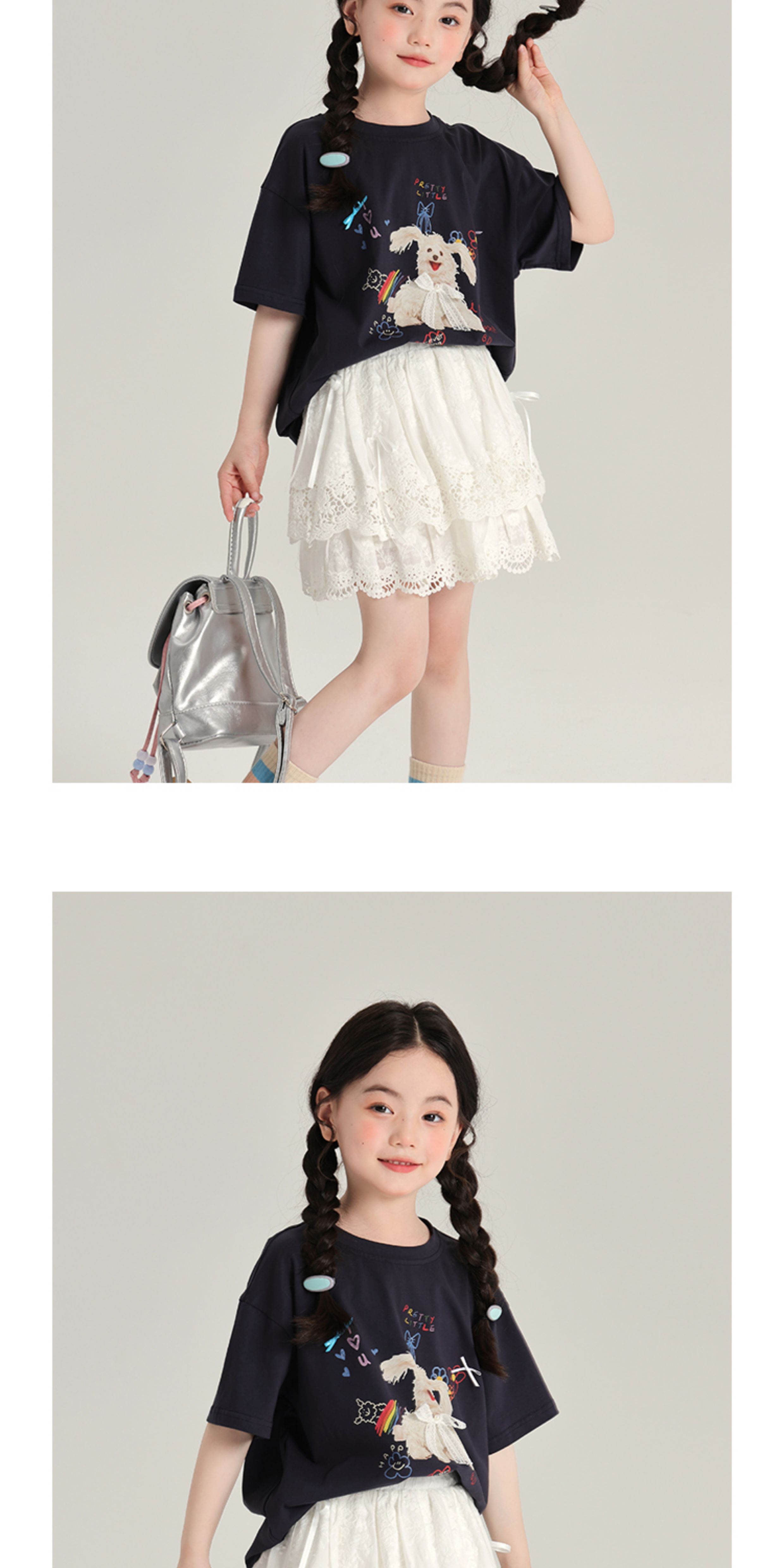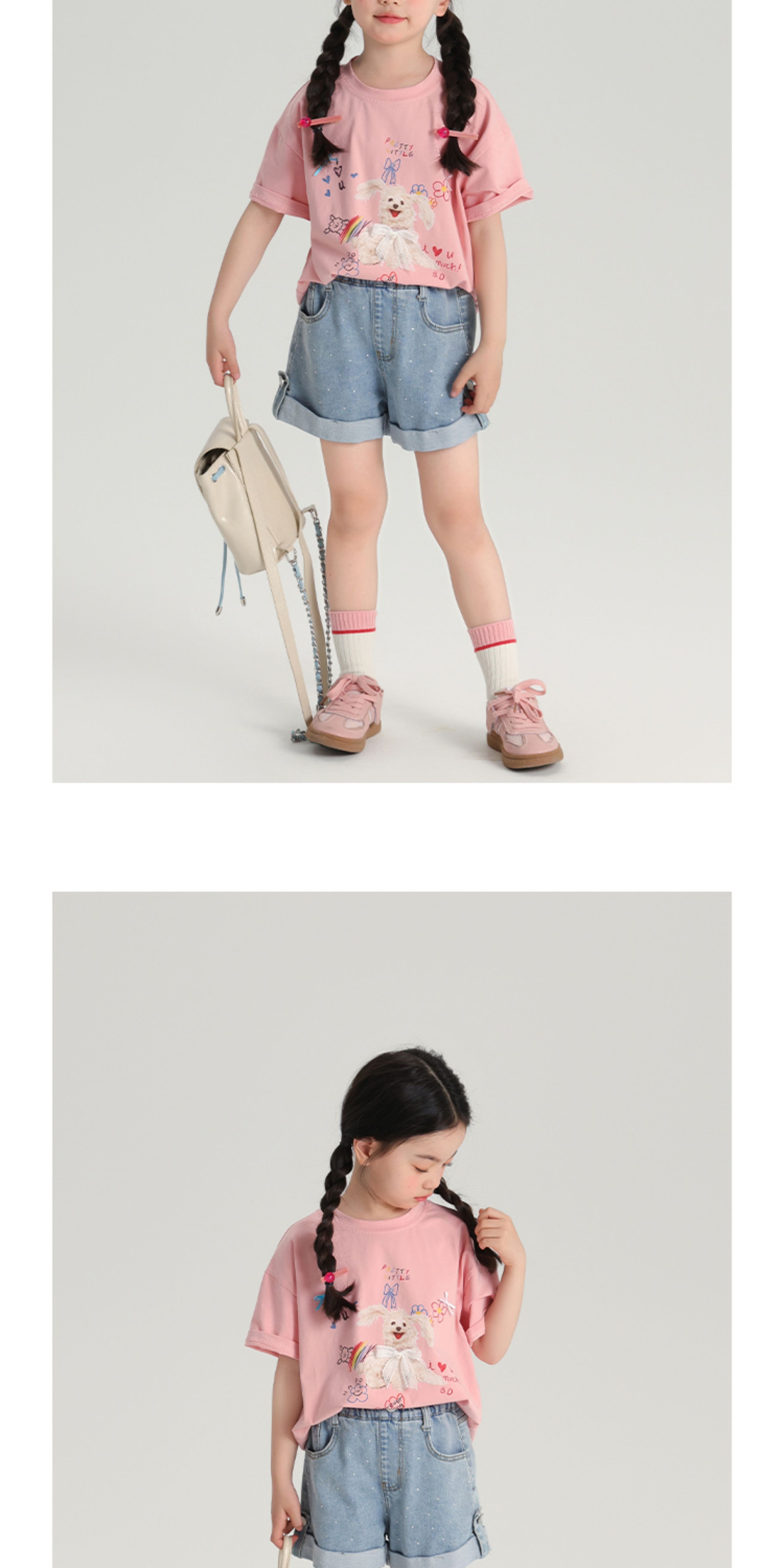 布丁哈魯夏裝女童夏季打底衫2025新款兒童卡通圓領短袖T恤