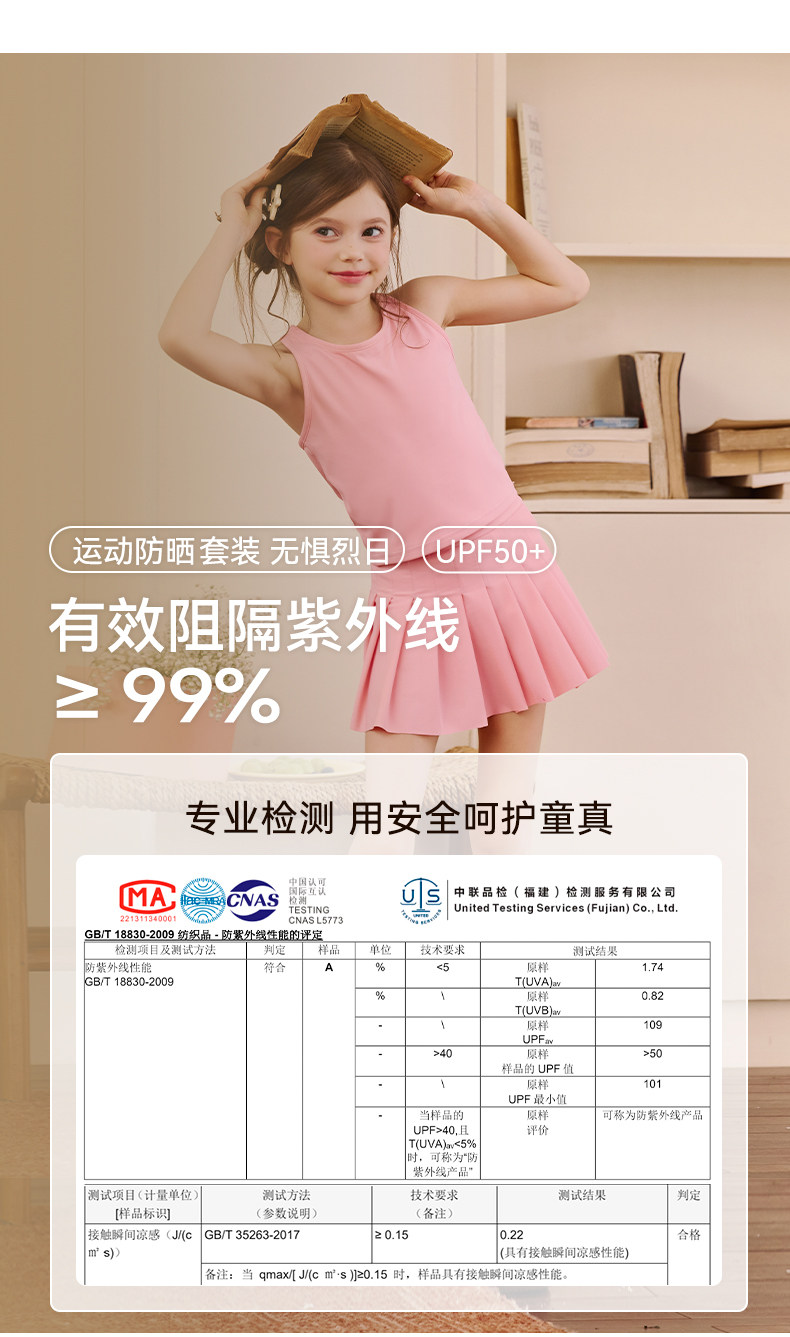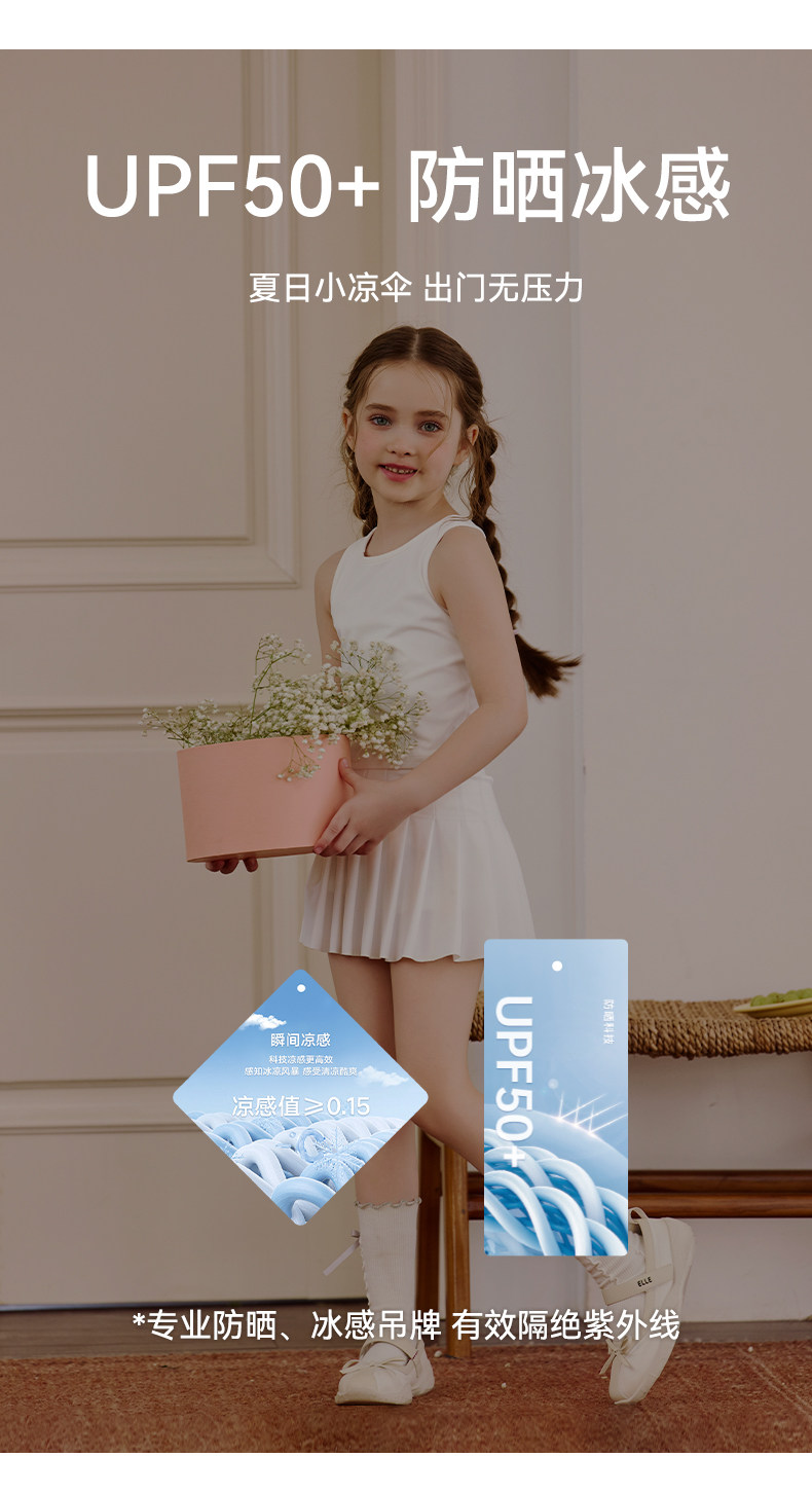 Little Naive兒童運動上衣夏季新款涼感防曬親膚背心女童彈力t恤