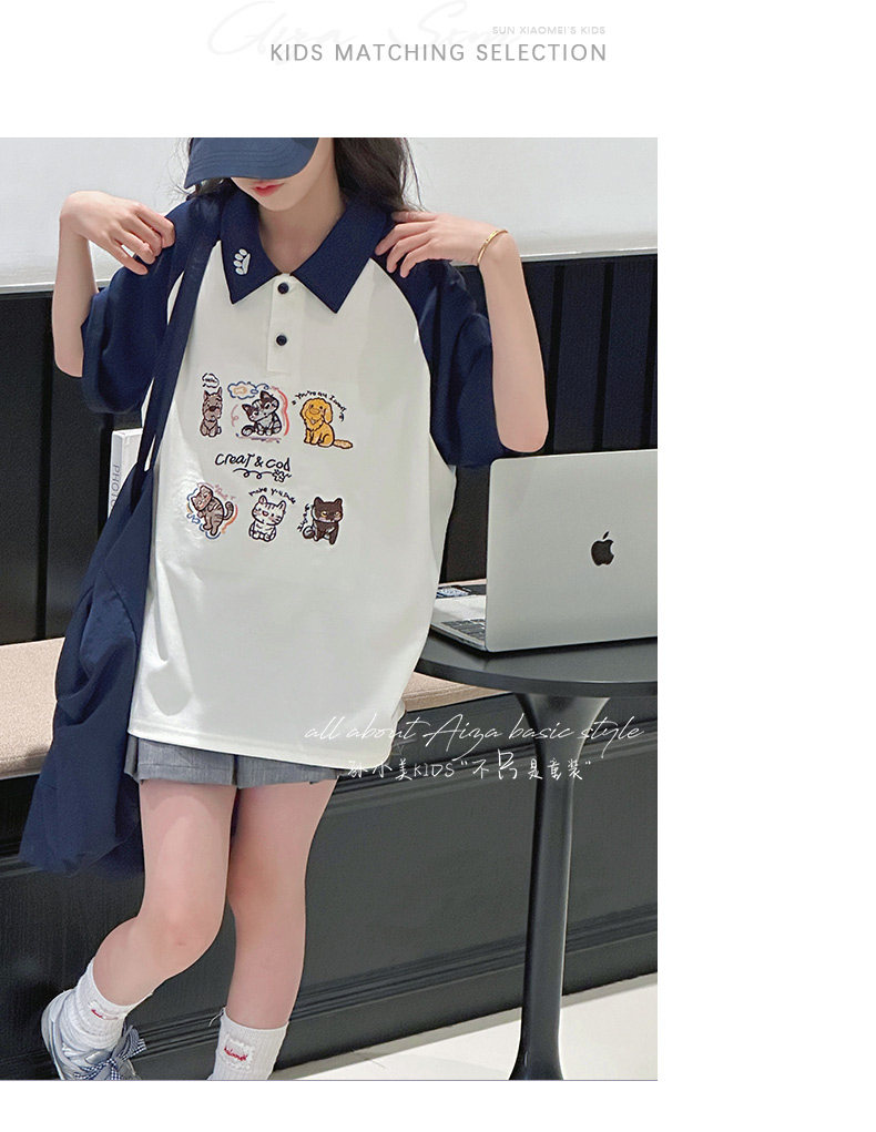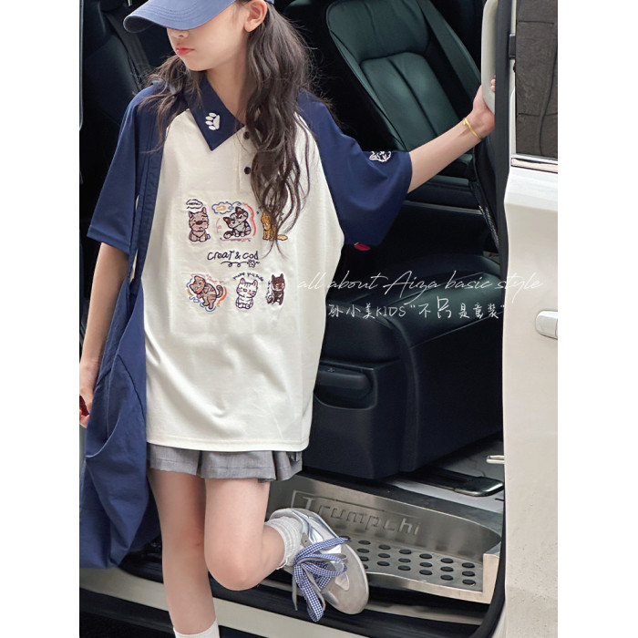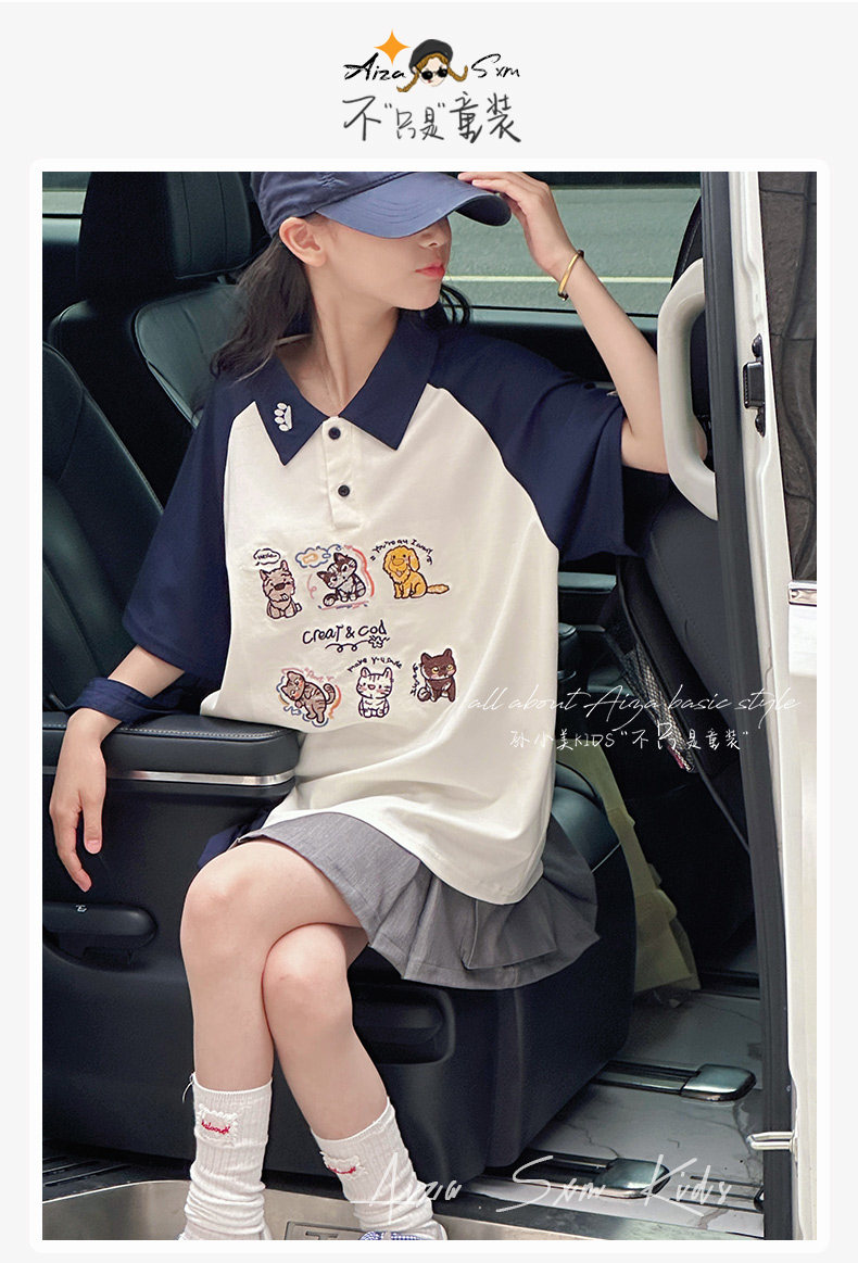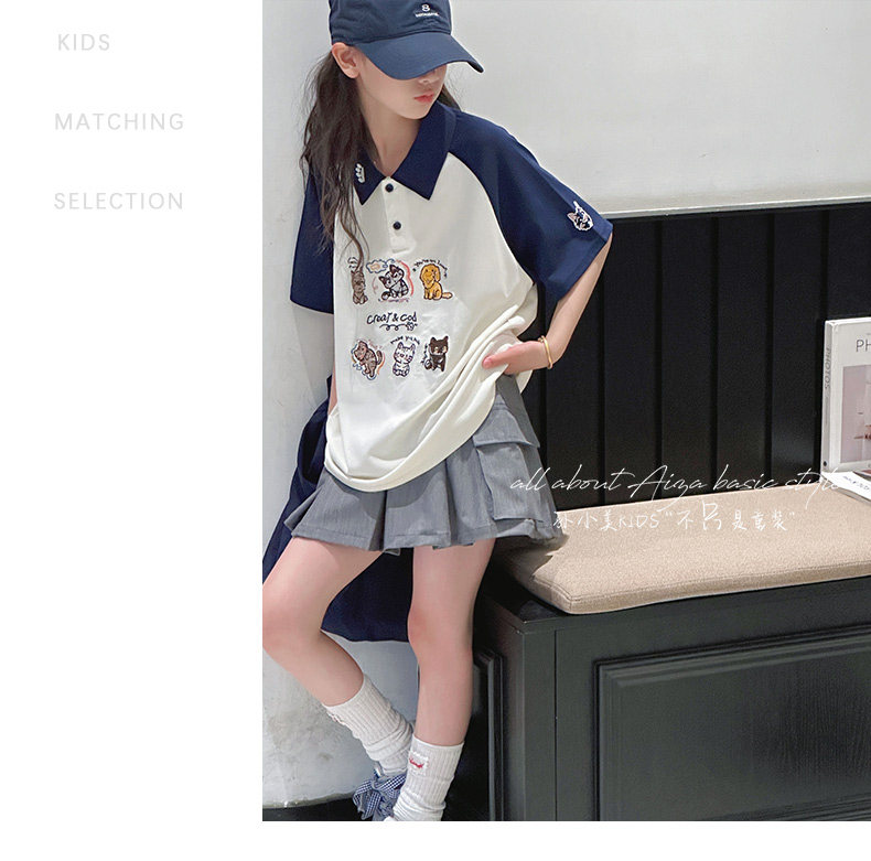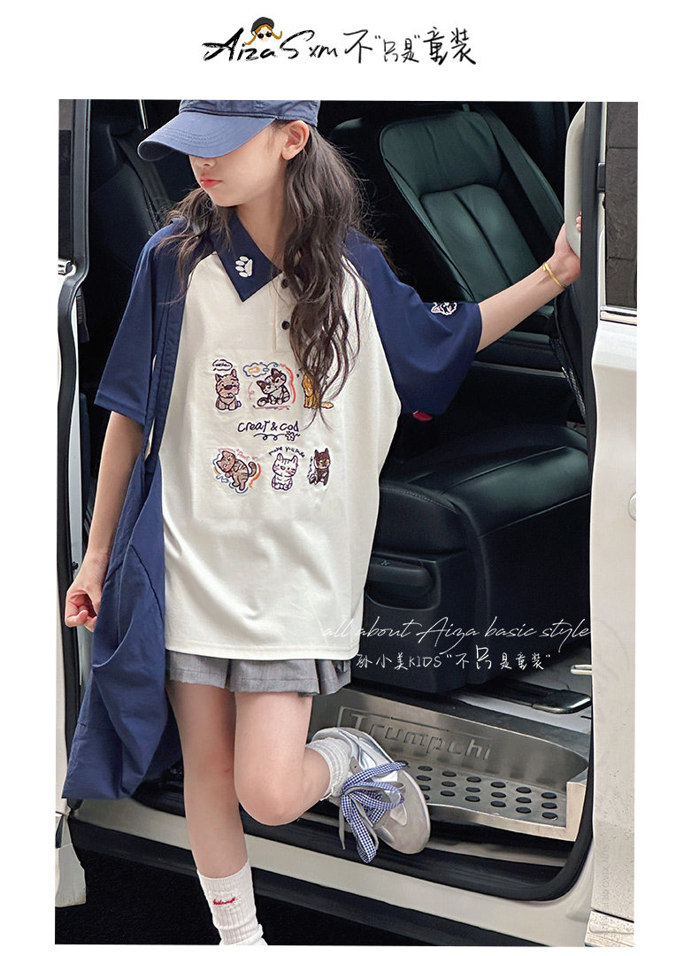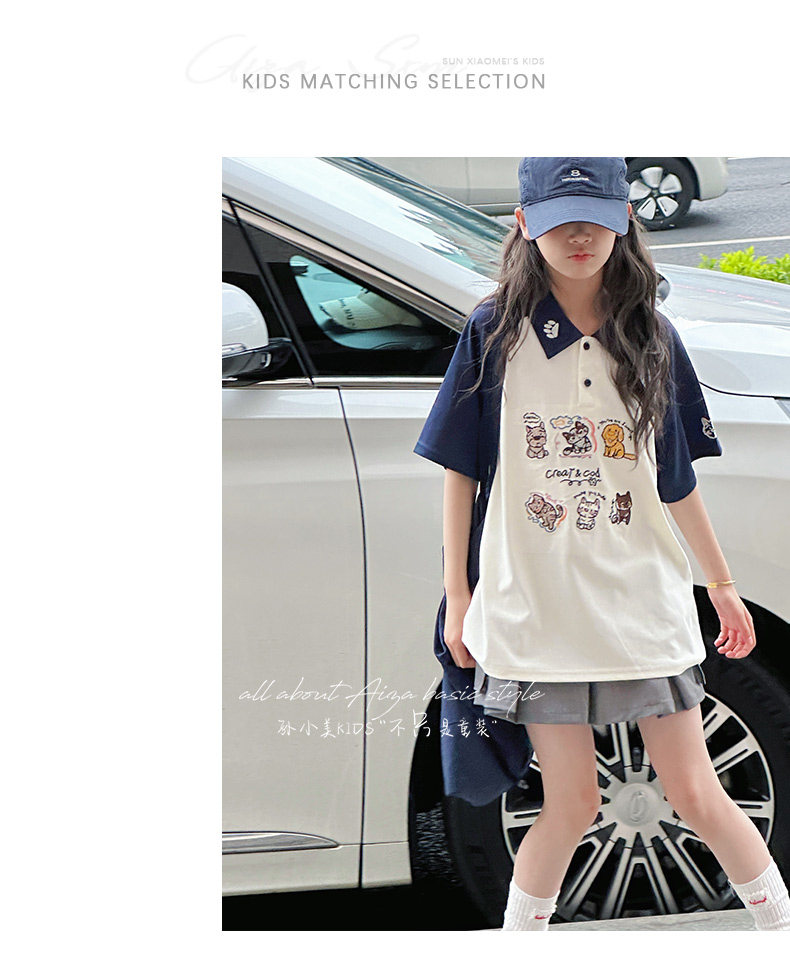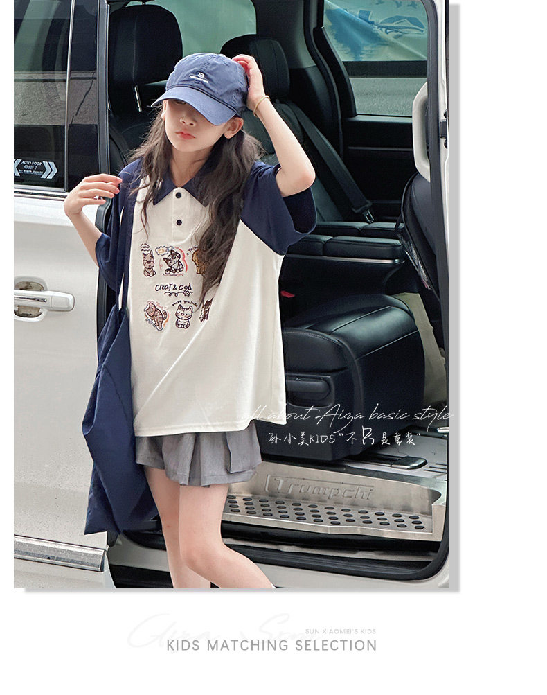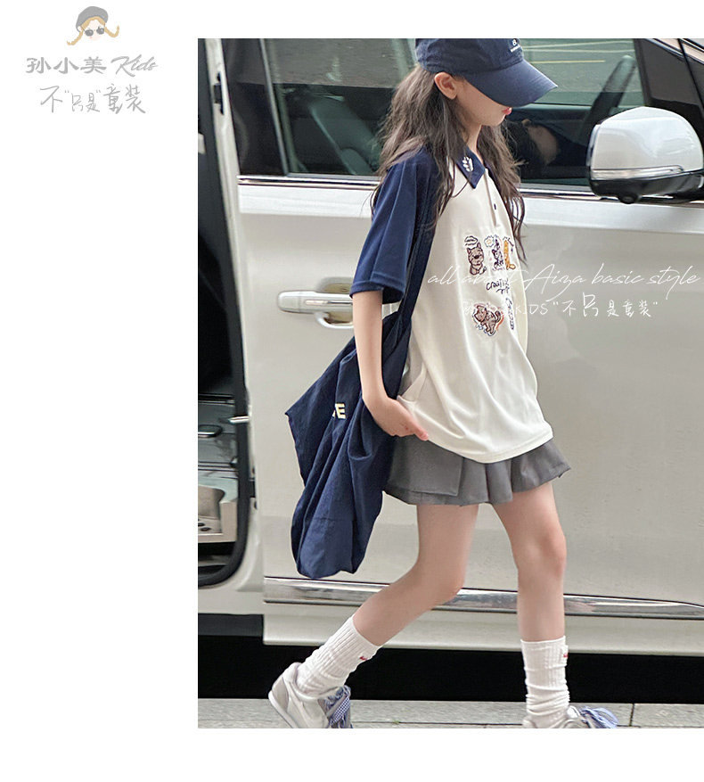 孫小美kids 韓系撞色女童夏裝polo衫短袖2025新款兒童T恤洋氣上衣